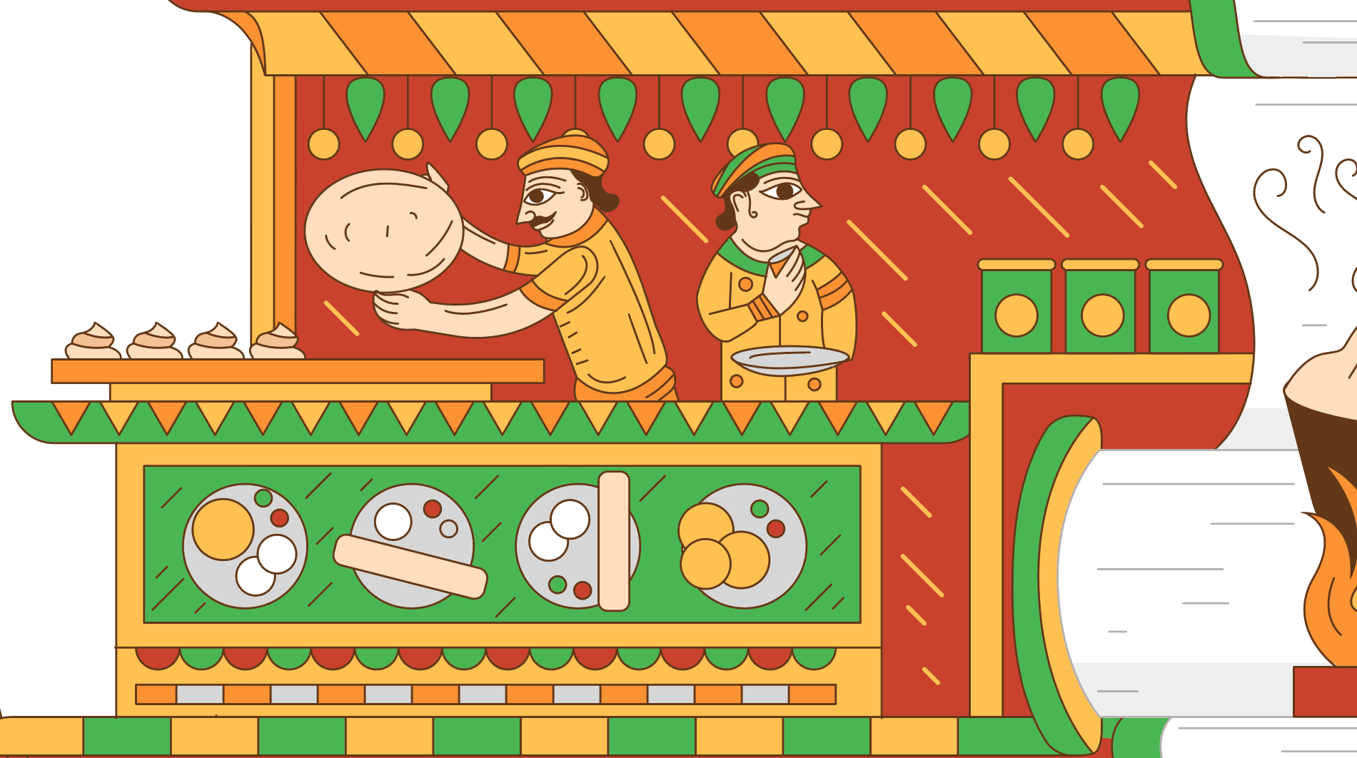 Famous Madurai Snacks show and Contemporary Food Delivery Cheriyal Scroll Illustrations - Idly,Vadai and Bonda Kadai