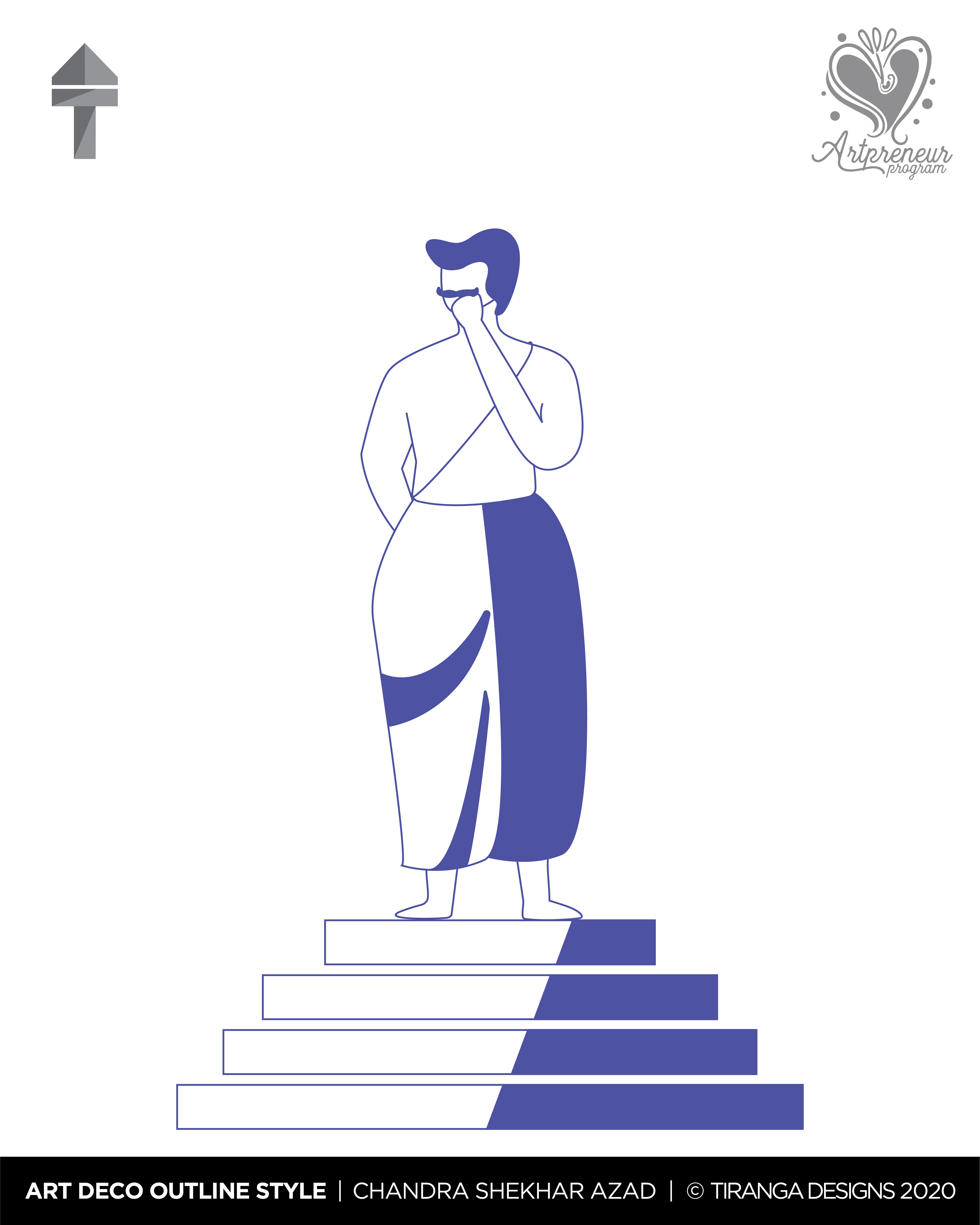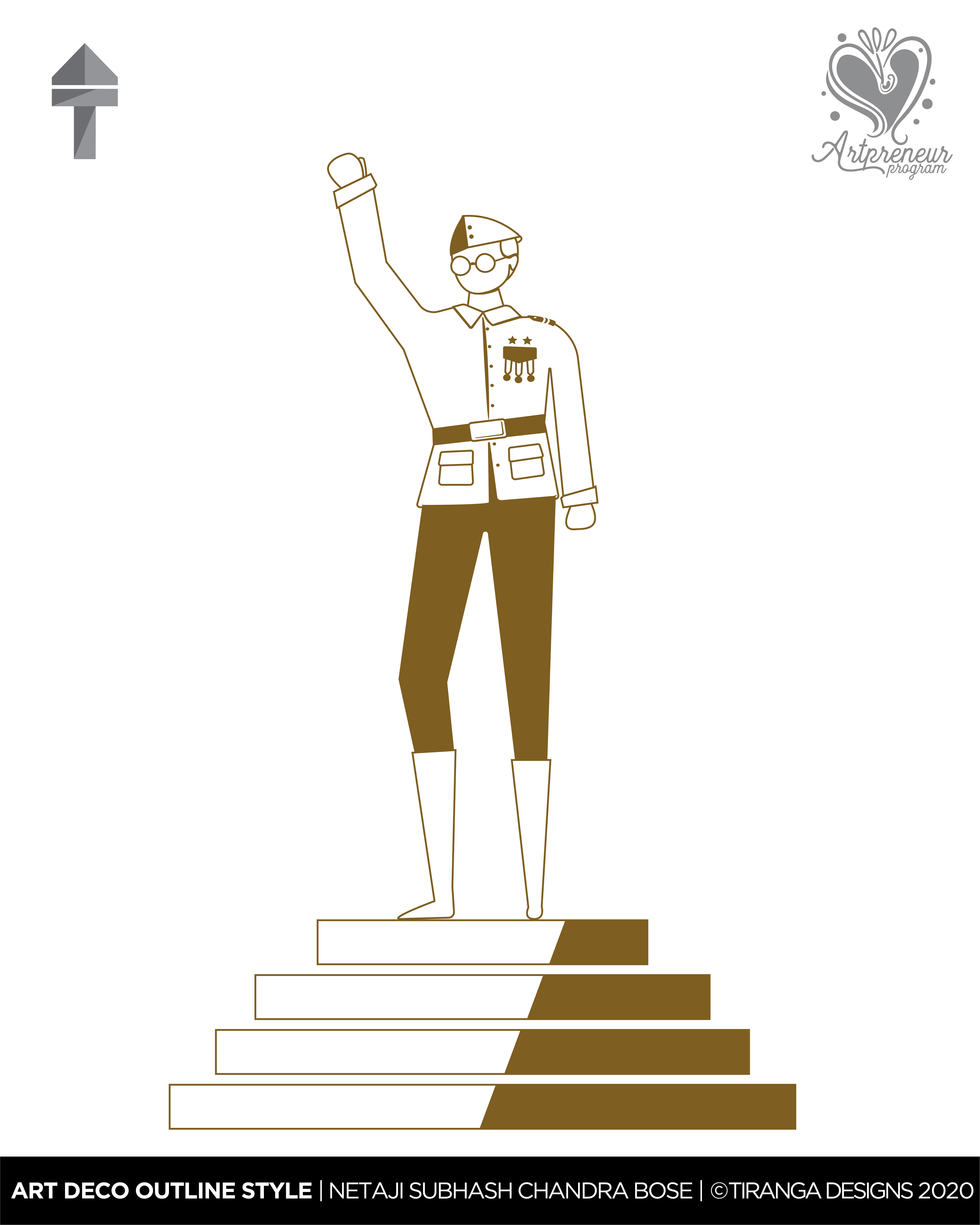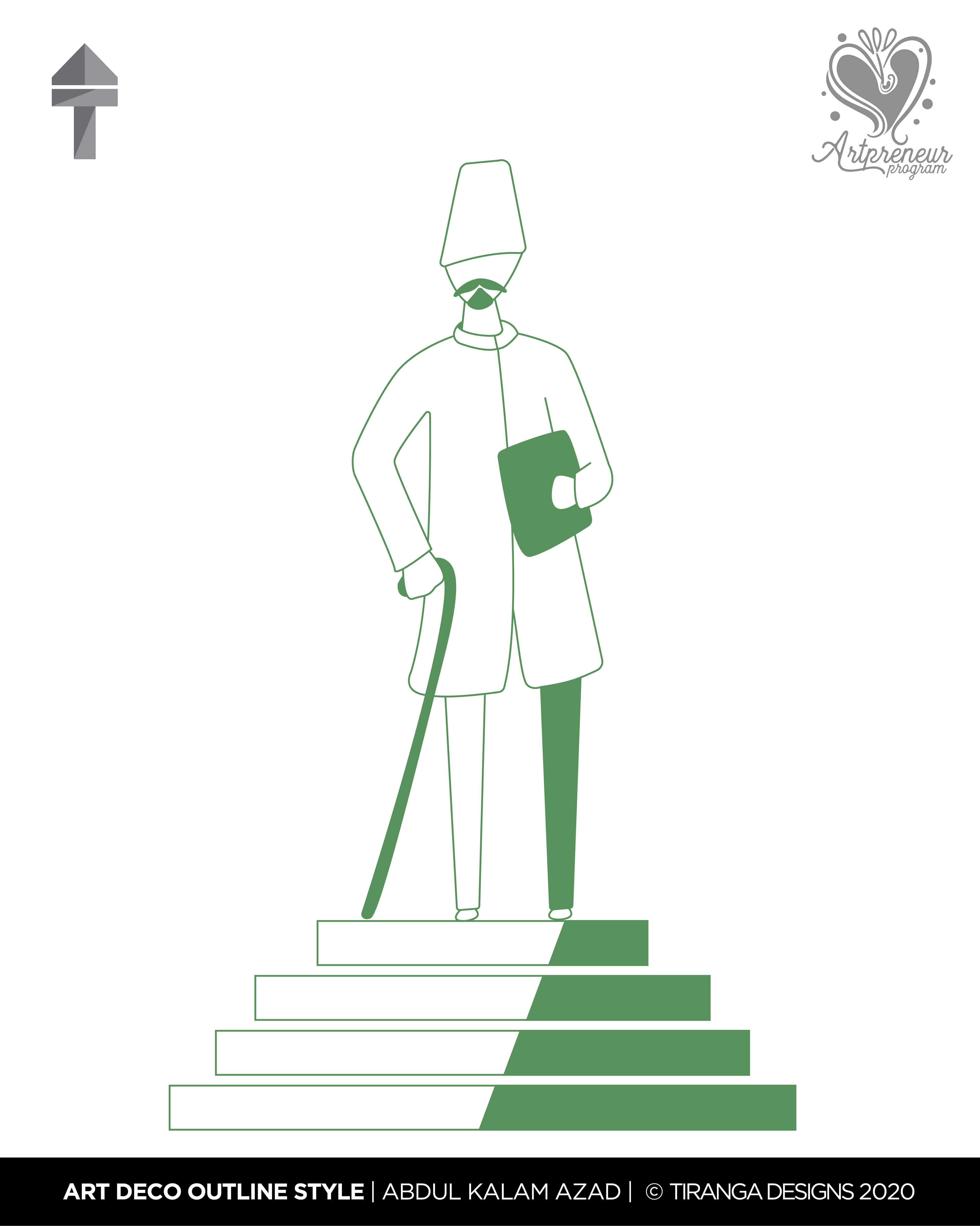 12 Freedom Fighters portrayed in Art Deco Outline Illustration Style