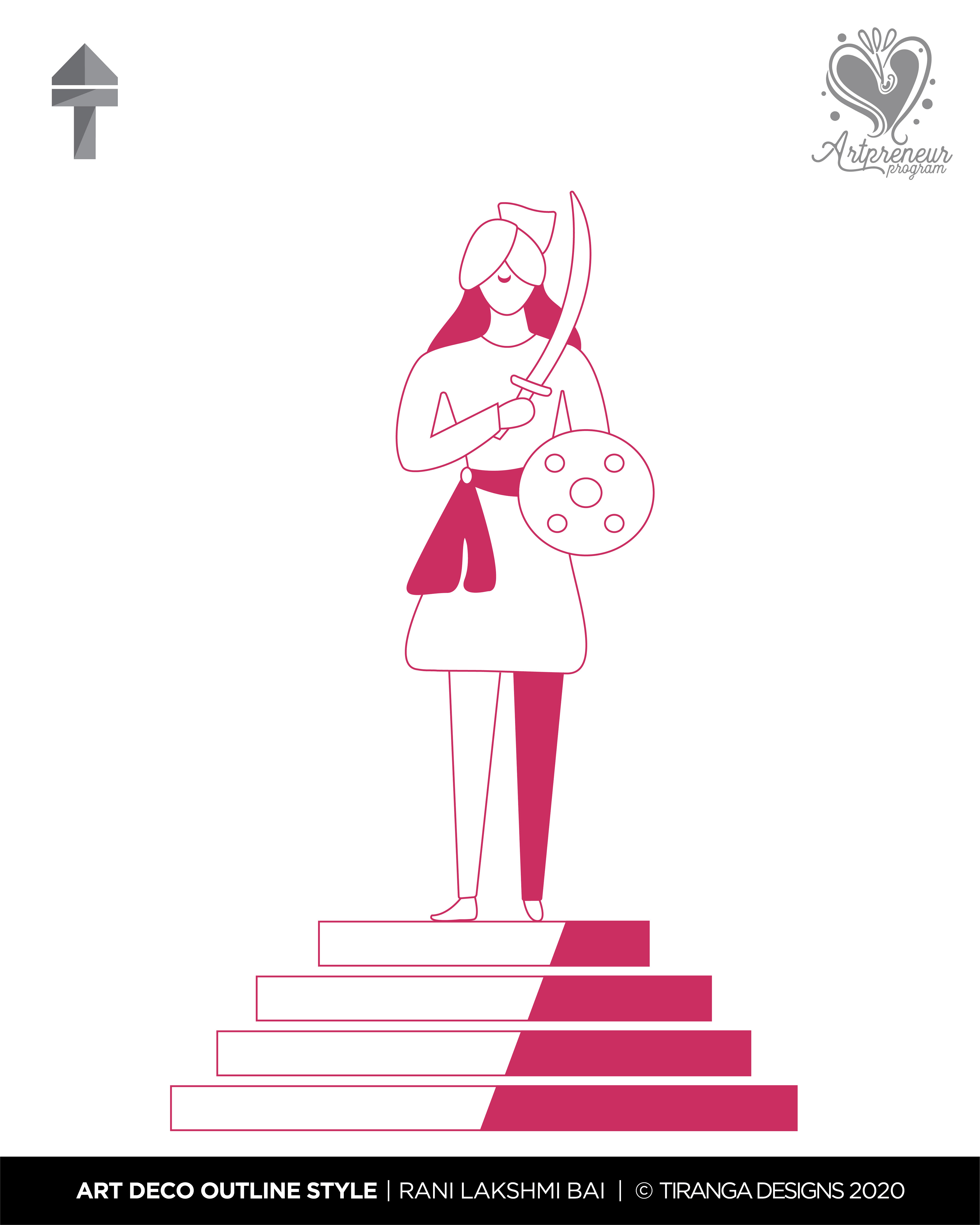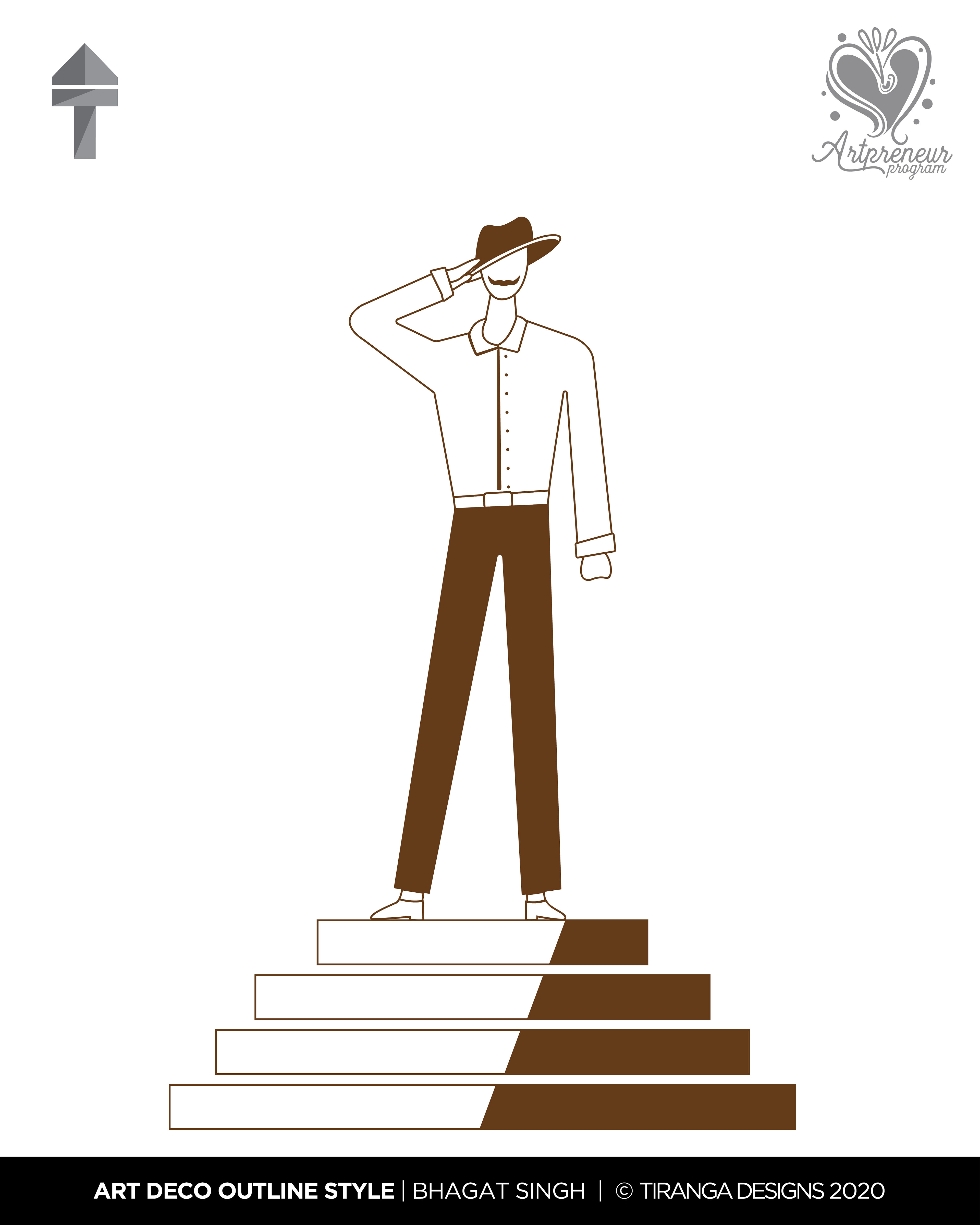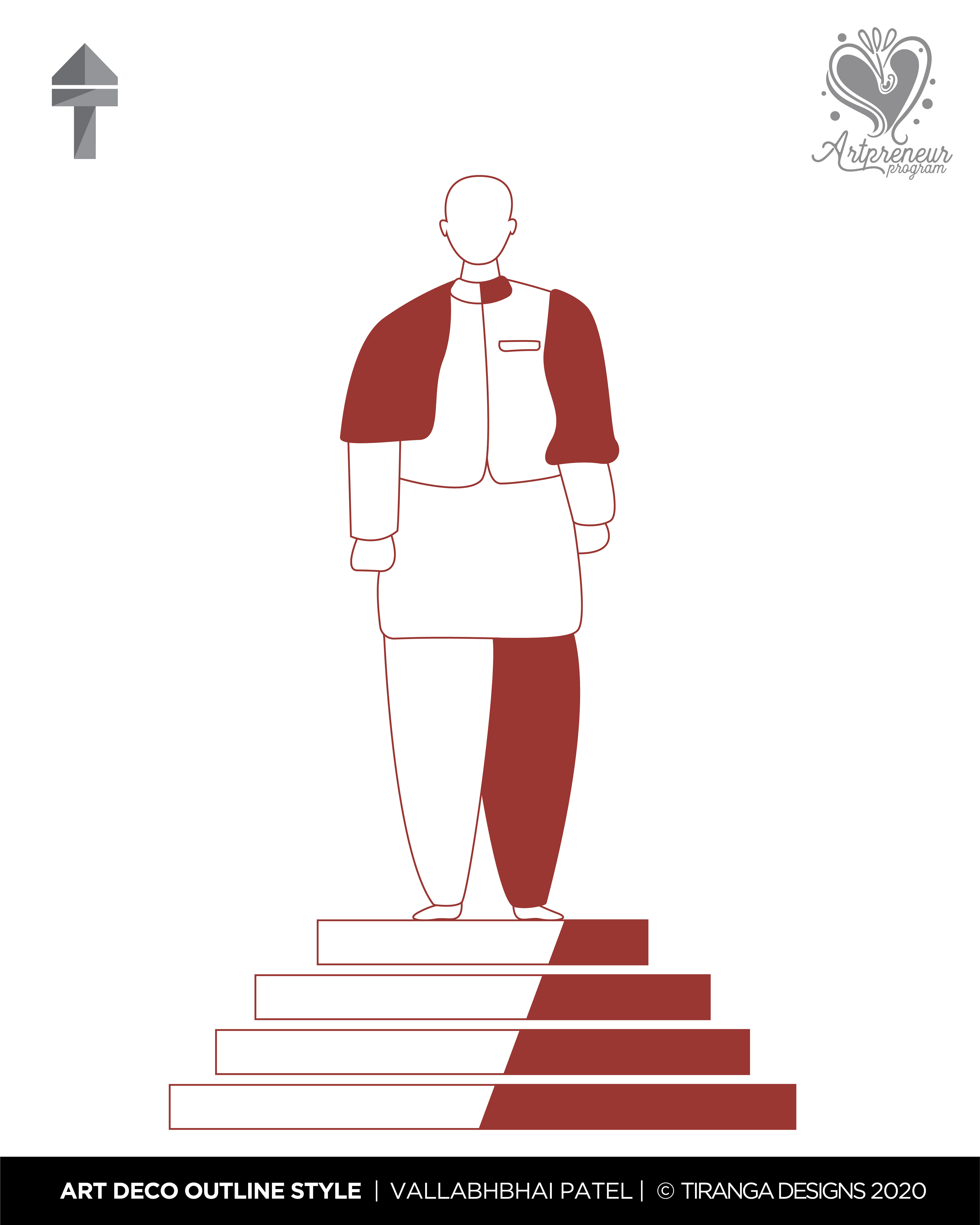 12 Freedom Fighters portrayed in Art Deco Outline Illustration Style