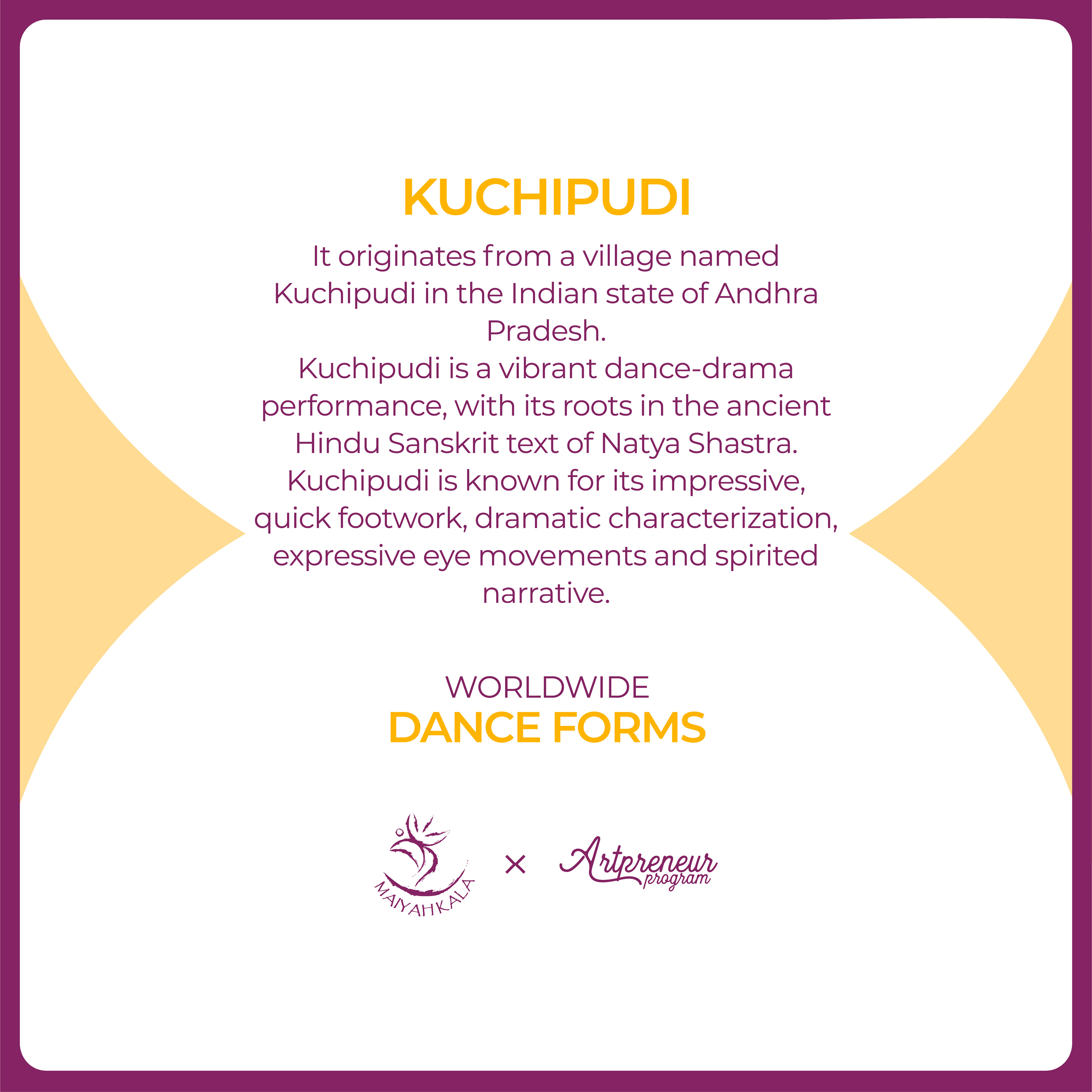 Kuchipudi is a vibrant dance-drama performance, with its roots in the ancient Hindu Sanskrit text of Natya Shastra.