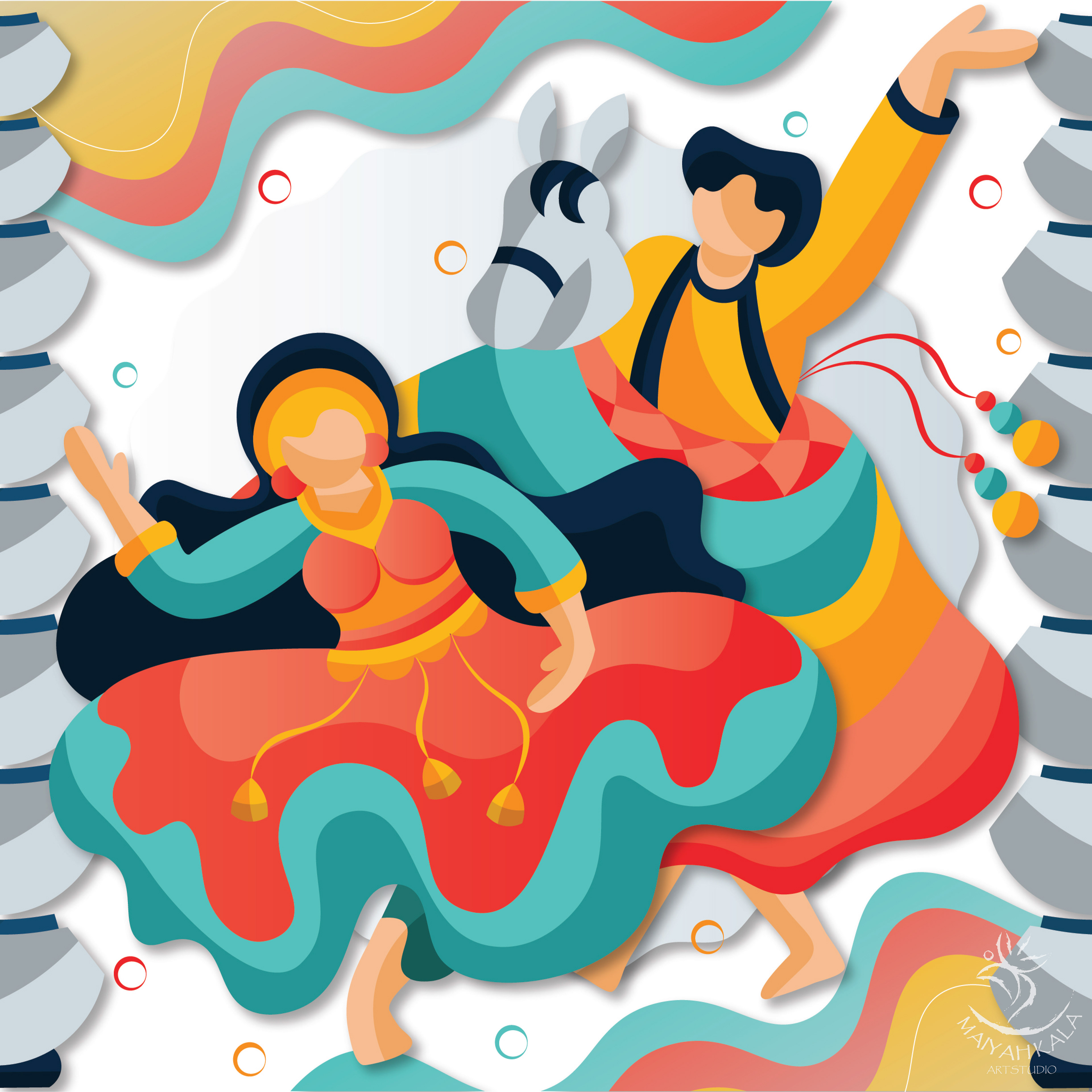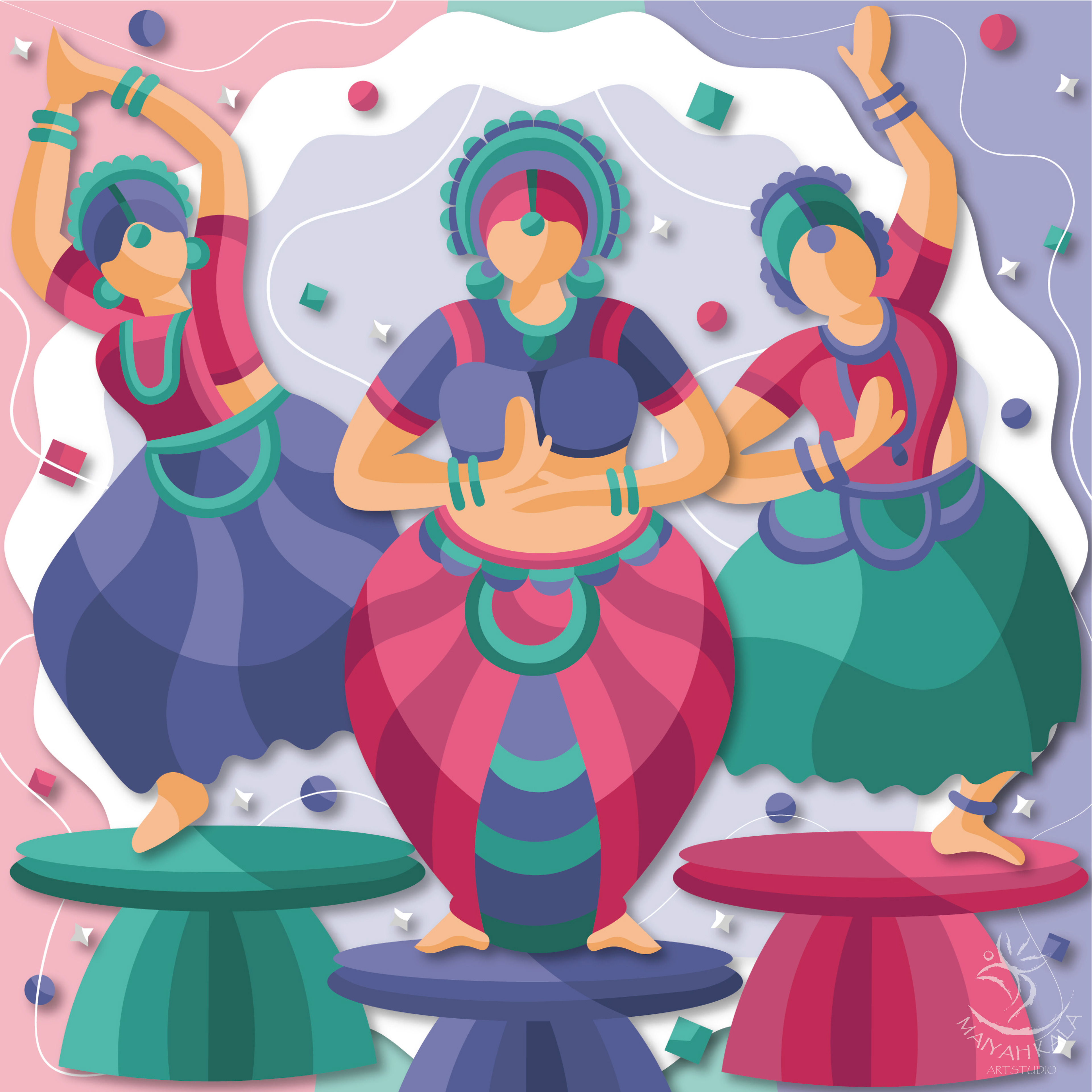 Do explore the free-flowing, rhythmic style with a bit of traditional touch illustrations series in an International Art style.