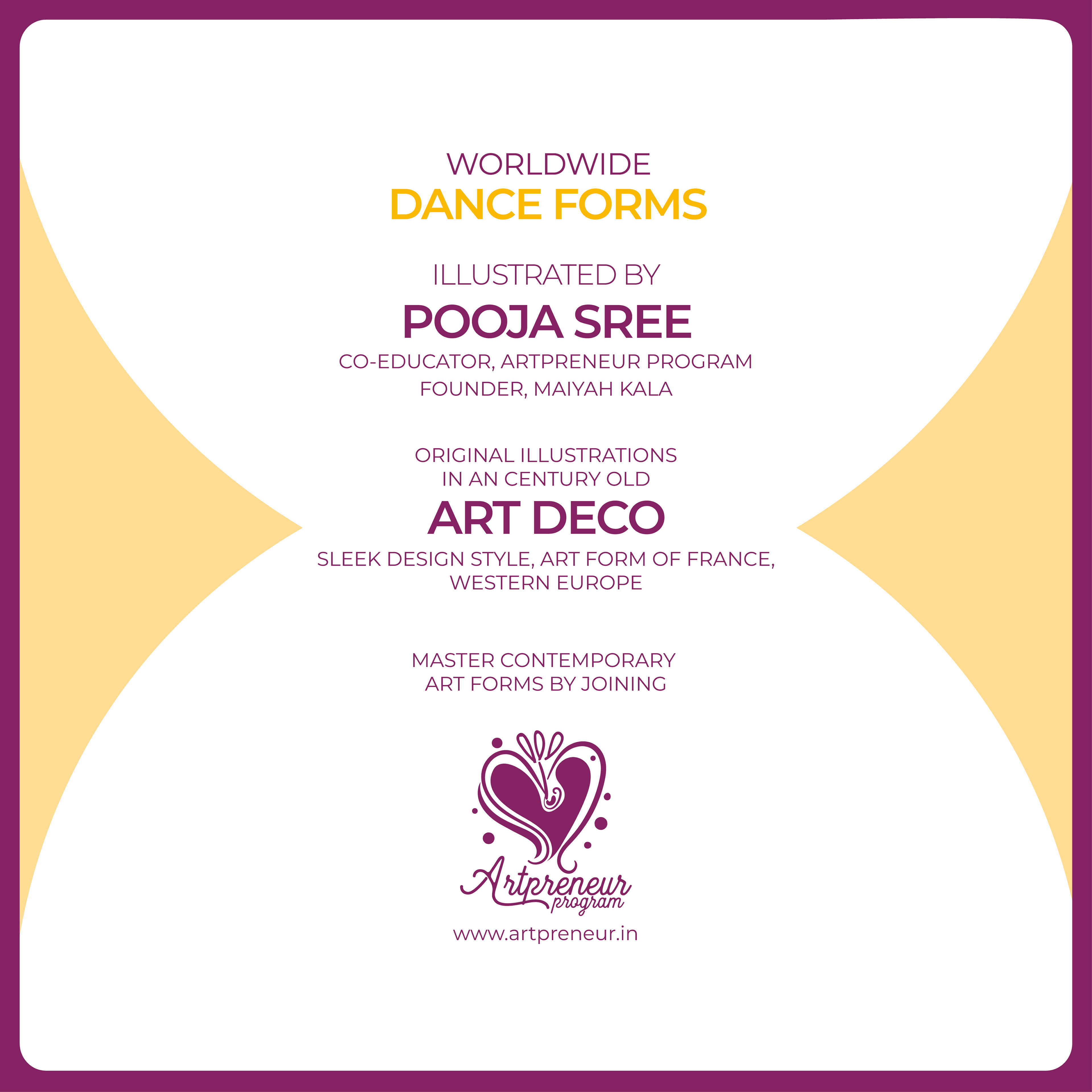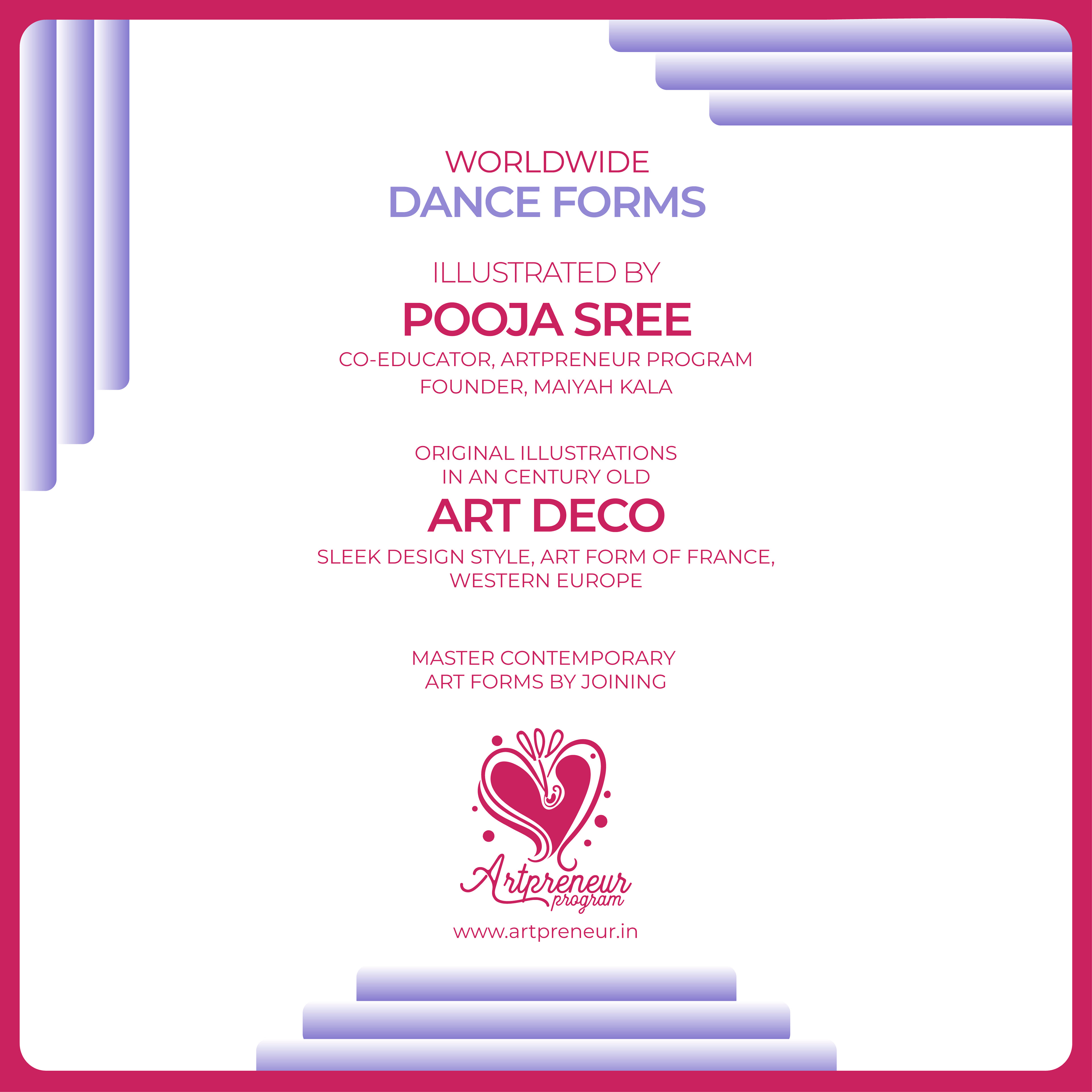 Because, Dance being the most powerful forms of human expression & has always been a means of deep communication between one another and these set of illustrations in Art Deco style are intended to reflect the dynamism of dance and the aesthetics of the artform itself, as it is one of the most prevalent Art style in the world.