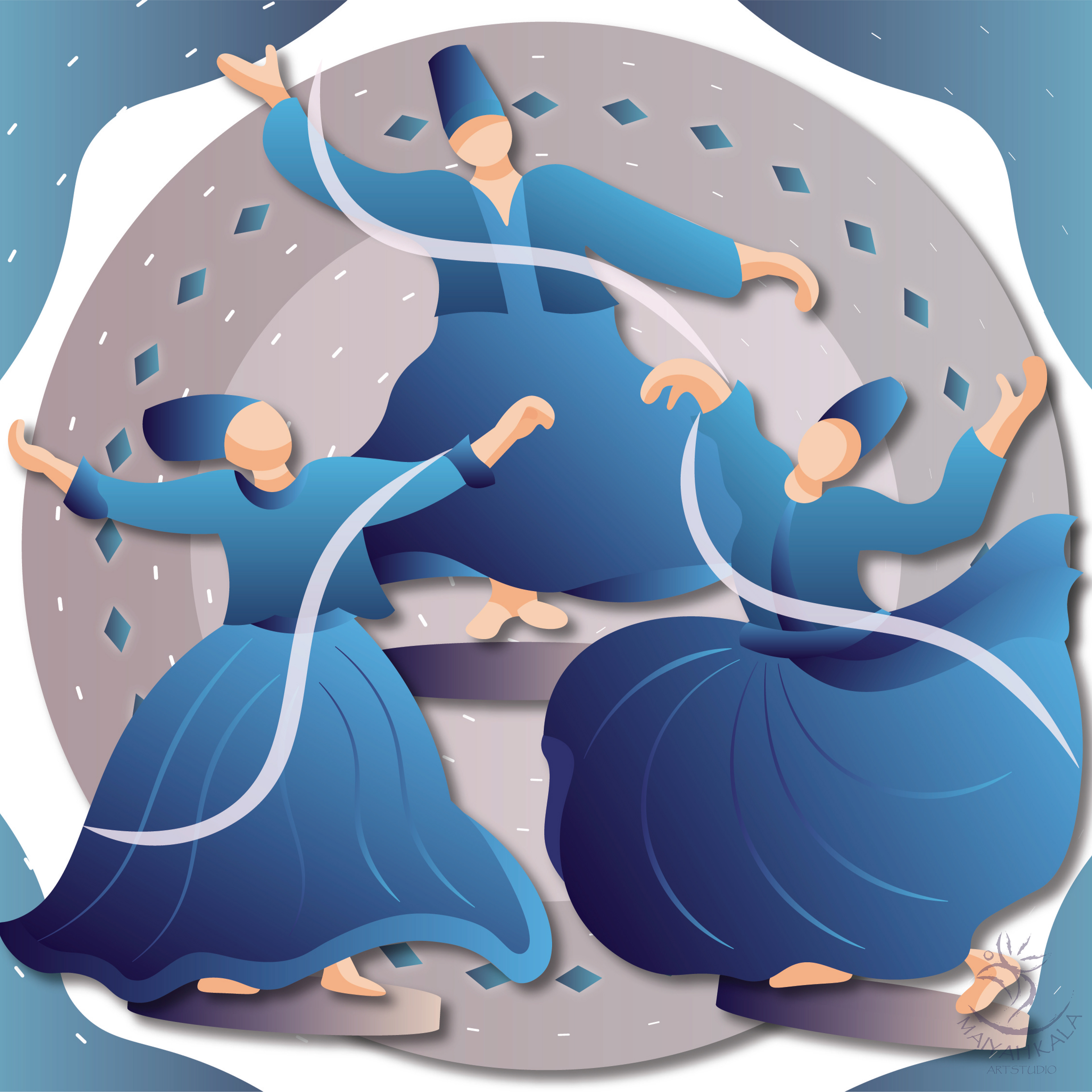 This dance is a spiritual practice, which bears the name of Sama (or Sema) meaning “spiritual hearing” or “deep listening” in connection with Sufism.