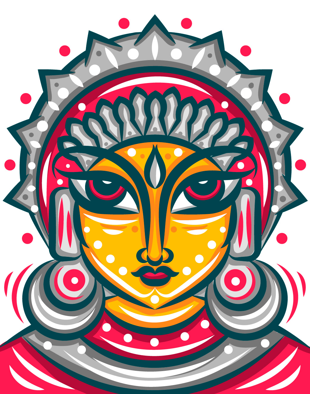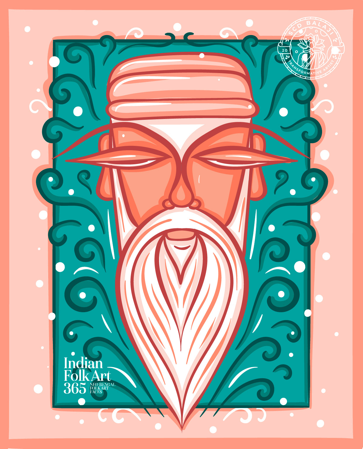 I am delighted to have the opportunity to showcase my Neo Bengal Folk Art Portraits with you. My artistic journey began with the desire to explore Bengal Folk Art Faces in a contemporary style. I started with rough pencil sketches in my sketchbook, and after seeing their potential, I experimented with ink brush strokes. Eventually, I digitized the illustrations using Adobe Illustrator and shared them on my social media platform, Instagram. The positive response from my audience has been truly inspiring and encouraged me to create a series of evolved illustrations.