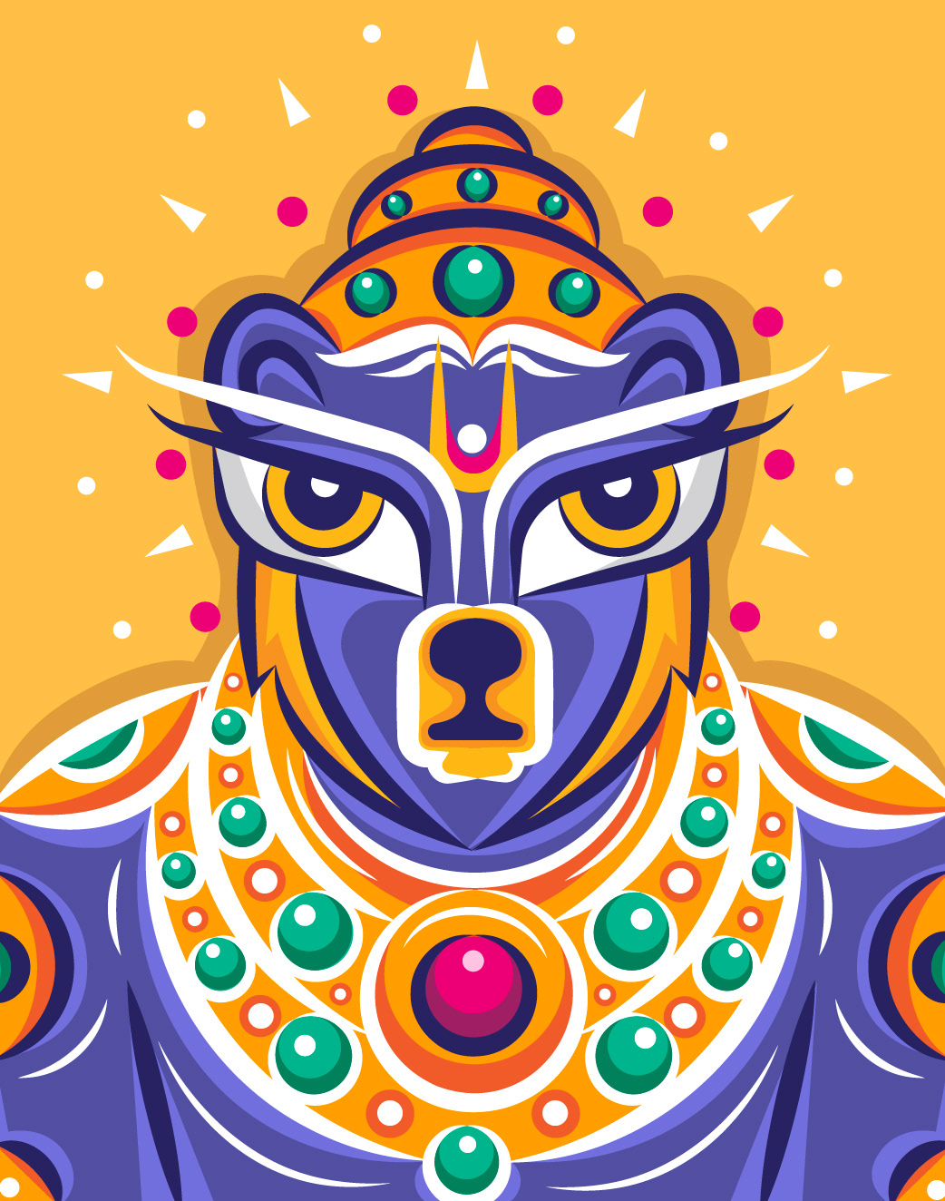 The Epic of #Ramayan introduces us to the fierce & wise Jambavan. This bear king is known for his immense strength and loyalty, always willing to help those in need. Jambavan offers valuable advice to Lord Rama and Lakshman on their journey to rescue Sita and defeats the demon king Ravana. He fights alongside them, using his skills to protect them from harm. Jambavan’s wisdom, bravery and unwavering loyalty serve as an inspiration to us all. Even today, in the southern part of India, a skilled, wise, brave, loyal leader is called a Jambavan, King of all.