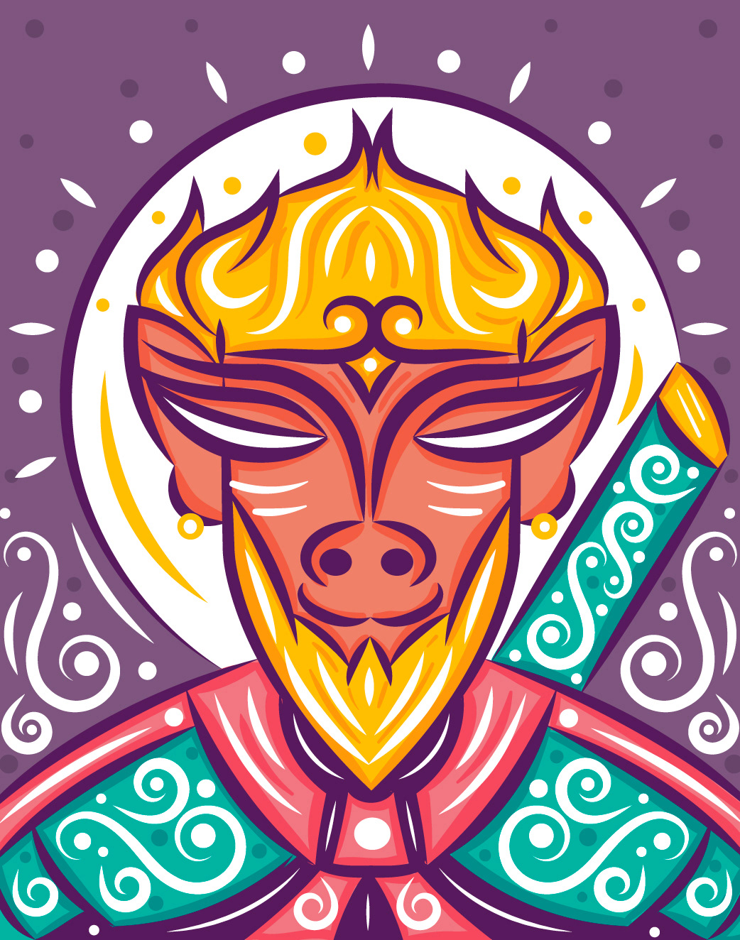 Bringing the rich cultural heritage of West Bengal to your screens! Today, I'm sharing an illustration of Kaal Bhairav, the revered deity at the Kathmandu Temple, in the NEO BENGAL FOLK ART style. This unique form of Indian Folk Art is known for its vibrant colors, intricate details, and captivating storytelling. Get a glimpse into the divine with this stunning illustration of the face of Kaal Bhairav.