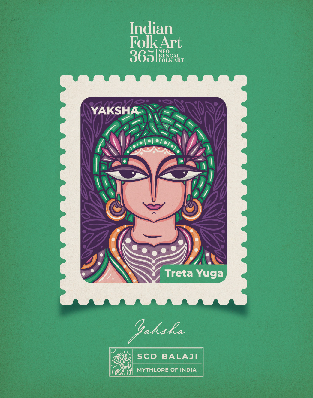Yakshas are wild forest mystical spirits in Hindu mythology. They are depicted as forest dwellers and powerful protectors of the natural world, as well as guardians of mystical treasures. Yakshas are associated with wealth and prosperity, often holding a pot of gold or other valuable objects. They are believed to be able to grant wishes and bring good luck. Yakshas are often linked with Kubera, the god of wealth, and are worshipped in many parts of India and Southeast Asian mythlores.