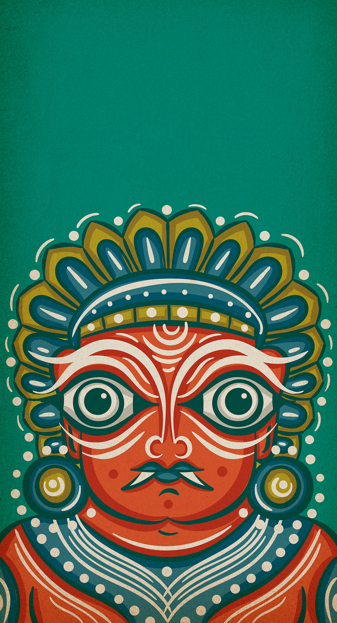 I am delighted to have the opportunity to showcase my Neo Bengal Folk Art Portraits with you. My artistic journey began with the desire to explore Bengal Folk Art Faces in a contemporary style. I started with rough pencil sketches in my sketchbook, and after seeing their potential, I experimented with ink brush strokes. Eventually, I digitized the illustrations using Adobe Illustrator and shared them on my social media platform, Instagram. The positive response from my audience has been truly inspiring and encouraged me to create a series of evolved illustrations.