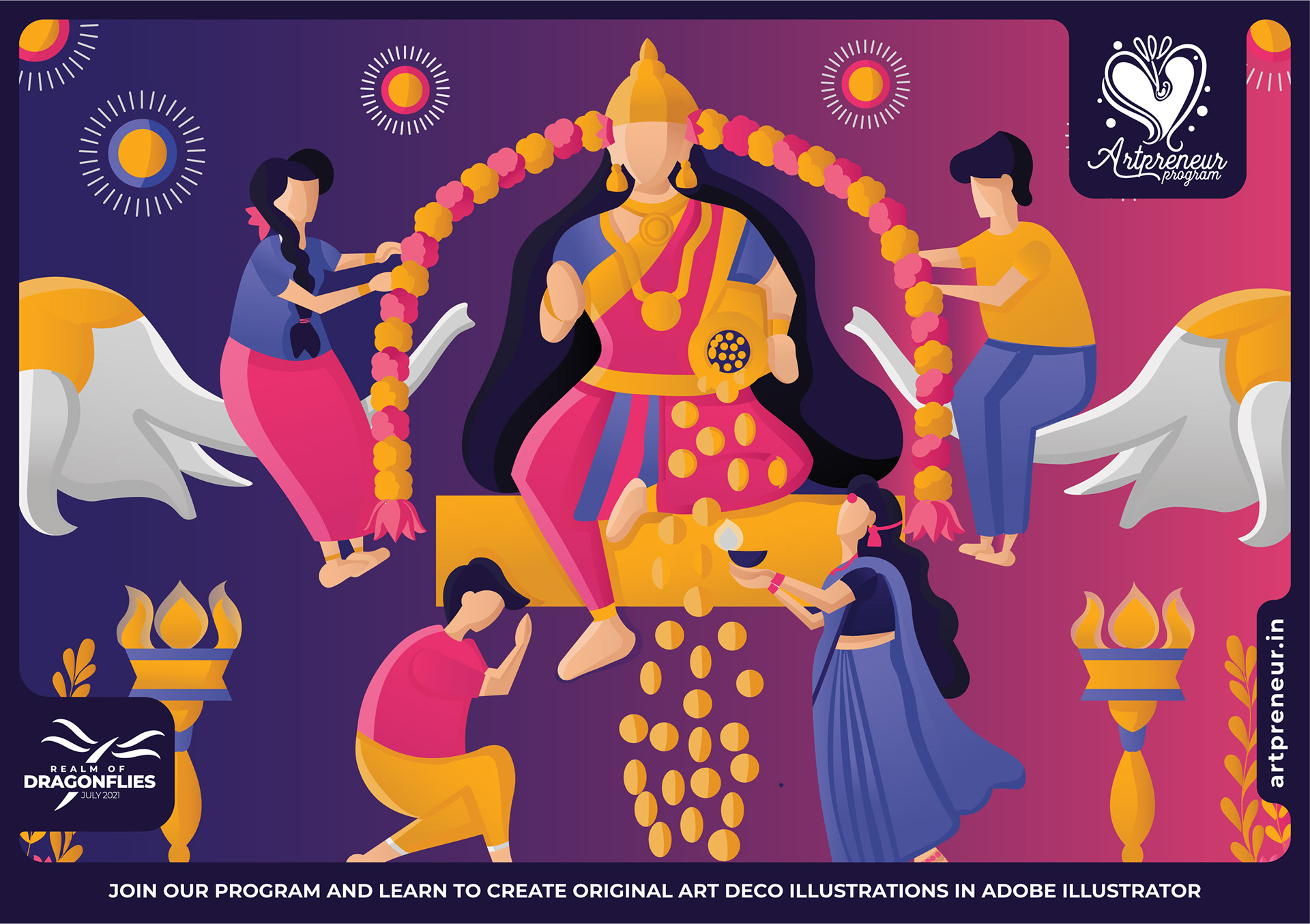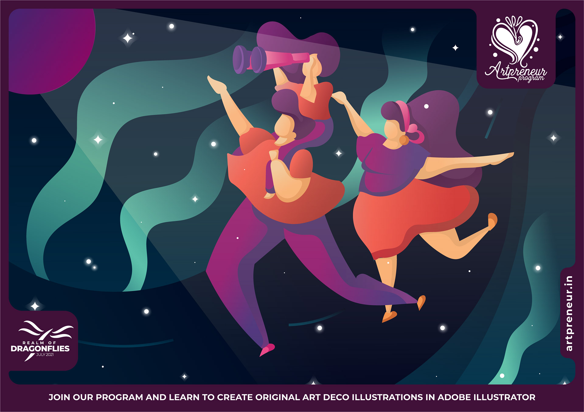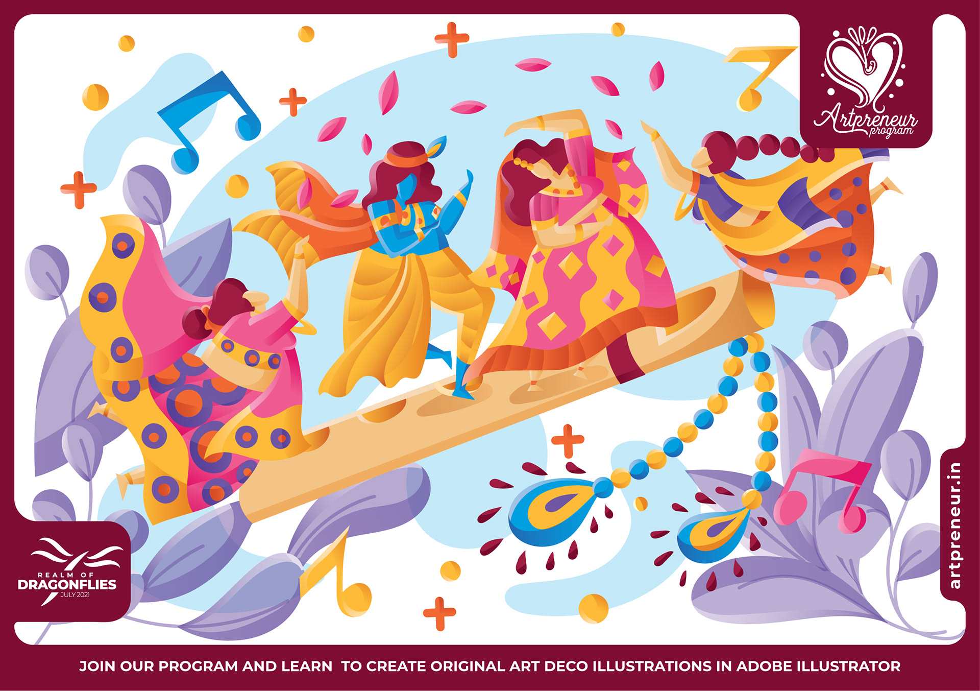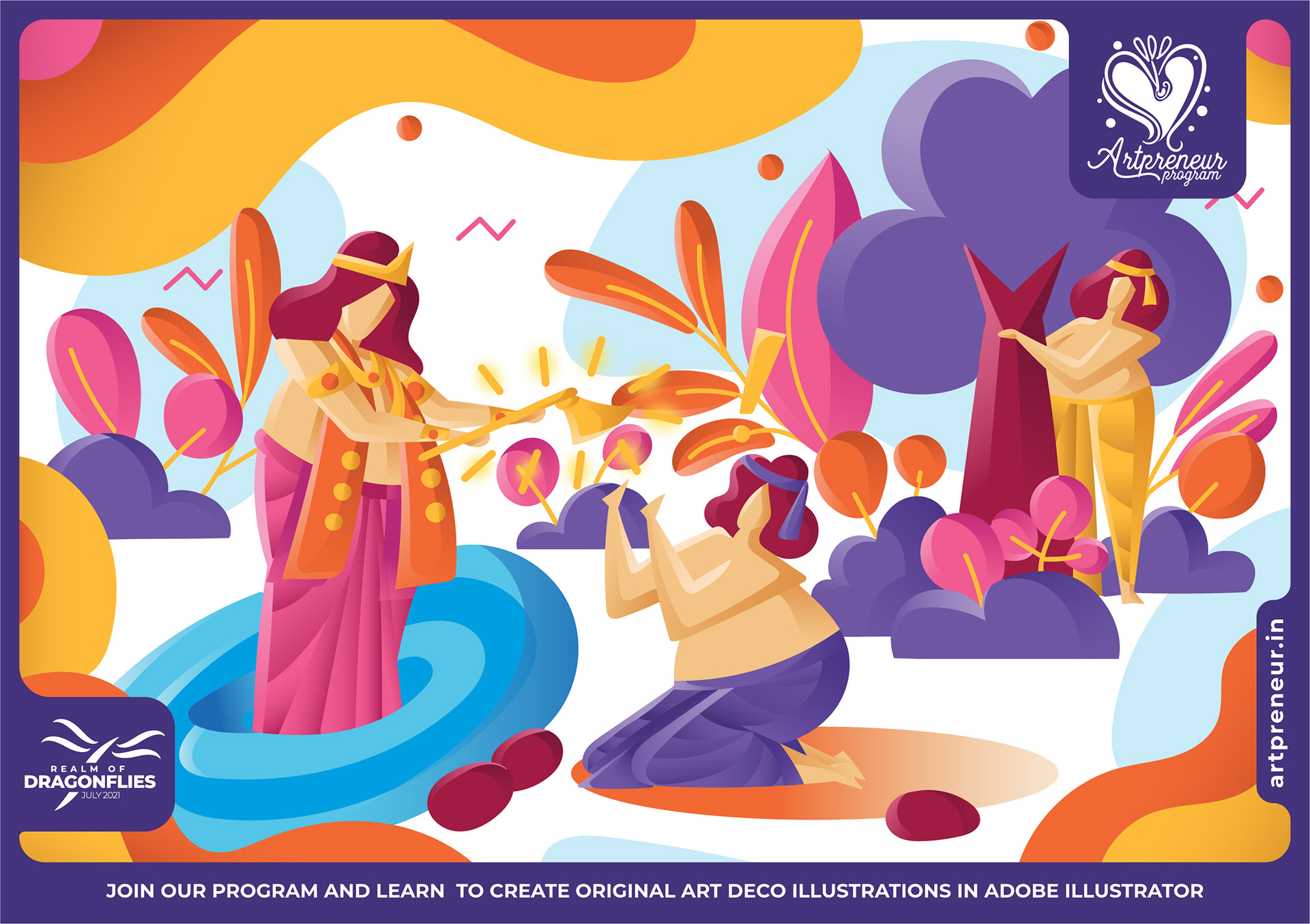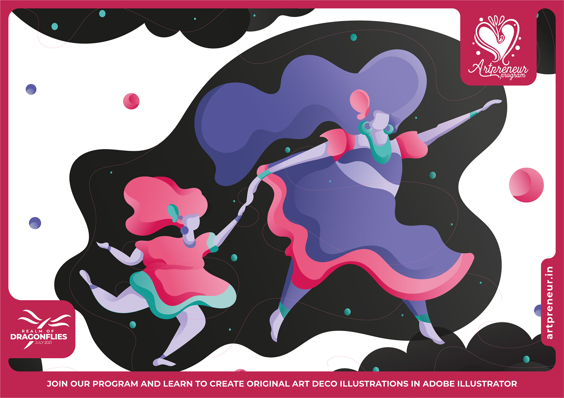 The Art Deco Illustrations, Doodles and Sketches are done by the Realm of Dragonflies Batch students of Artpreneur Online Program. They have not had any prior experience and knowledge in illustrations or art forms.