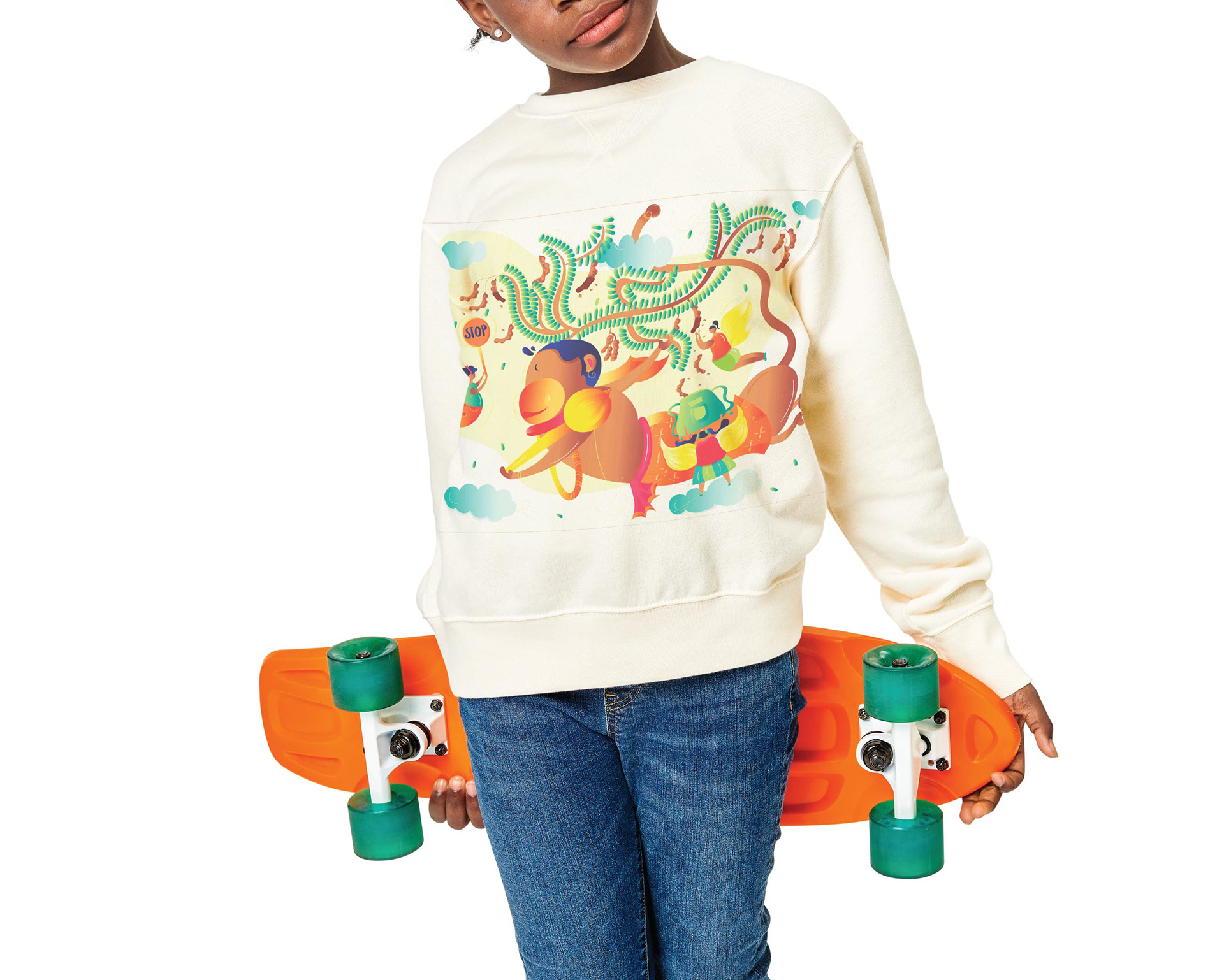 Drawing inspiration from the Scandinavian art style, this piece depicts an Amla tree with abundant fruits, grown at Grandma's home. During the summer vacation, Grandma affectionately crafts zesty Amla pickle, imbued with fragrant spices. She shares it with her granddaughter, a squirrel, a deer, and a monkey—symbolising her boundless love and kindness. The illustration also captures how her affection complements the inherent virtues of the Amla Fruit.