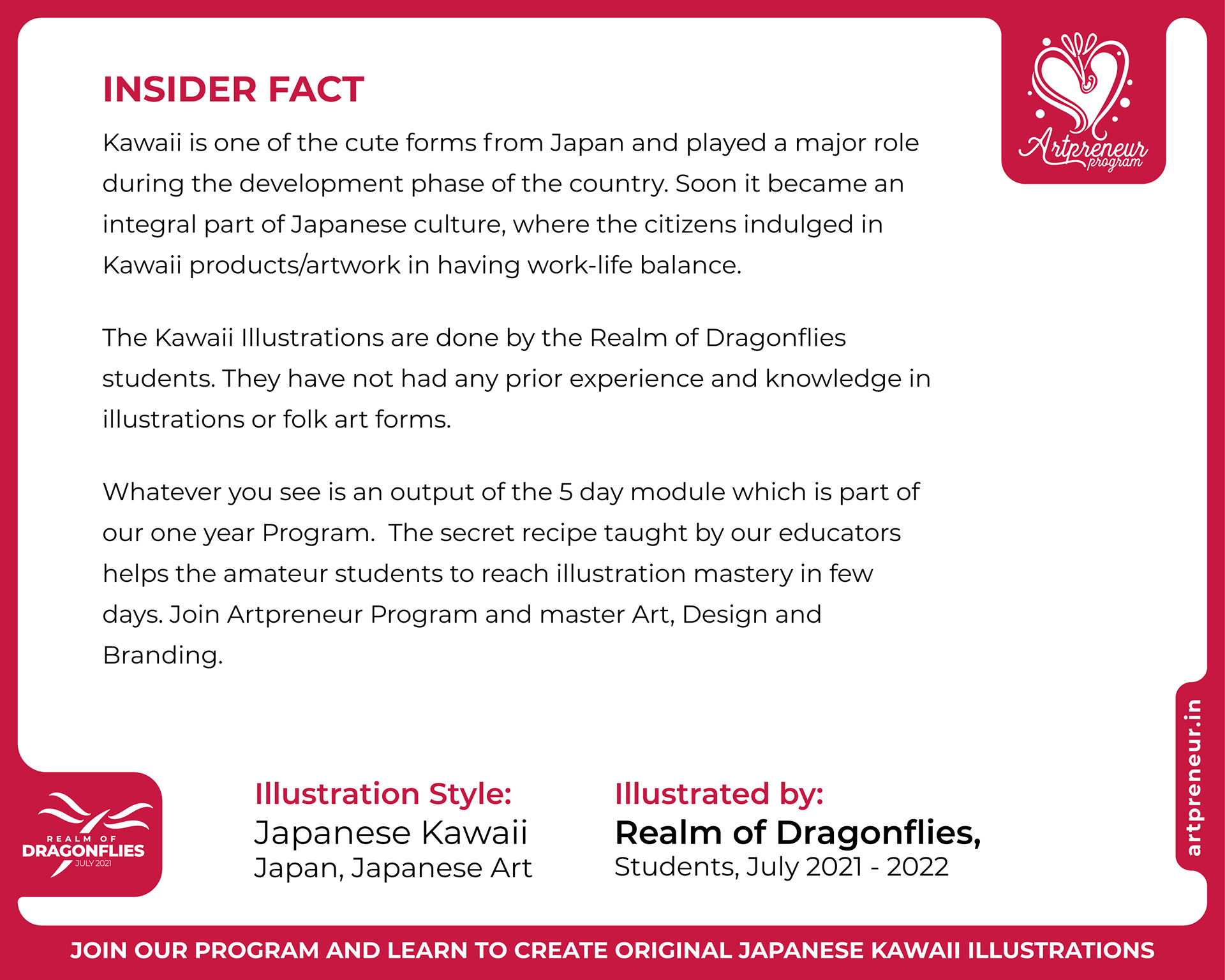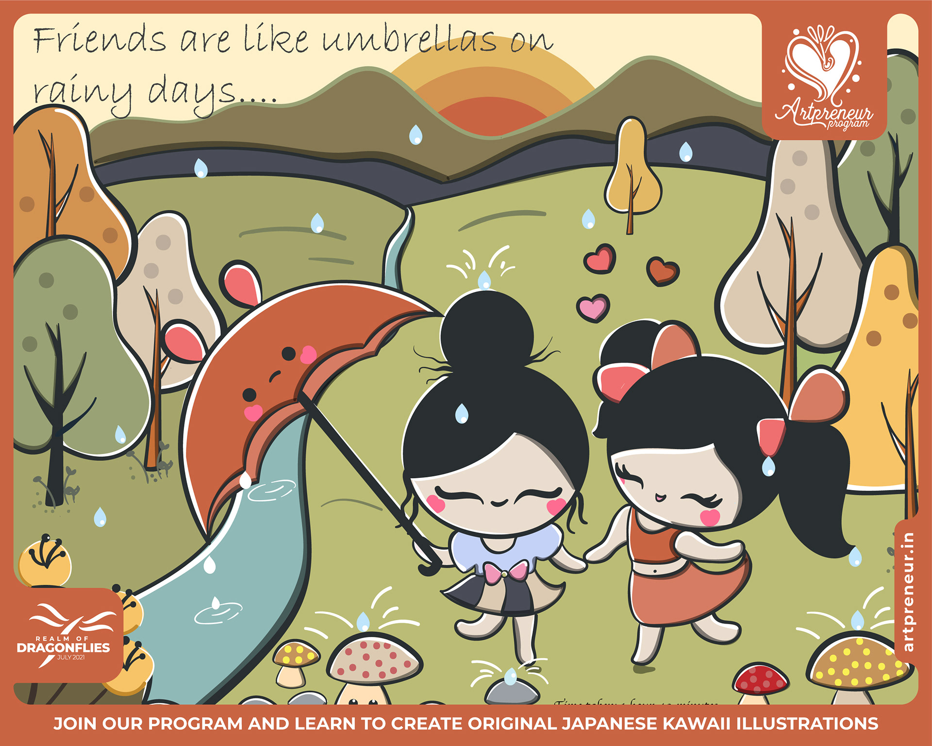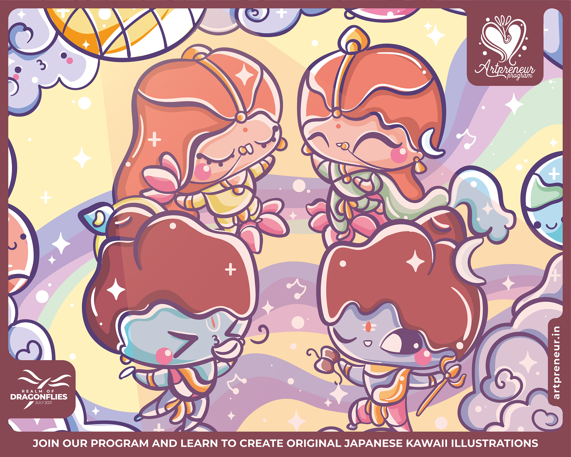 The Kawaii Illustrations, Doodles and Sketches are done by the Realm of Dragonflies Batch students of Artpreneur Online Program. They have not had any prior experience and knowledge in illustrations or art forms.