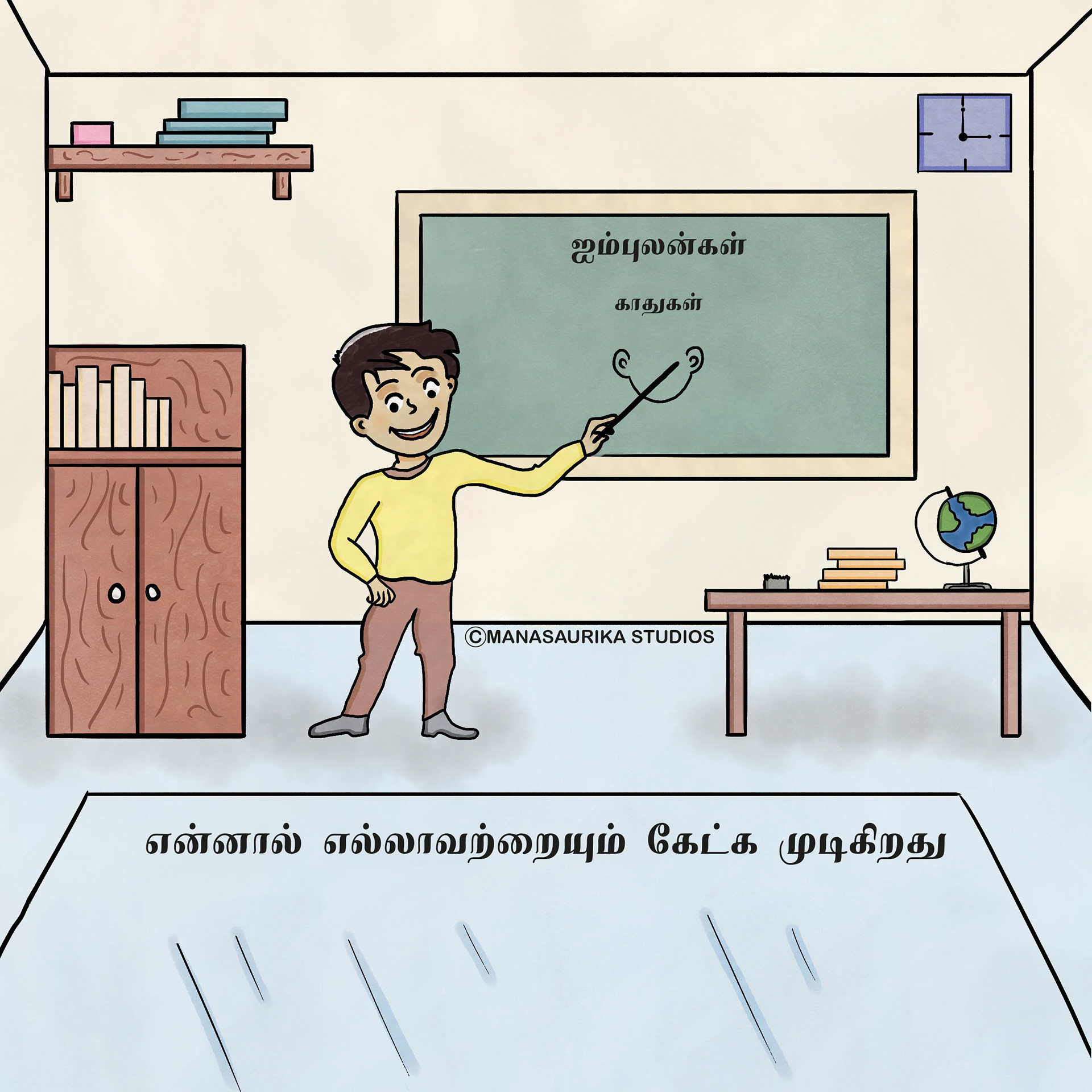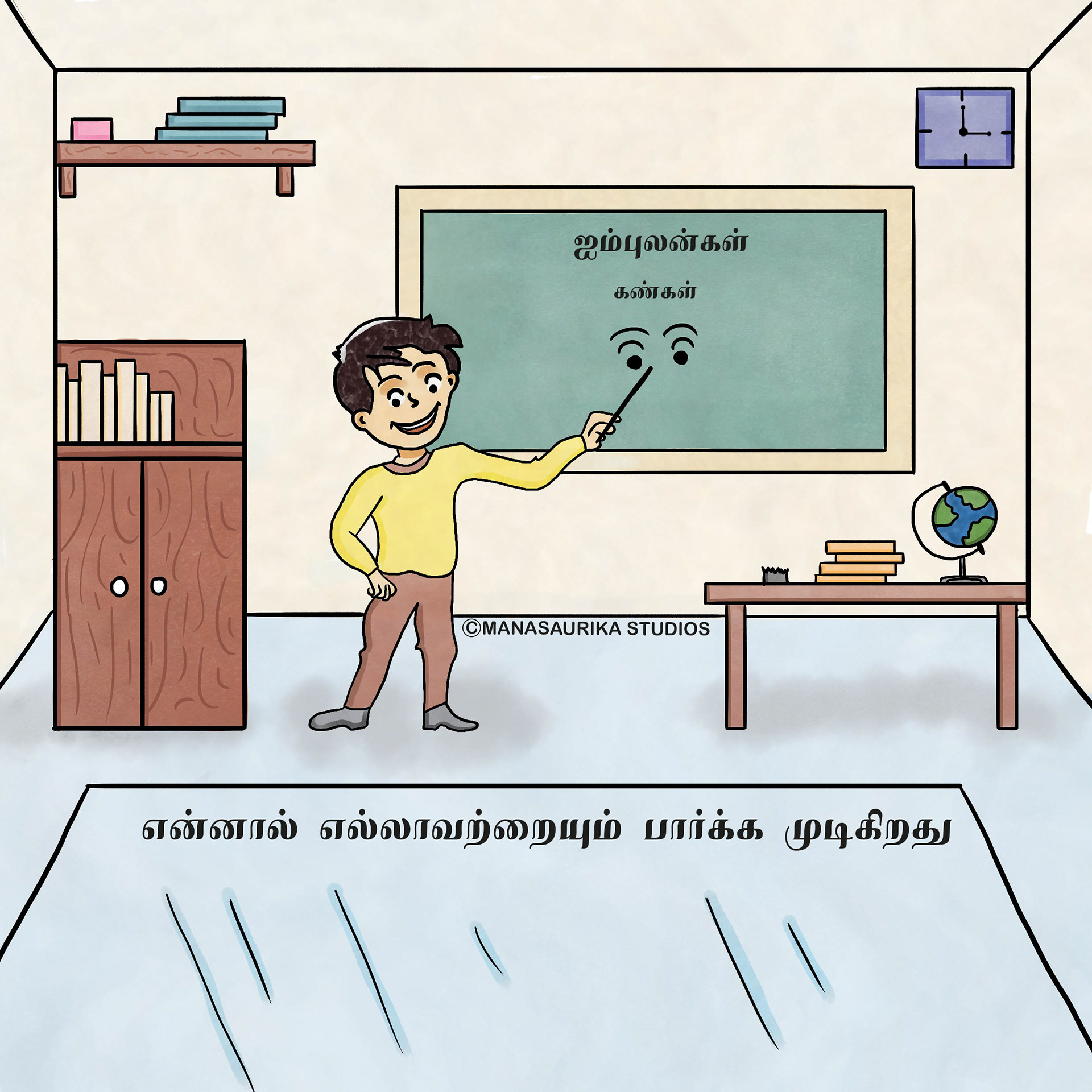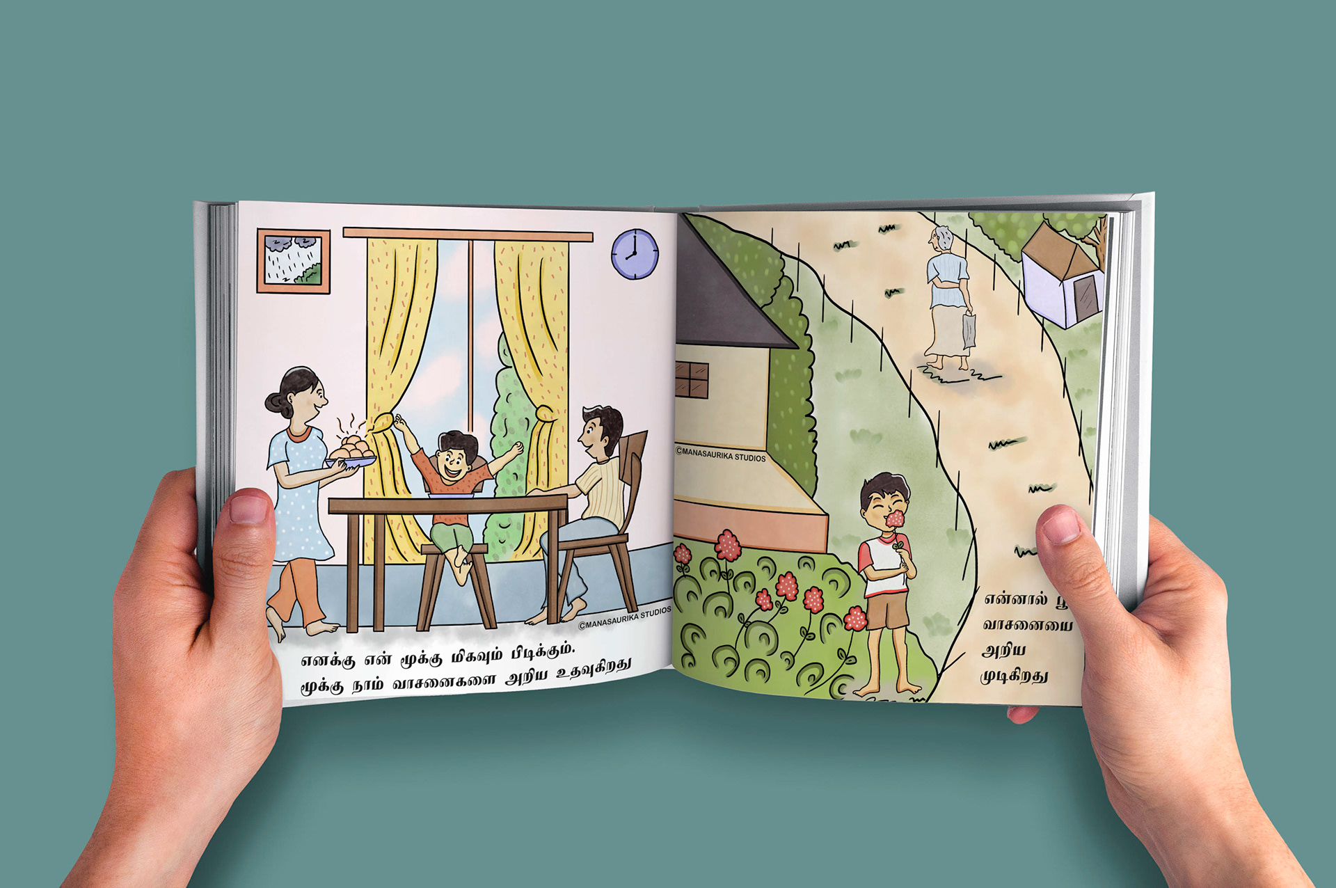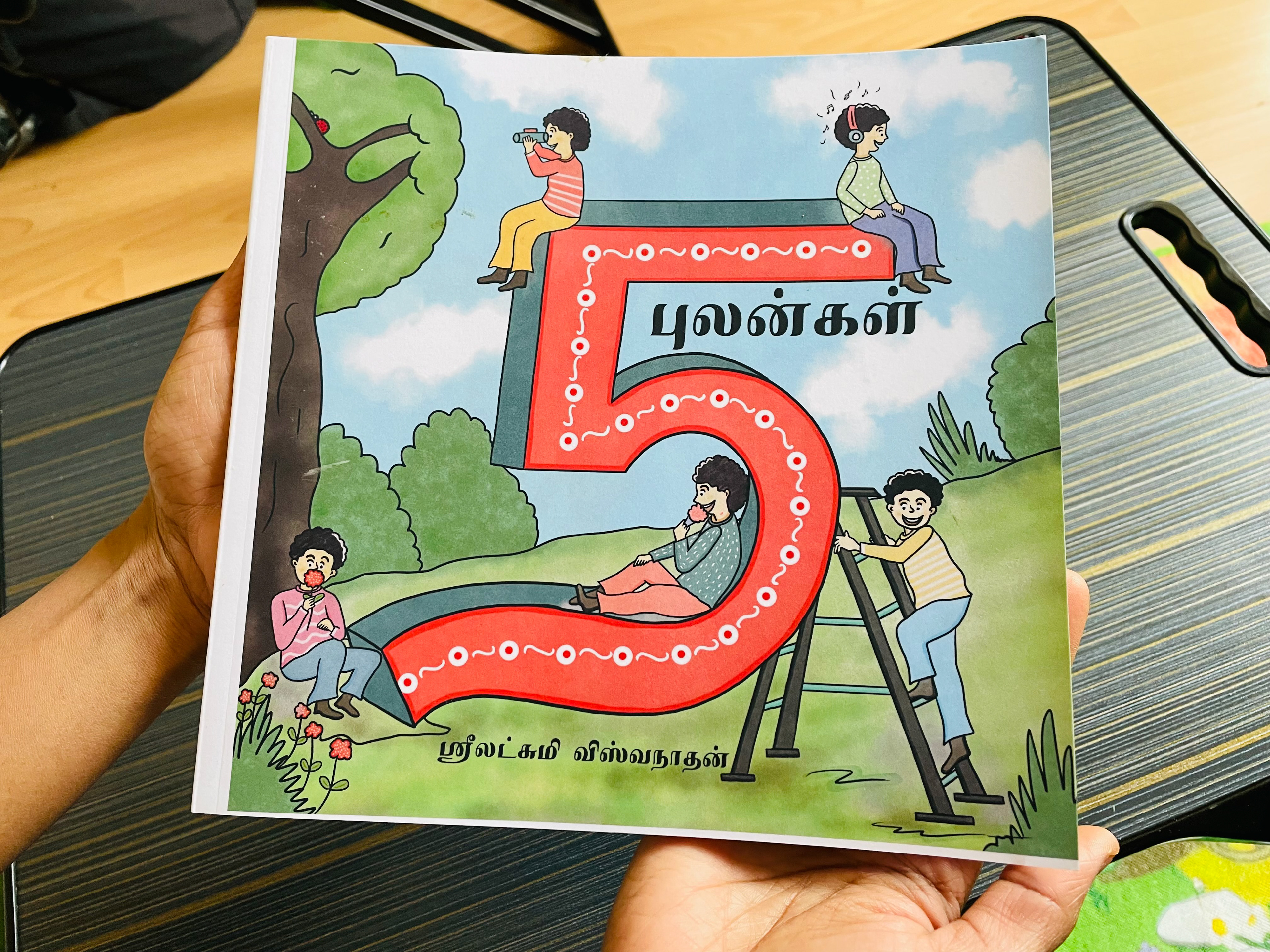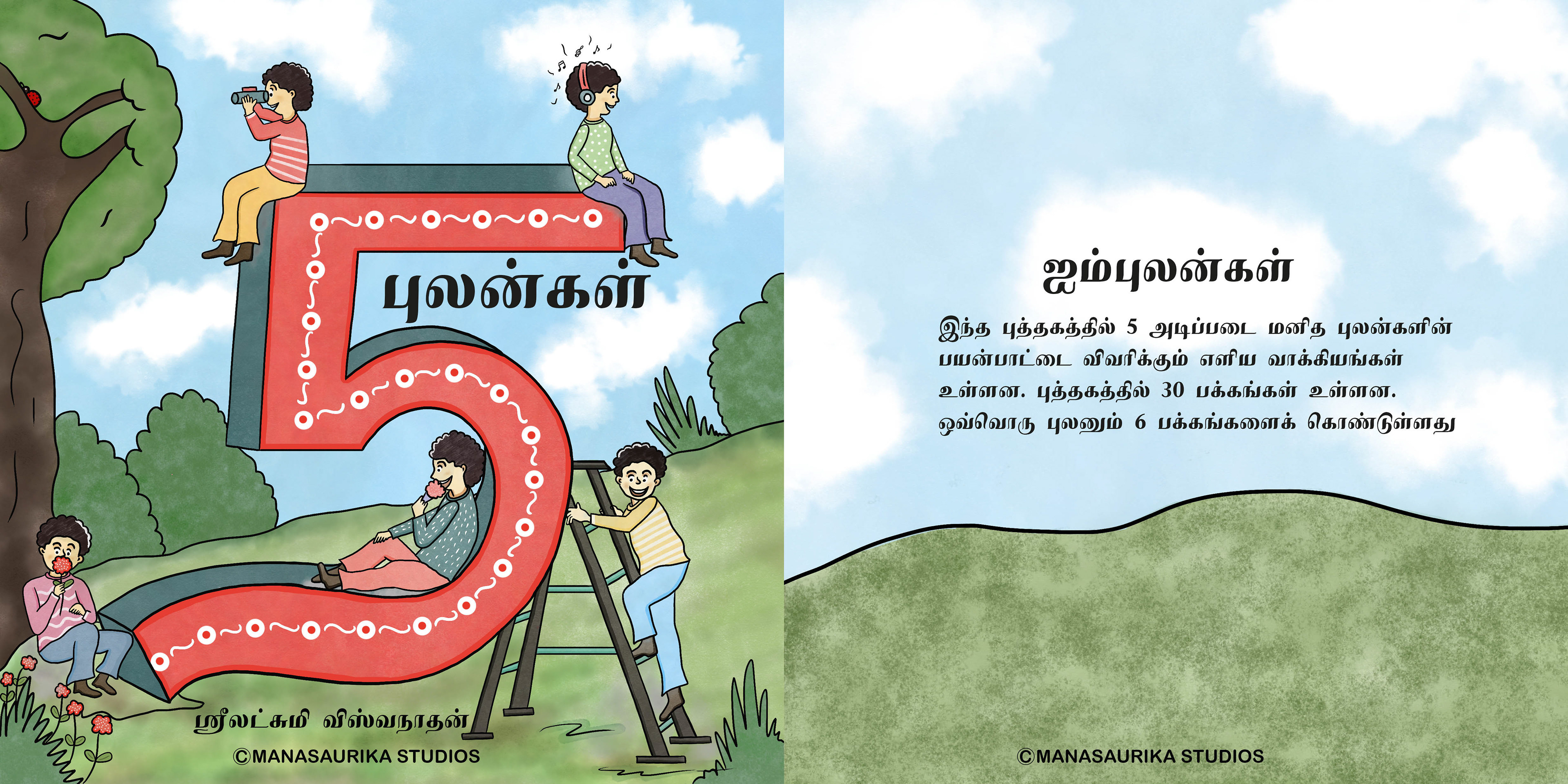 Humans have five basic senses: Touch, sight, hearing, taste and smell. The sensing organ associated with each sense send information to the brain to help us understand and perceive the world around us. We are always blessed to use all our five senses to enjoy and live each and every day. Sometimes we will use all our five senses even without realising it. This book is about 5 senses filled with colourful illusatrtions with simple dialogues. Each sense consists of 6 pages and in total there are 30 pages in the book. This book mainly created as an attempt to create a simple level one book in Tamil for preschoolers similar to English language.