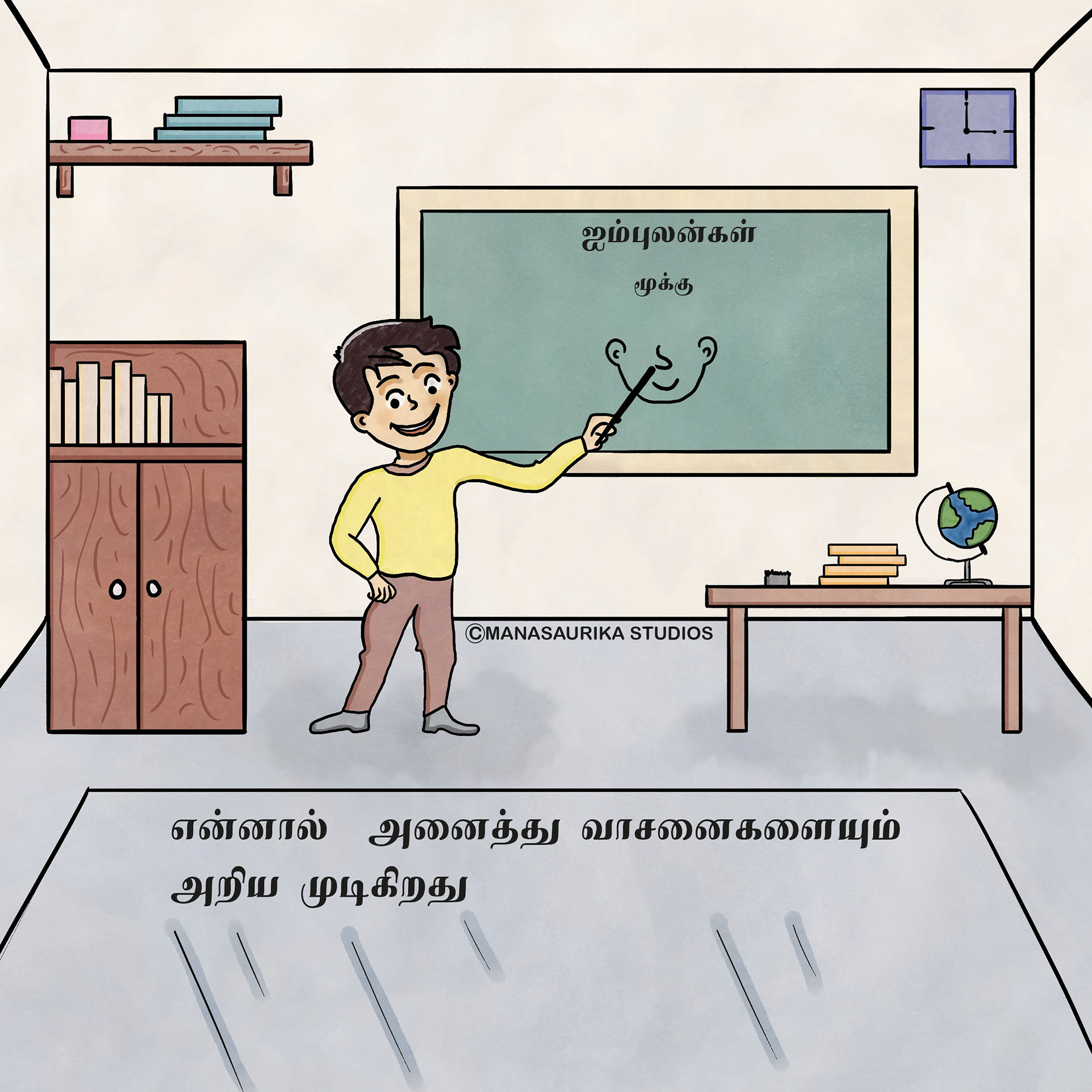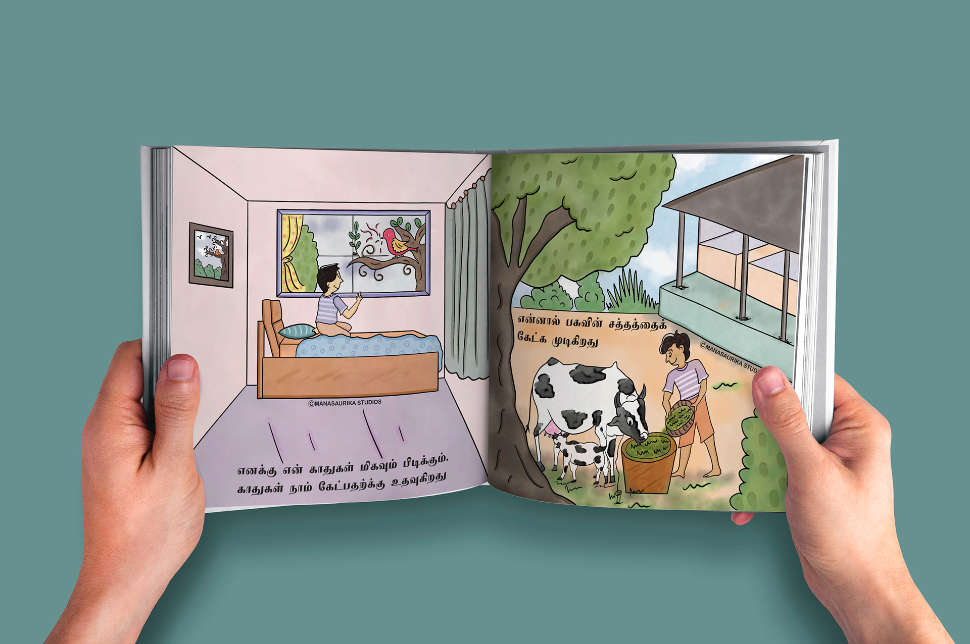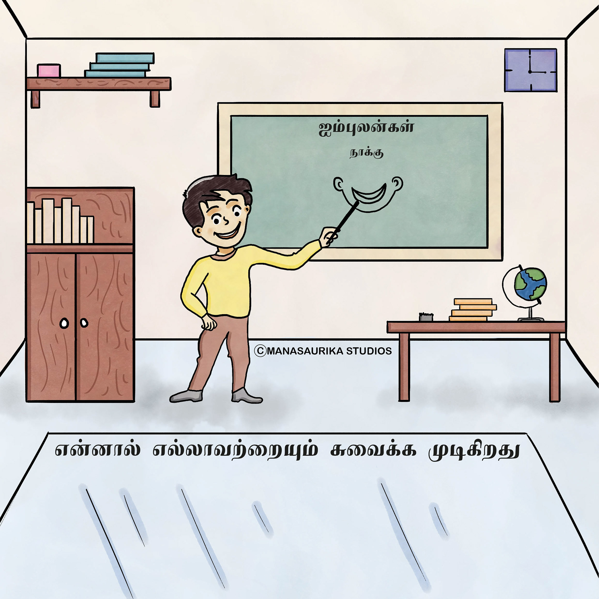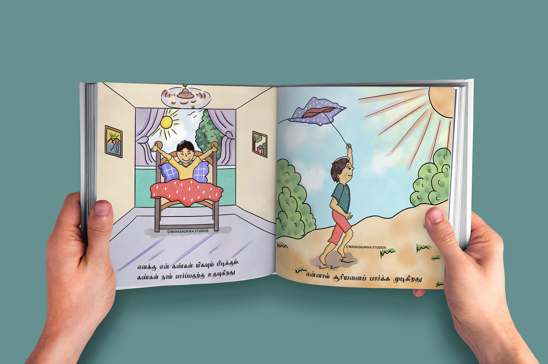 Humans have five basic senses: Touch, sight, hearing, taste and smell. The sensing organ associated with each sense send information to the brain to help us understand and perceive the world around us. We are always blessed to use all our five senses to enjoy and live each and every day. Sometimes we will use all our five senses even without realising it. This book is about 5 senses filled with colourful illusatrtions with simple dialogues. Each sense consists of 6 pages and in total there are 30 pages in the book. This book mainly created as an attempt to create a simple level one book in Tamil for preschoolers similar to English language.