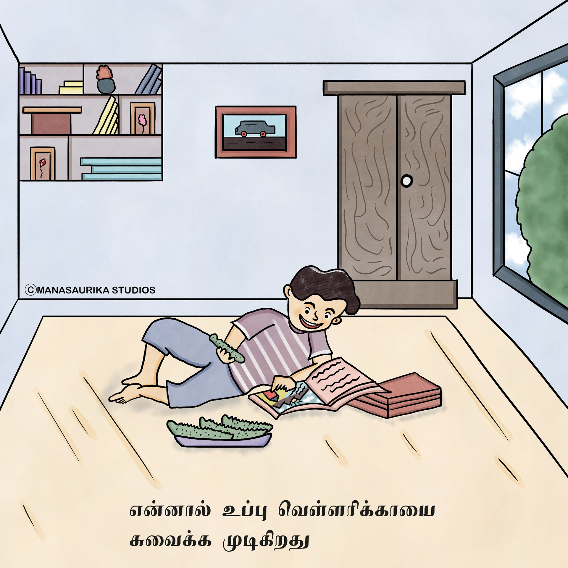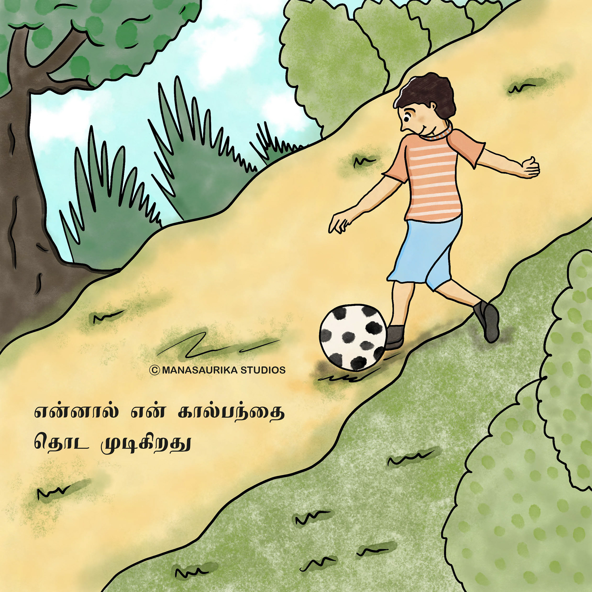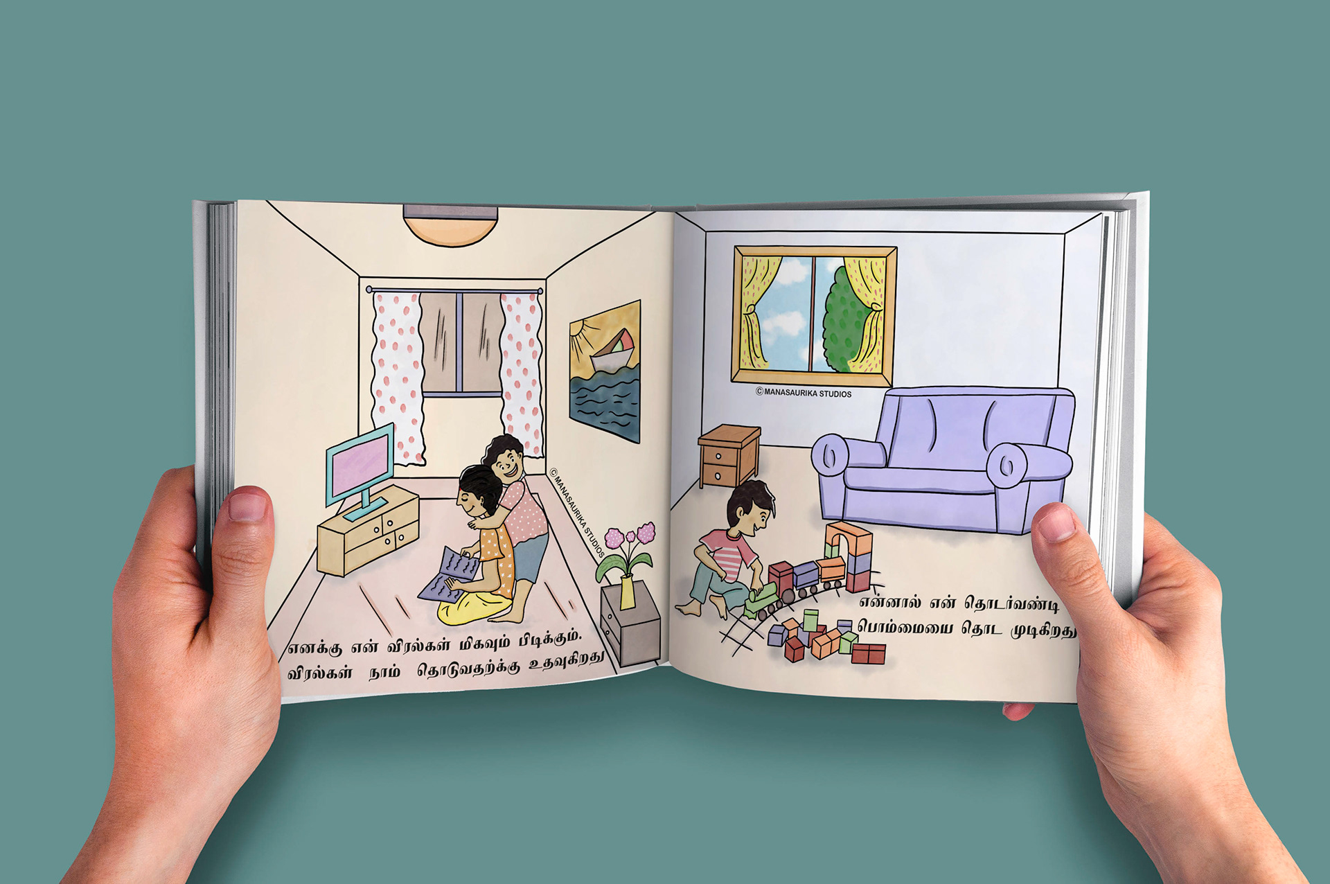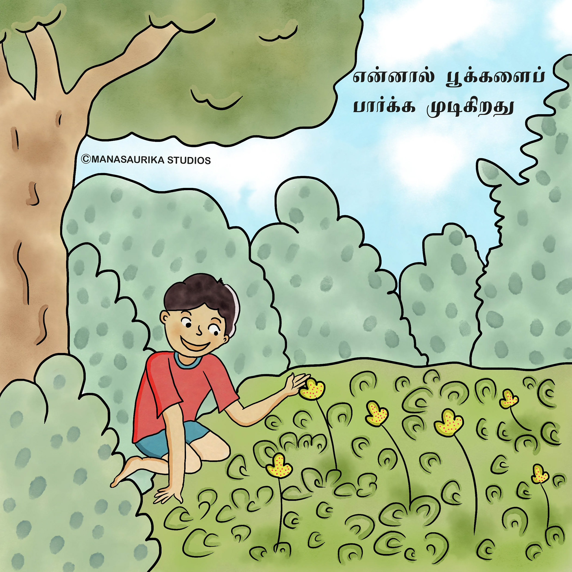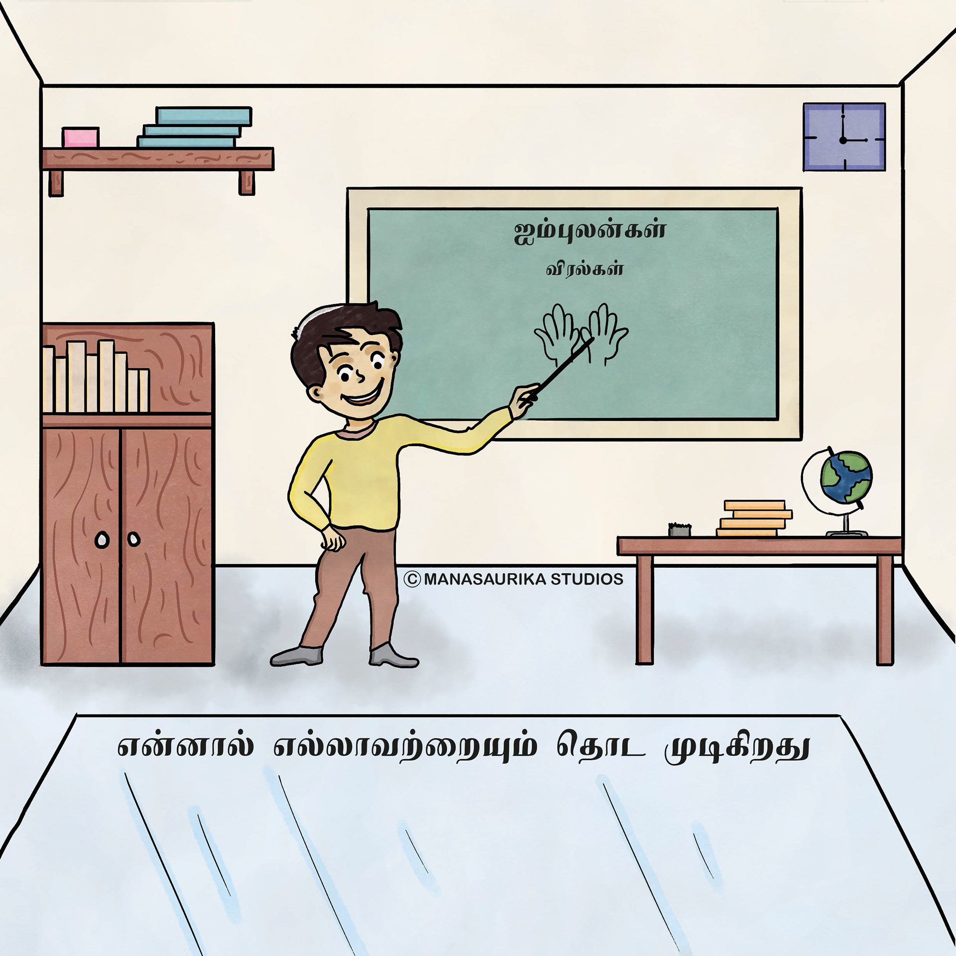 Humans have five basic senses: Touch, sight, hearing, taste and smell. The sensing organ associated with each sense send information to the brain to help us understand and perceive the world around us. We are always blessed to use all our five senses to enjoy and live each and every day. Sometimes we will use all our five senses even without realising it. This book is about 5 senses filled with colourful illusatrtions with simple dialogues. Each sense consists of 6 pages and in total there are 30 pages in the book. This book mainly created as an attempt to create a simple level one book in Tamil for preschoolers similar to English language.