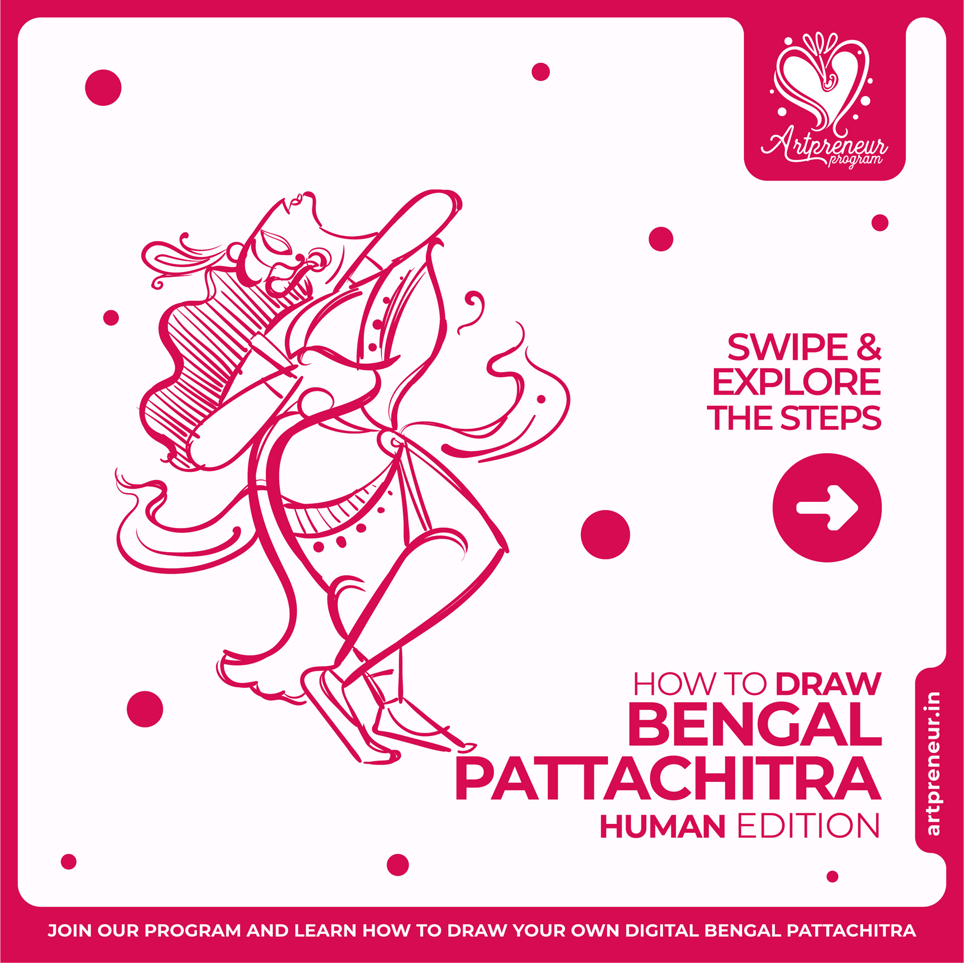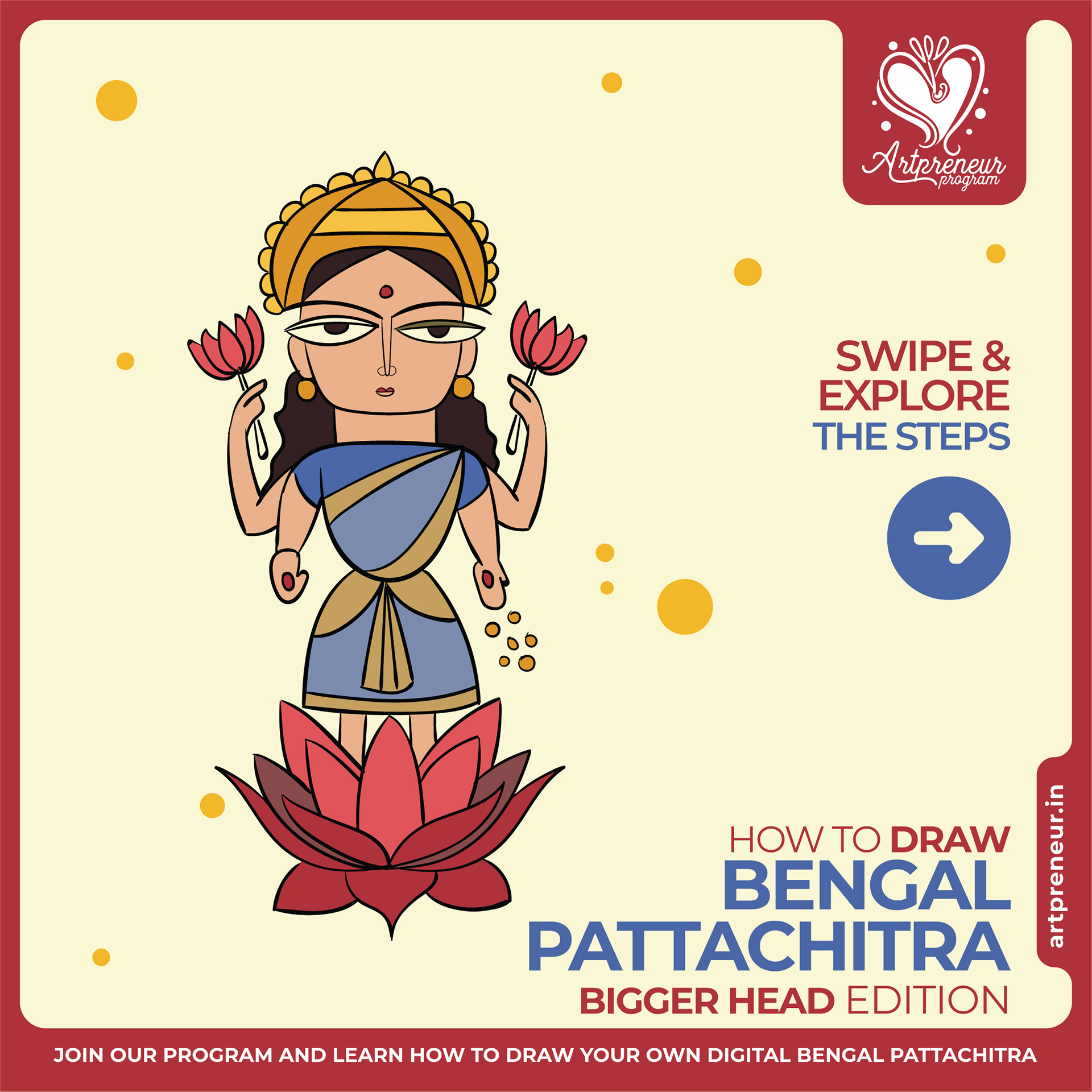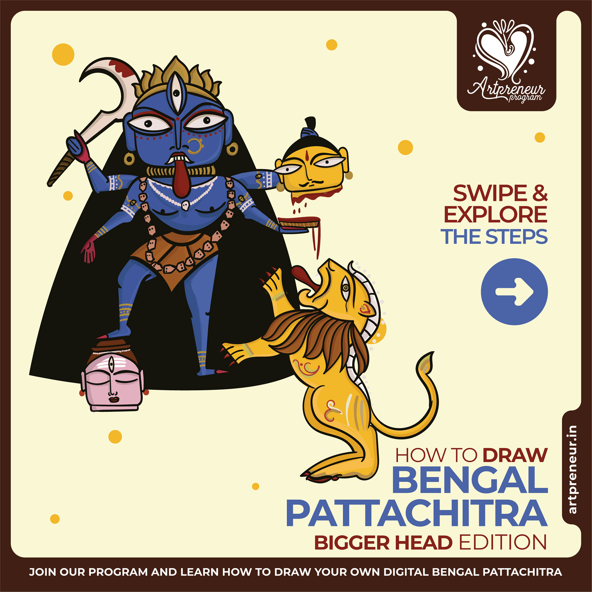 The Bengal Pattachitra Illustrations, Doodles and Sketches are done by the Realm of Dragonflies Batch students of Artpreneur Online Program. They have not had any prior experience and knowledge in illustrations or folk art forms.