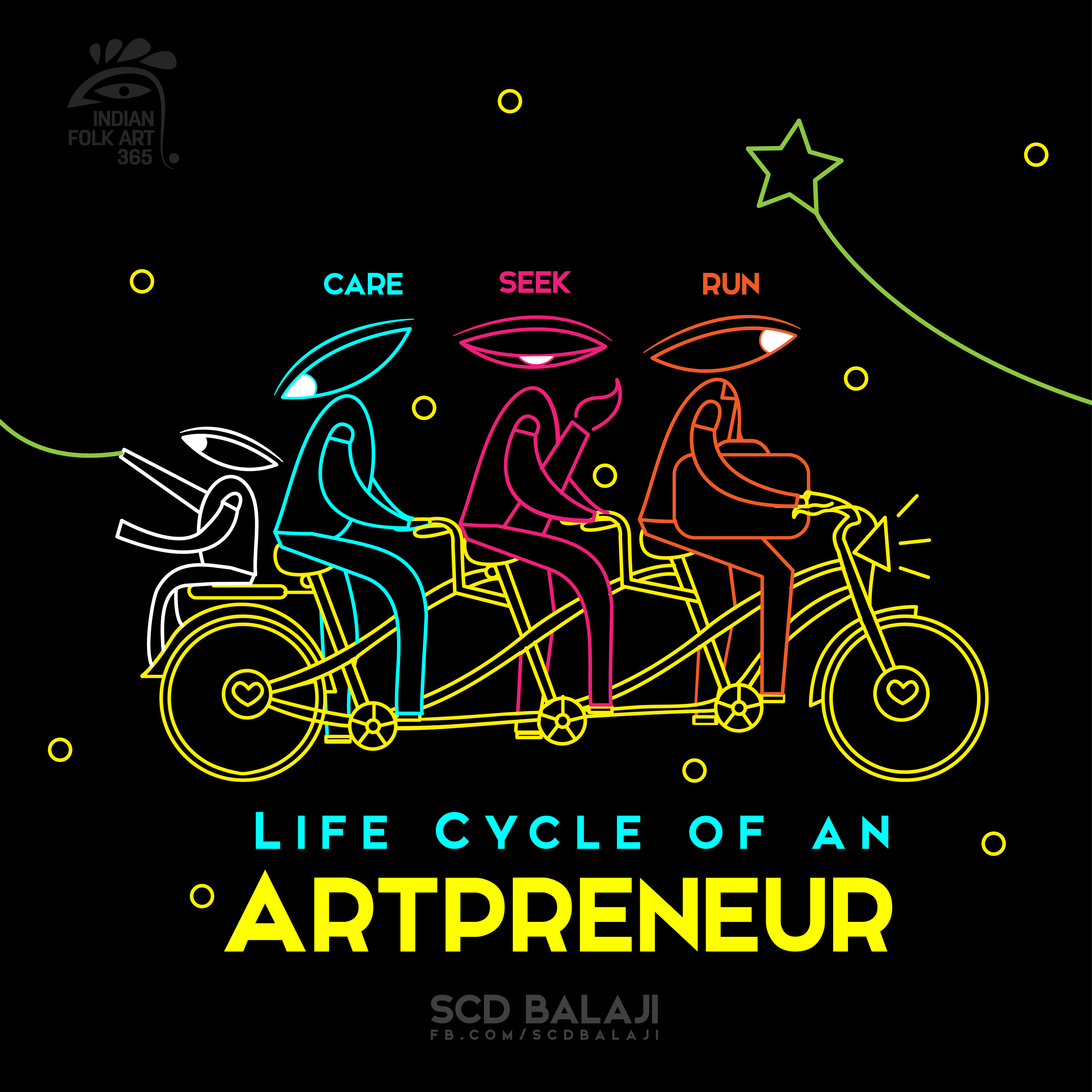 Indian Folk Art 365 aka Indian Folk & Art 365 is an Experimental Illustration Movement instigated by SCD Balaji, The Chief Creative Officer of Atma Studios. IFA365 explores the various folklores of Indian states through its contemporary Indian and International folk illustrations. It is an Initiation to share and spread Indian Folklore to the world through contemporary Illustrations and Hands-on workshops. We are trying to document the Indian Heritage, Pop Culture and Folk Art through Illustrations for the upcoming digital generation. All Indian Folk Art 365 Illustrations are available as Merchandise and Corporate gifts on request.
