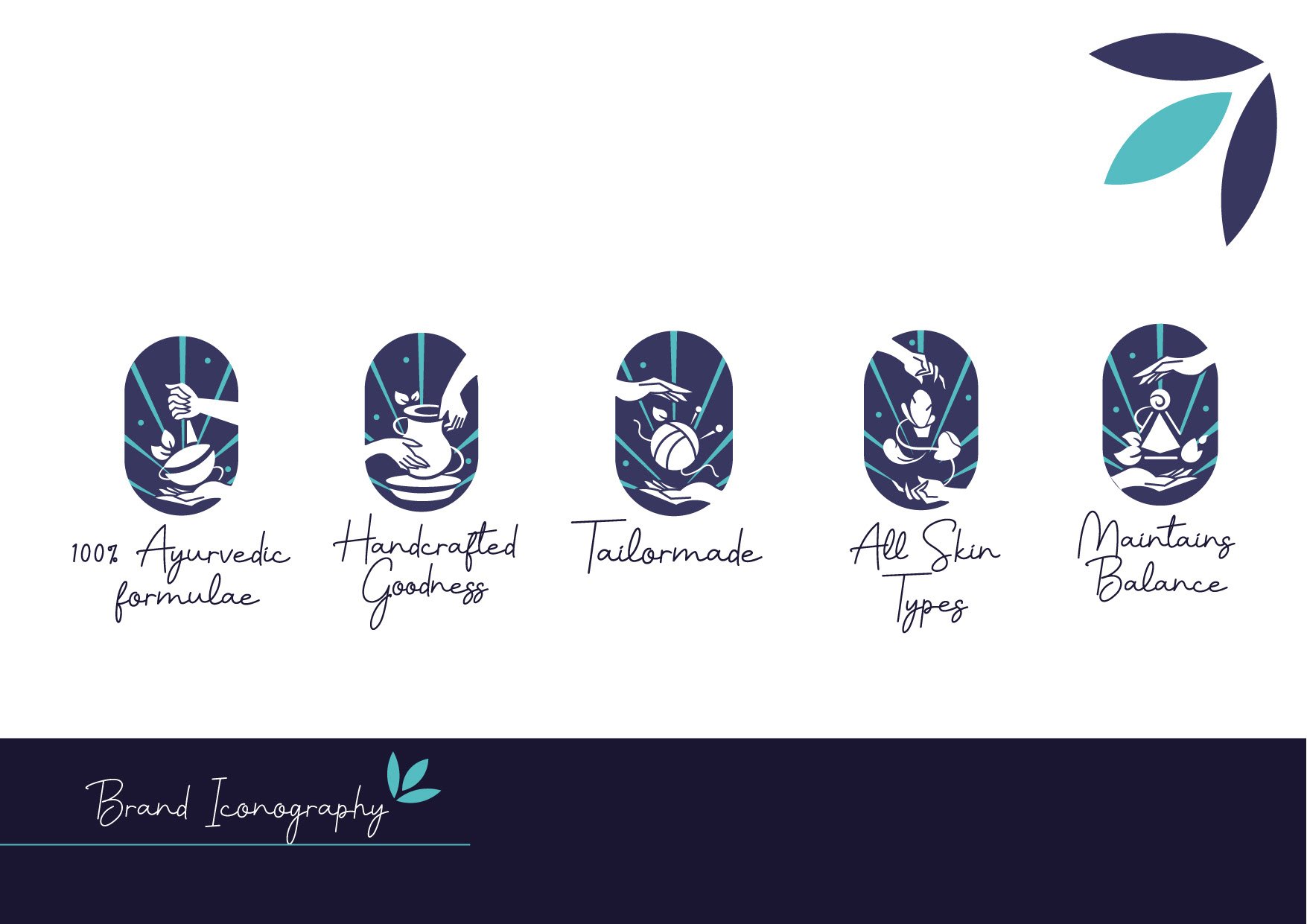 Brand element is designed to indicate the organic, natural ingredients sourced for preparing the ayurvedic formulae