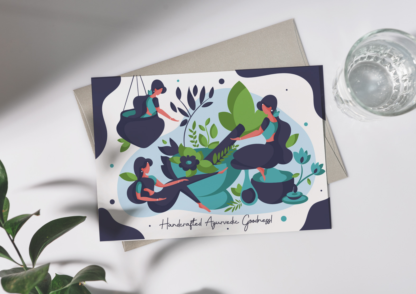 This Branding project was done for a virtual Ayurvedic Skincare Brand that aims to provide the ancient ayurvedic wellness formulae.This project is a compilation of Logo design, Iconography, Illustration, Patterns, Mascot, Business set & Website design done for the Brand