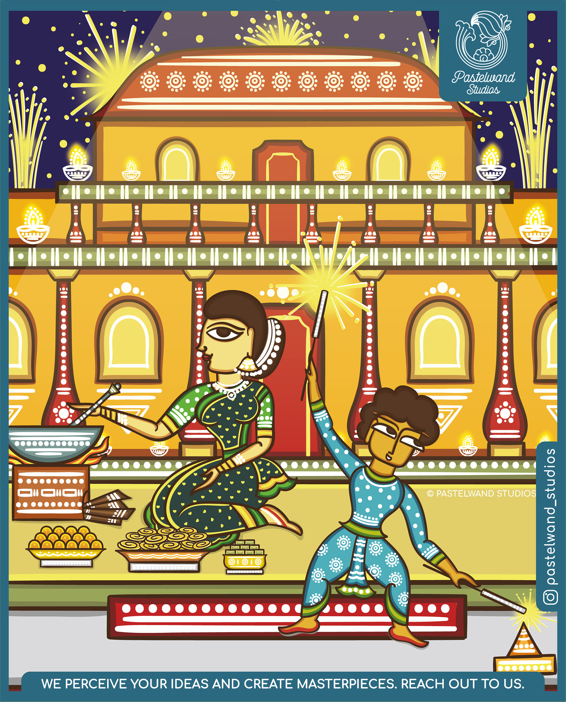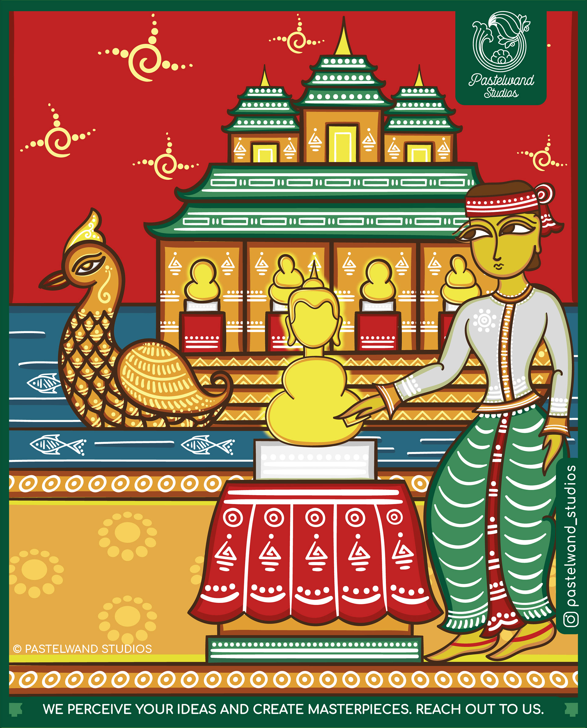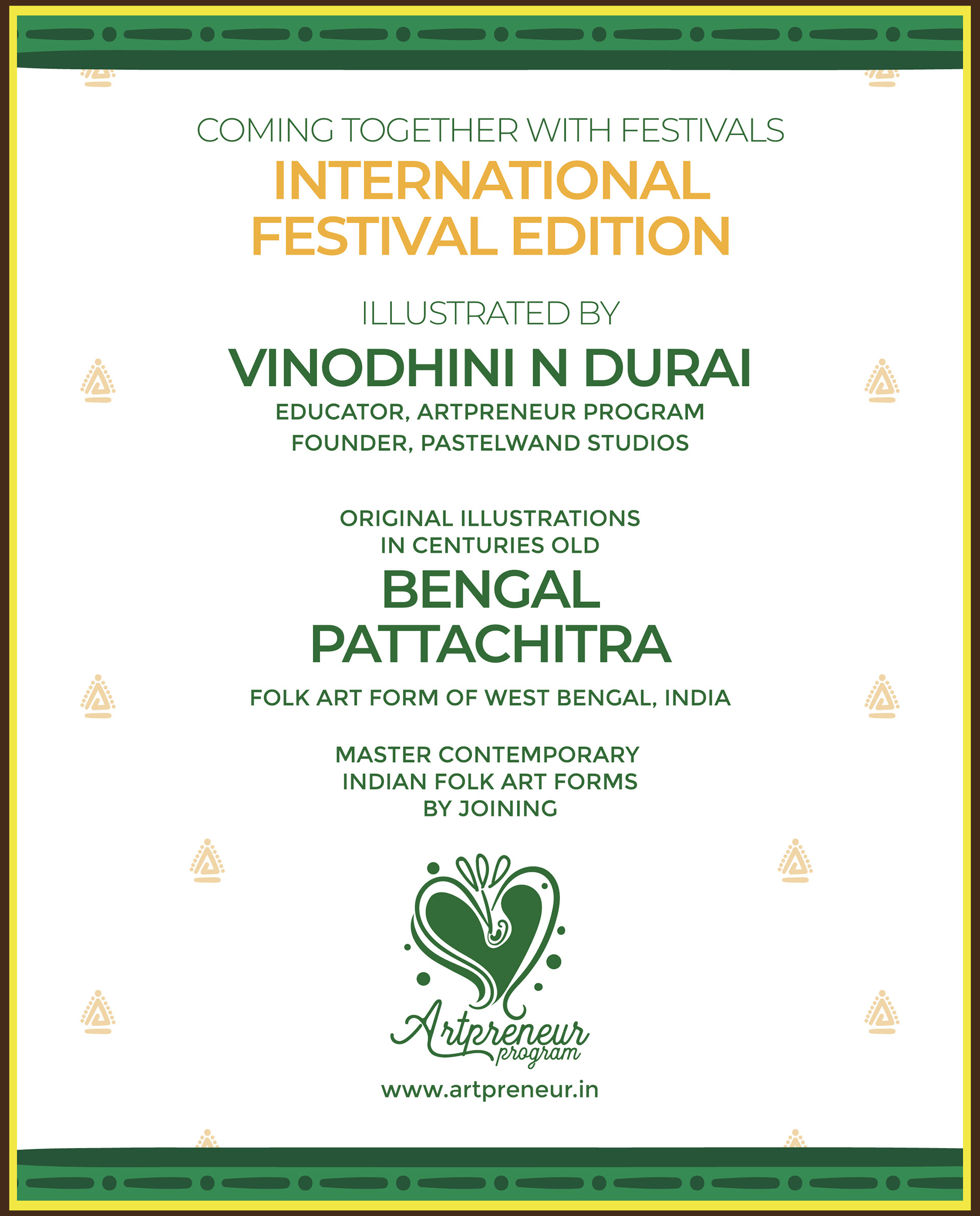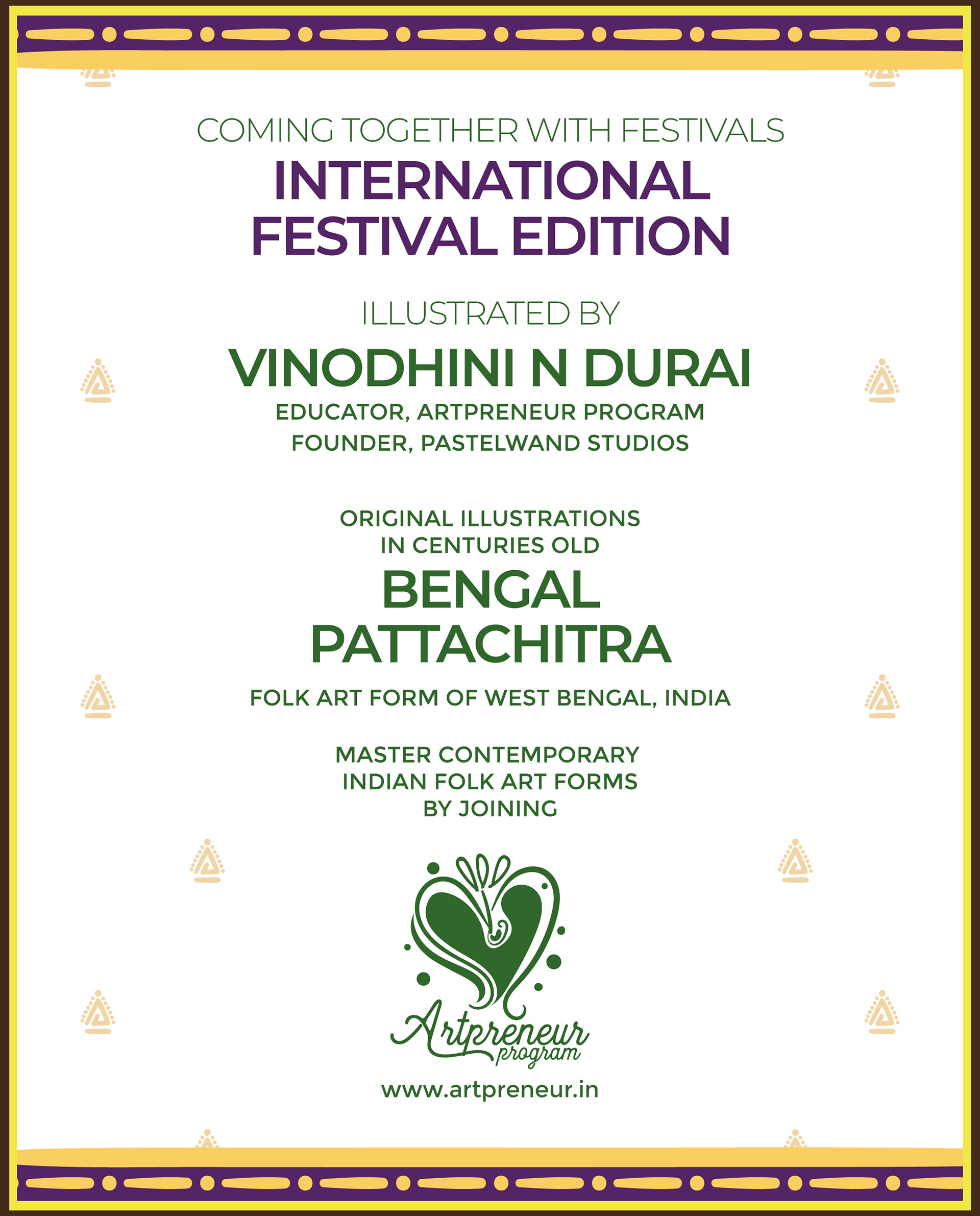 Original Illustrations inspired by Bengal Pattachitra, folk art form of West Bengal, India. In partnership with Artpreneur Program
