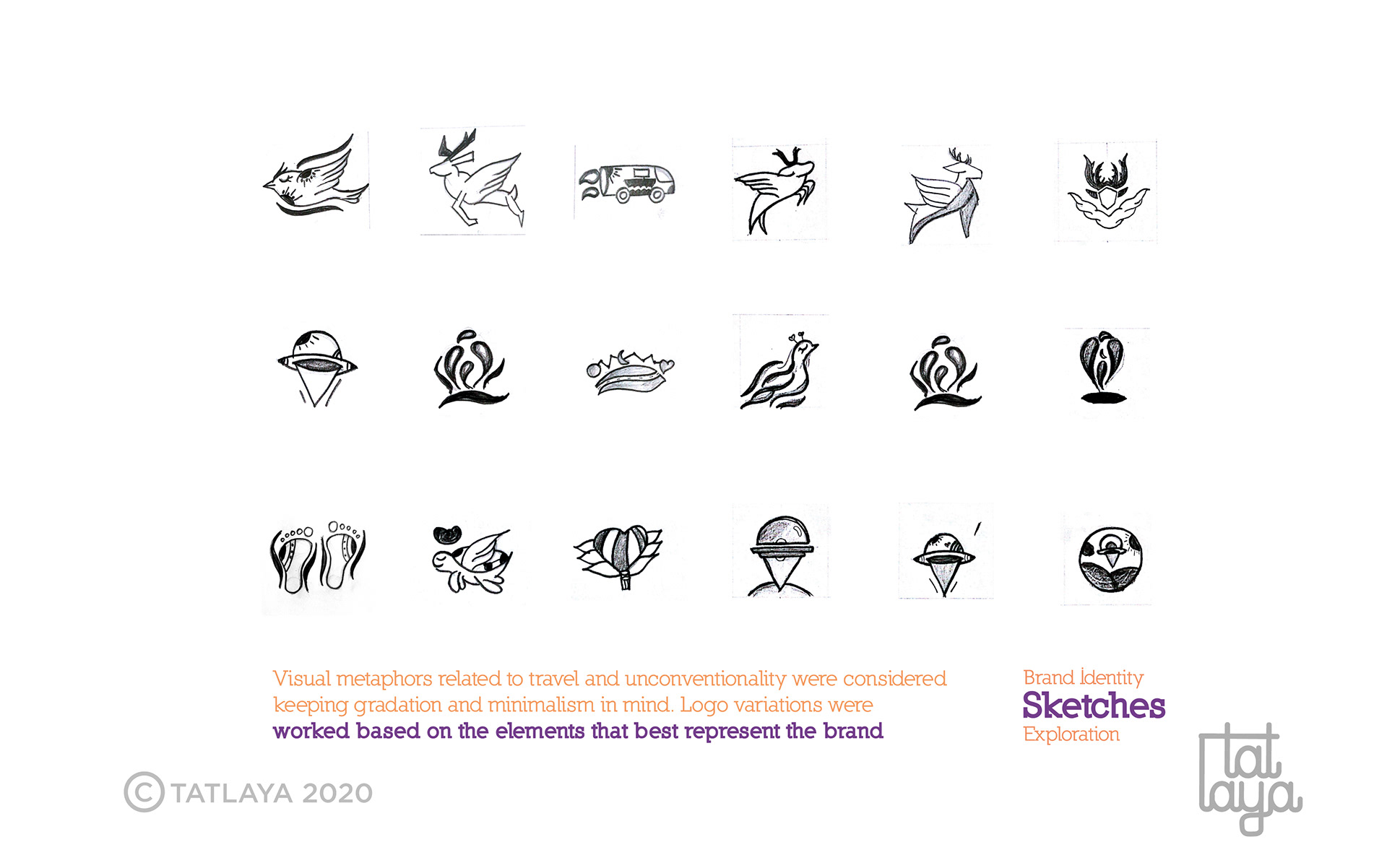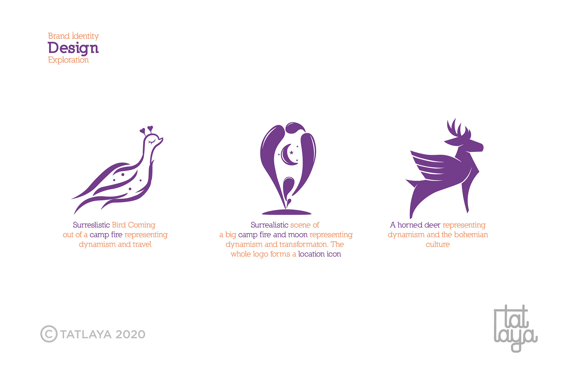 Bohemianism is a travel planner for Creative people. The name Bohemianism is inspired from the bohemian culture which represents Unconventional Lifestyle. Bohemians are wanderers, adventurers or vagabonds in artistic, literary and spiritual pursuits. We wanted to convey that every creative traveler is a bohemian and they live in a surrealistic world of bohemianism. The whole brand talks about surrealism, dynamism, travel and transformation. The whole challenge in the complete design was to bring in the whole span of surrealism in to logical space.Team Tatlaya went on with lot of extensive research during the whole span of the project.