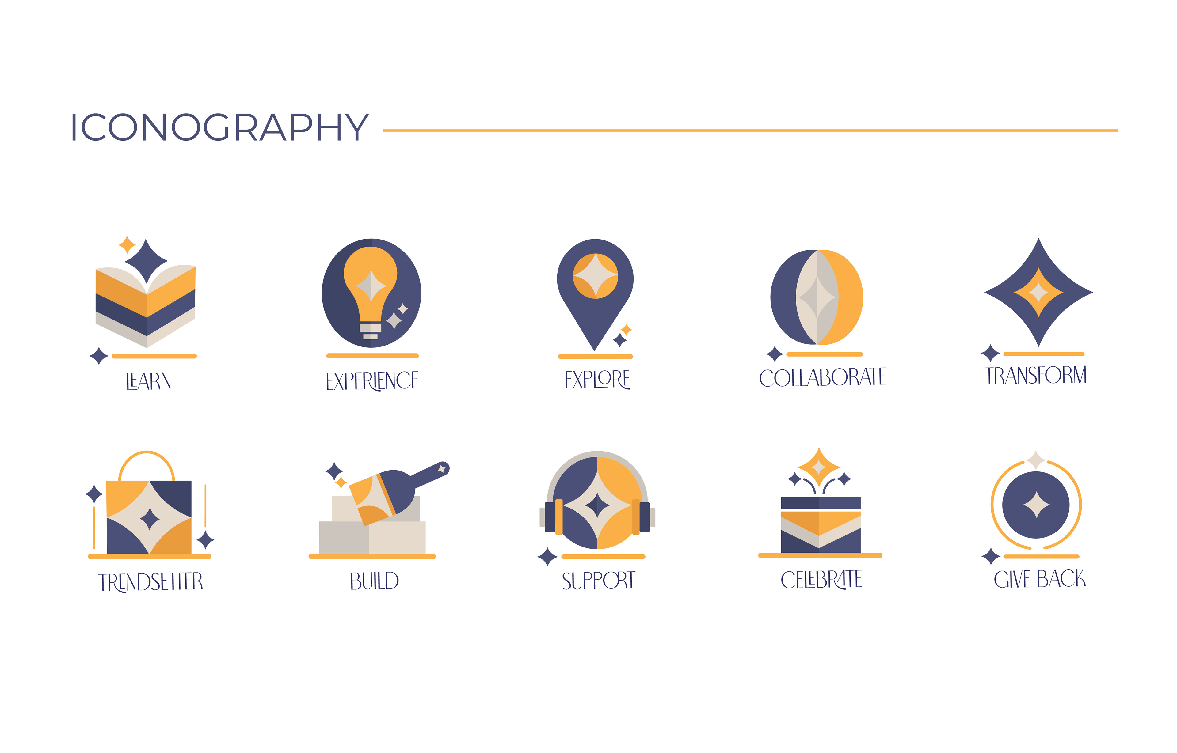 These were created to illustrate the 10 features that describe what the Brand stands for