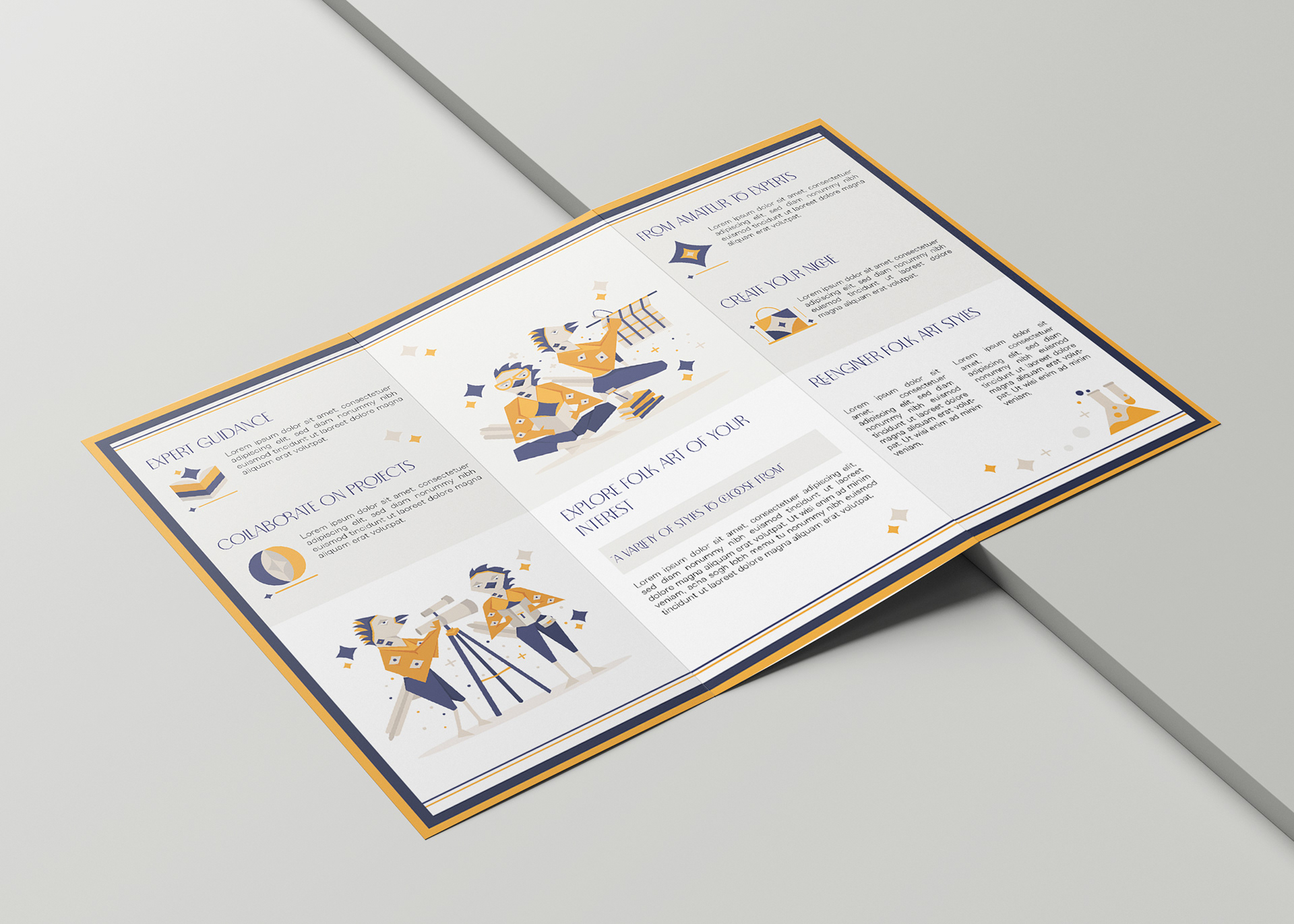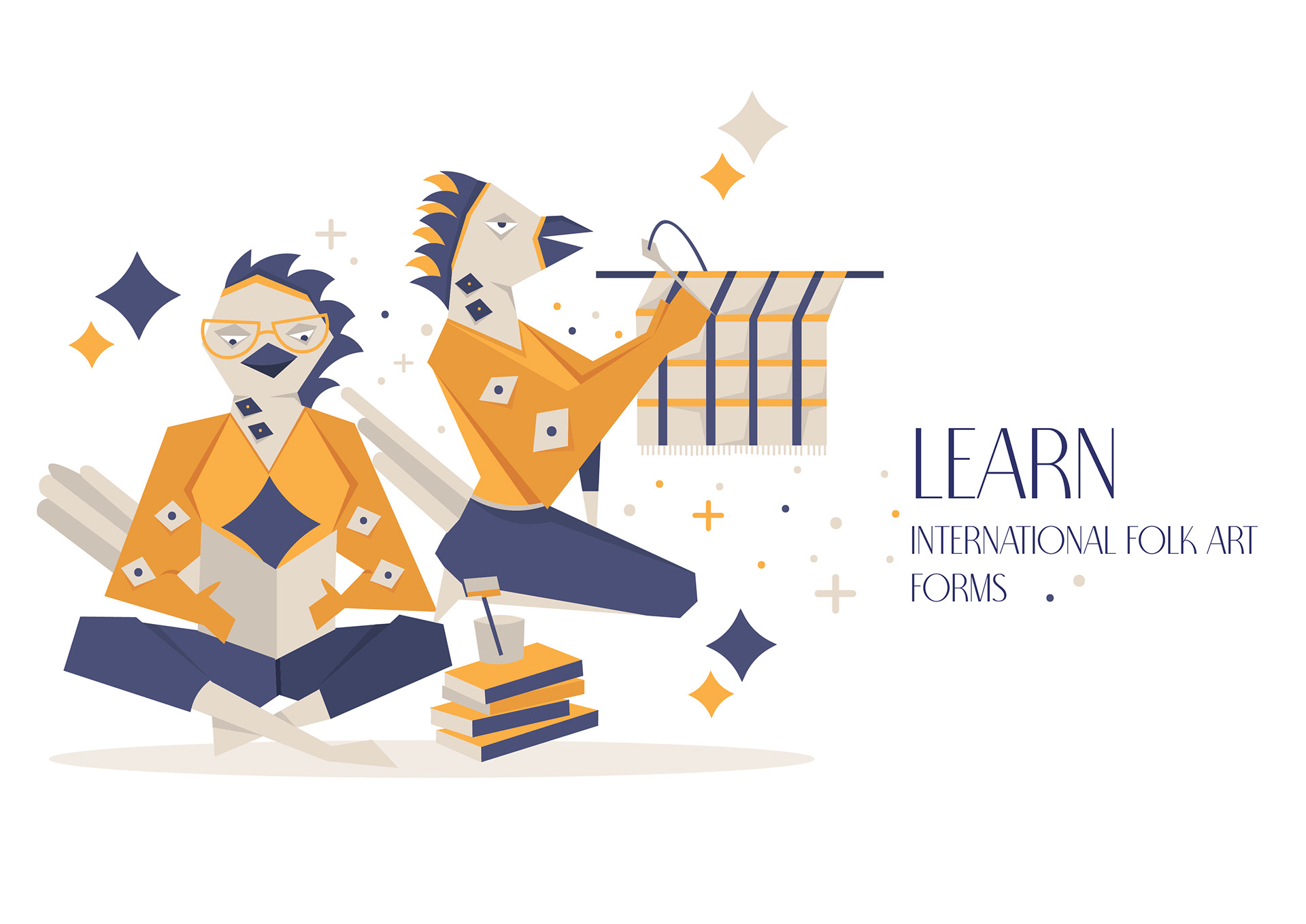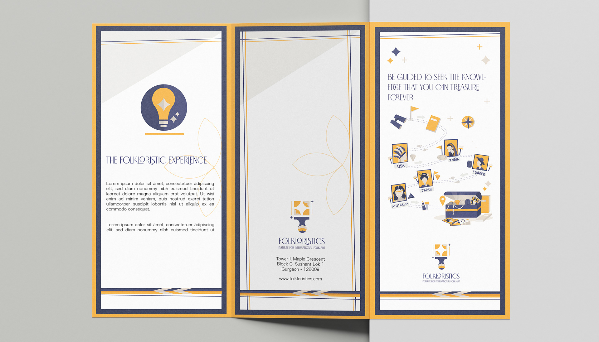 This Branding project was done for a virtual Art Institute that aims to impart folk art education from around the world under one roof. This project is a compilation of Logo design, Iconography, Illustration, Mascot and Business set design done for the Brand