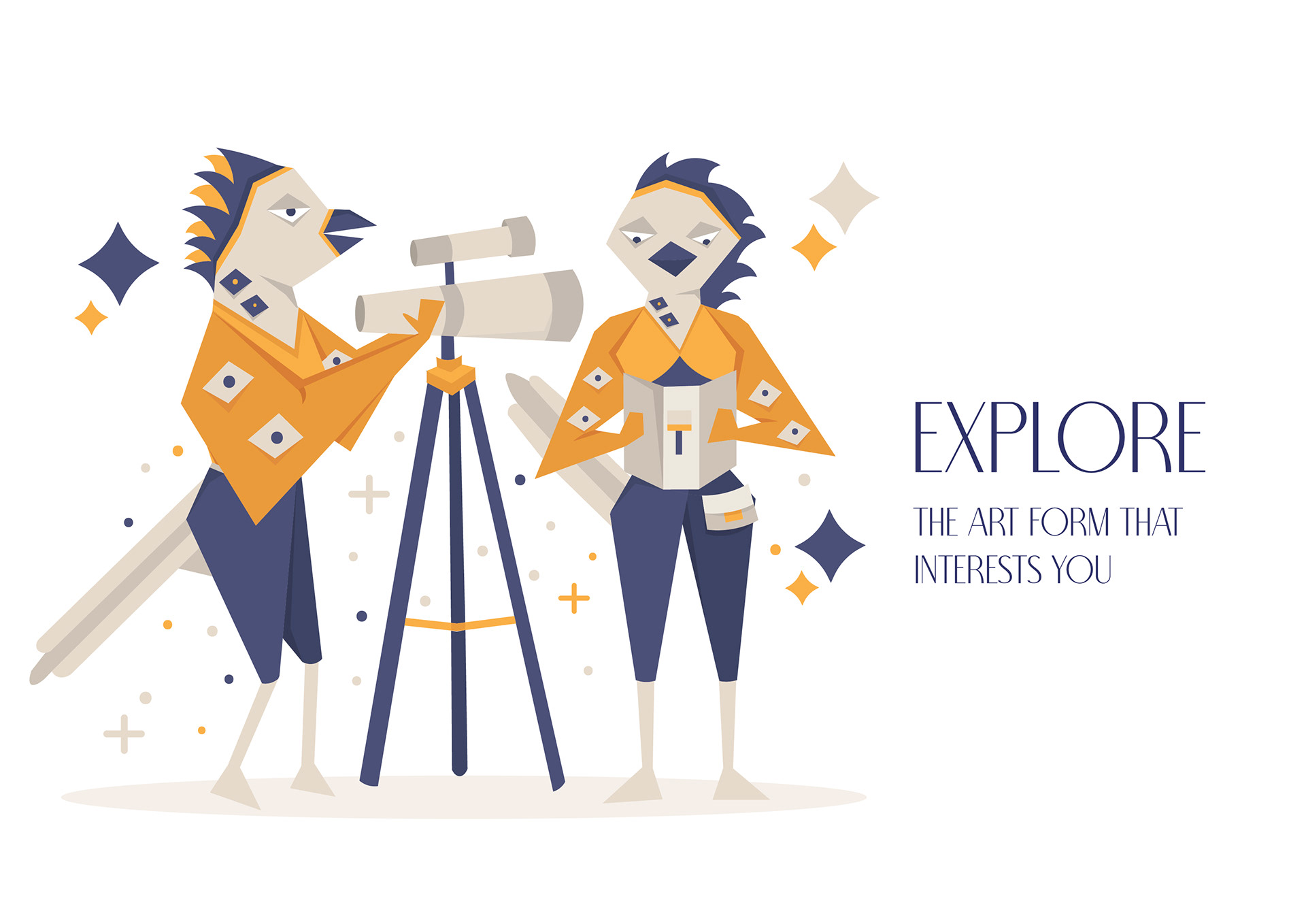 The Mascot chosen for the brand was a Bower Bird. They are known for their creative instinct for the way they build their nests to attract their mate. The Bird was designed to inspire creativity and model as a guide to provide students a sense of direction