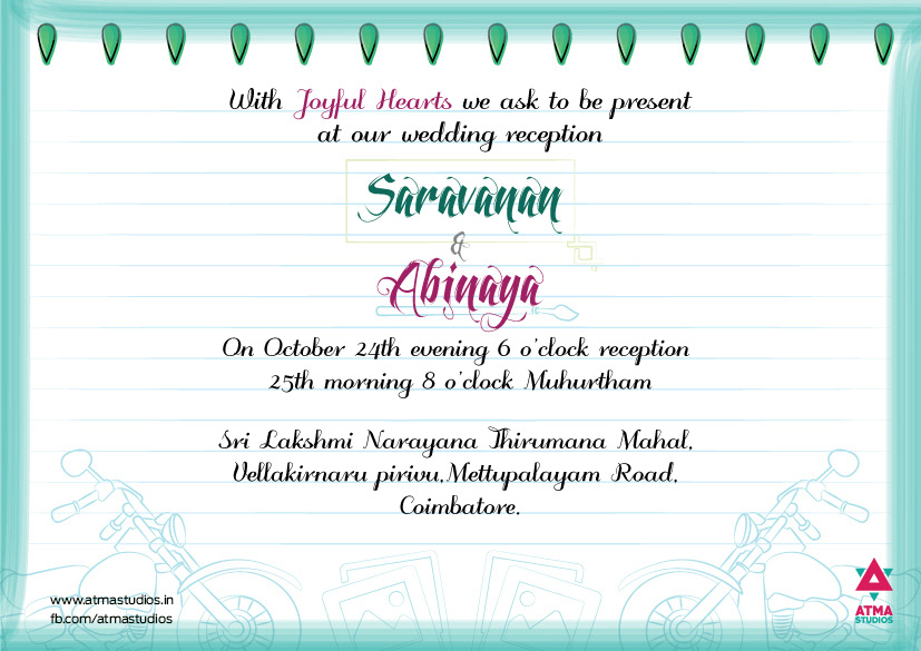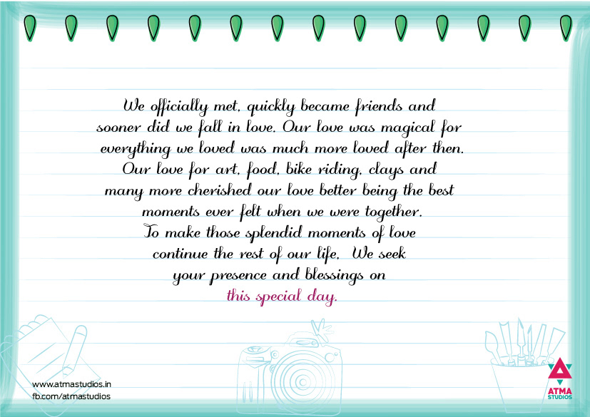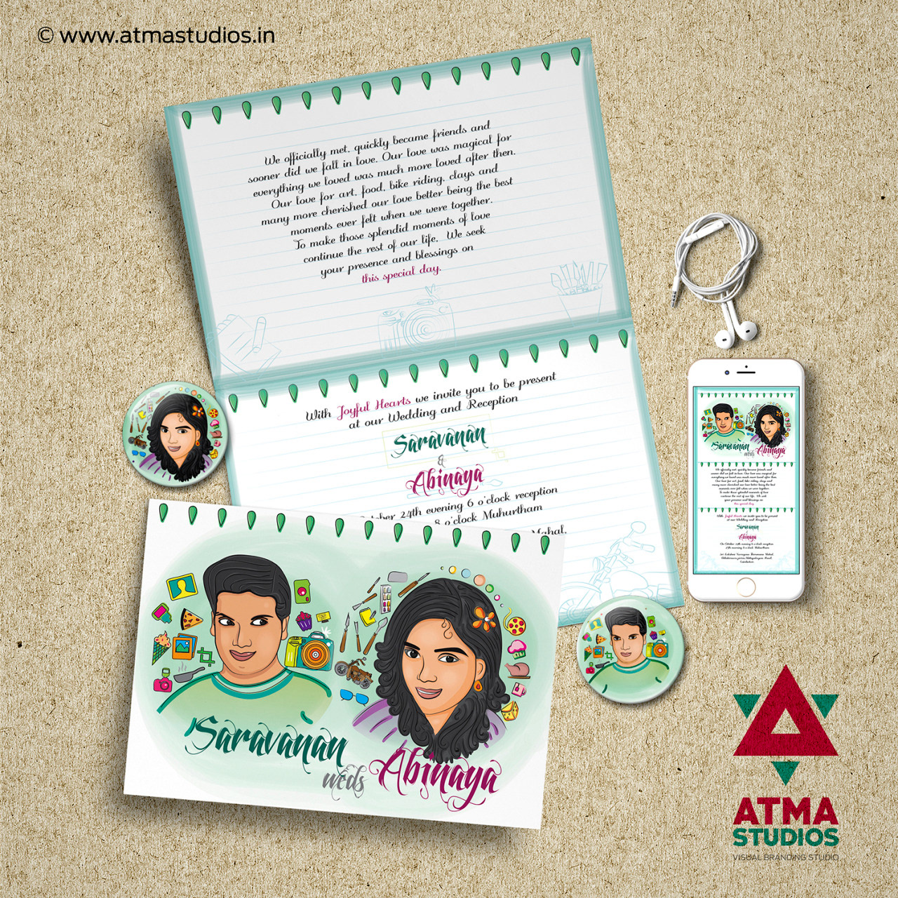 “ Introducing the Bride and the Groom in a wedding invite “ You saw it right? Yes. You and your fiance can be a part of your wedding invite. What’s more personalized than a Caricature Indian Wedding invite featuring the awesome duo - you and her. This unique wedding invite also focusses on your passions which are illustrated around your caricature. It’s an excellent way to introduce your most favorite person to your dear guests. This four page invite has a casual tone and it will strike the right chords with people of all ages. It also comes as an E-Invite which will make your friends go “wow”. This invite will be a treasured possession not just for you but also for your family. On a side note, you might even receive wedding gifts that match your passions. Go ahead and choose this invite card to invite your loved ones in person through an invite.