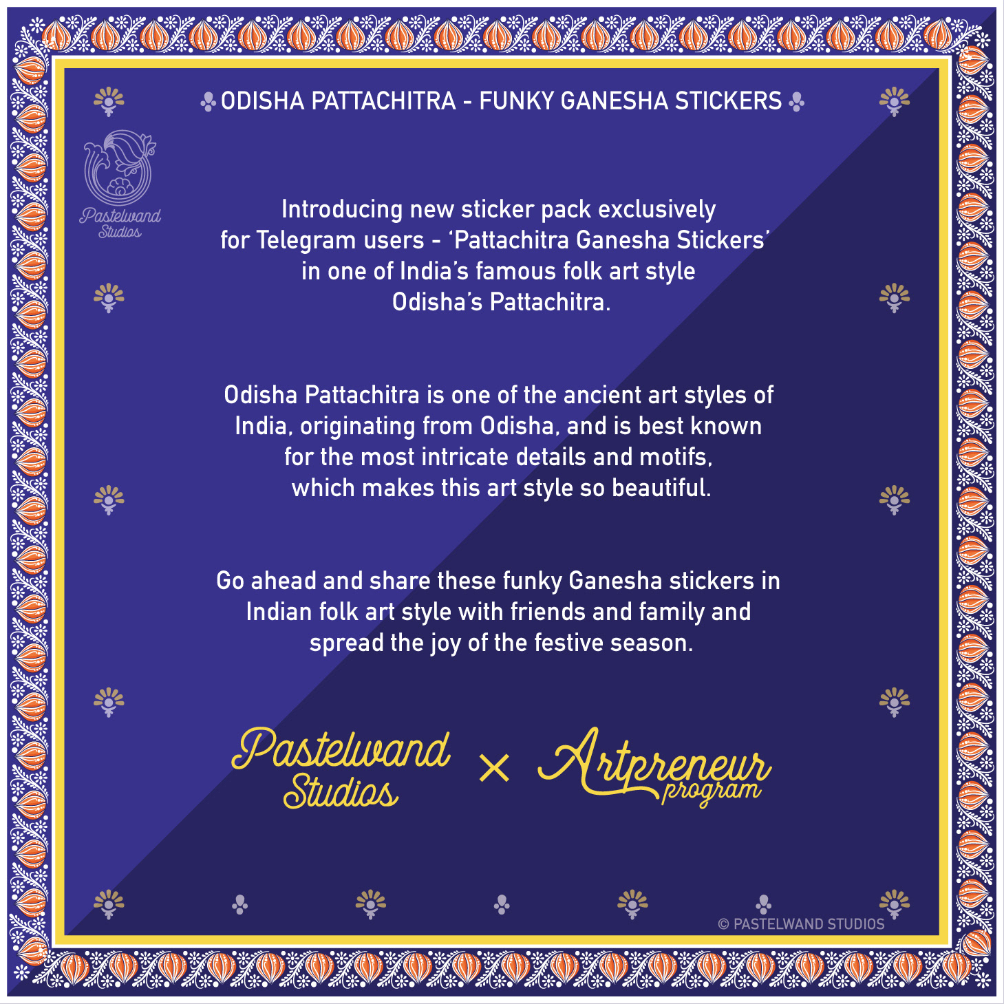 Happy to introduce the new sticker pack exclusively for Telegram users - ‘Pattachitra Ganesha Stickers’ in one of India’s famous folk art style Odisha’s Pattachitra.