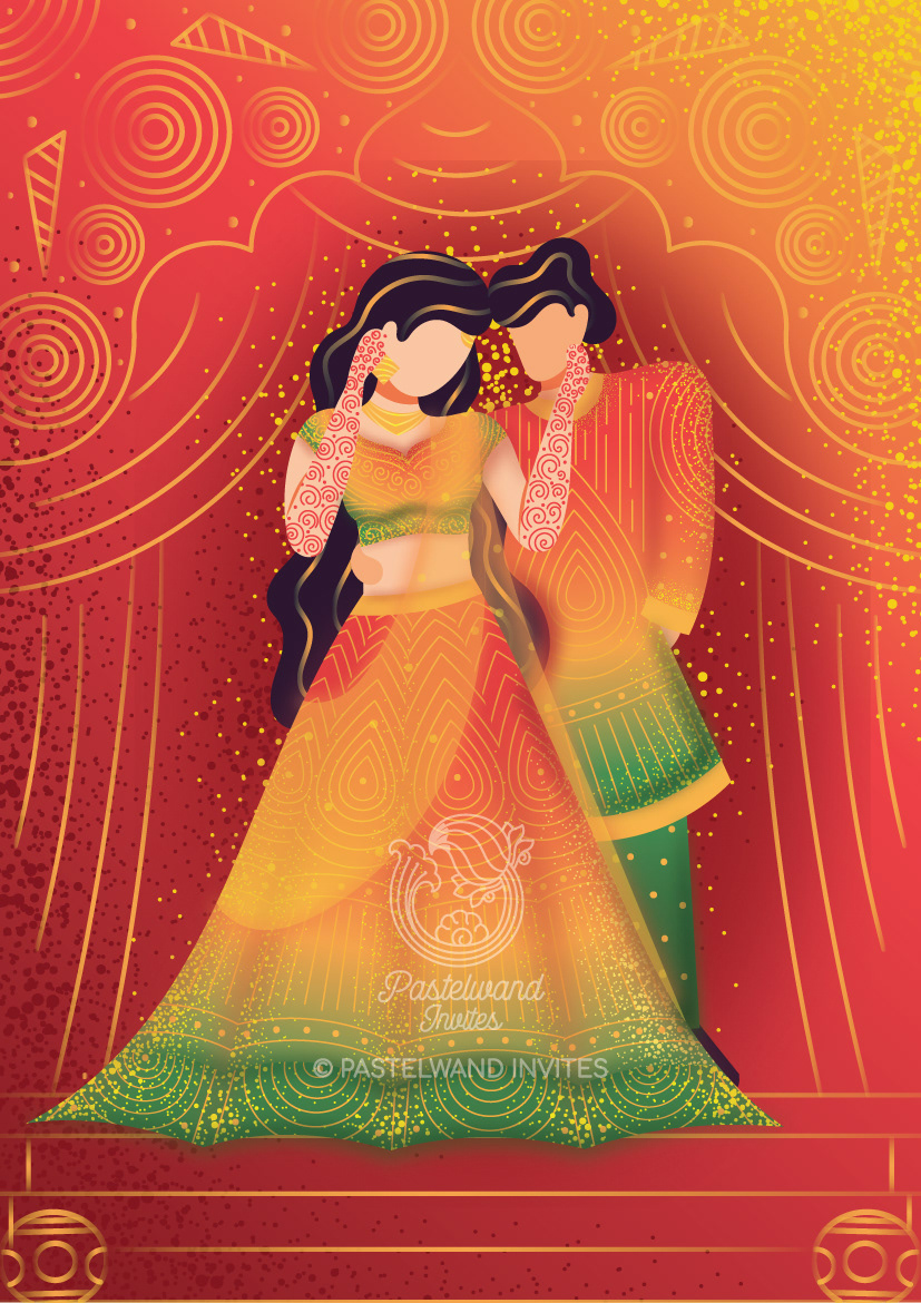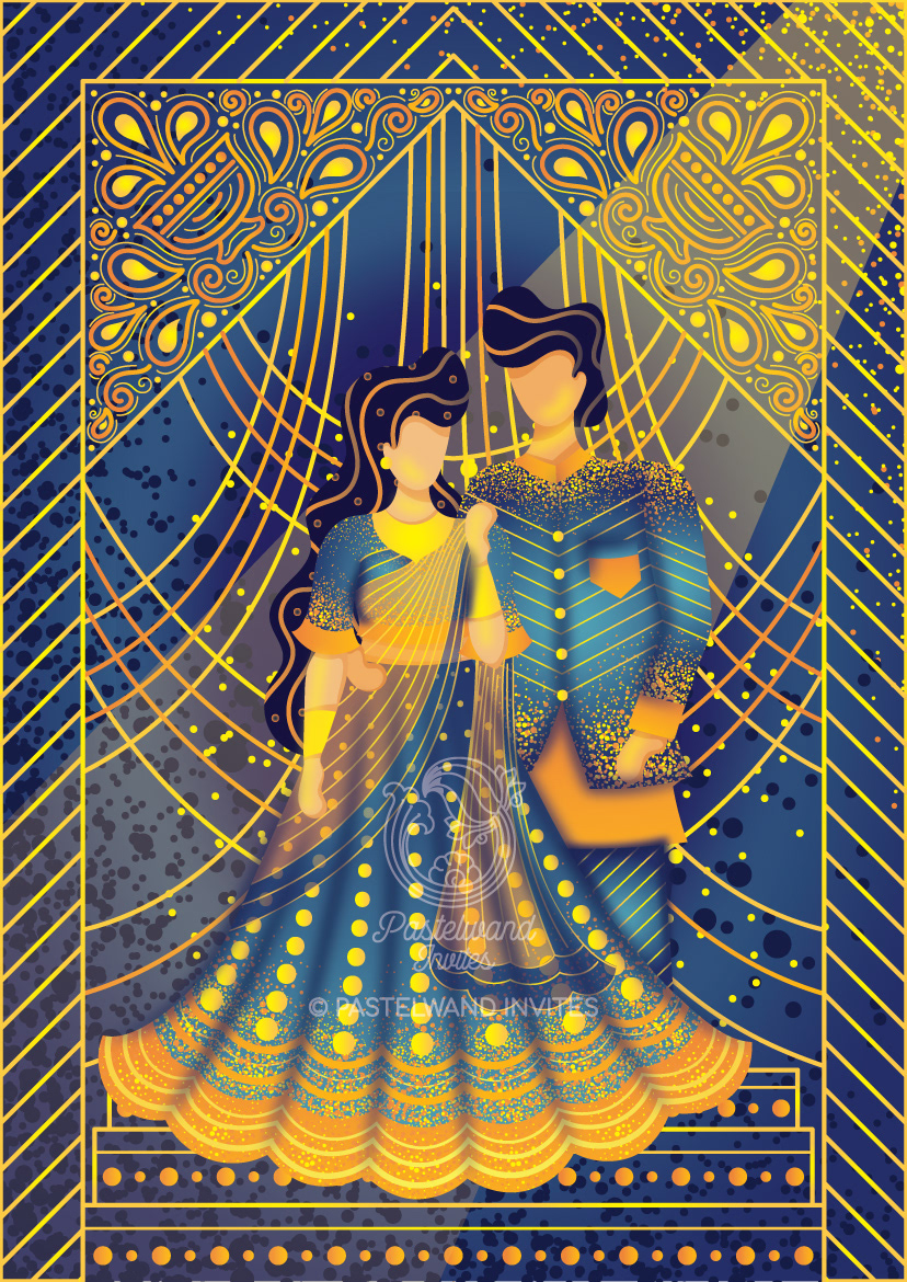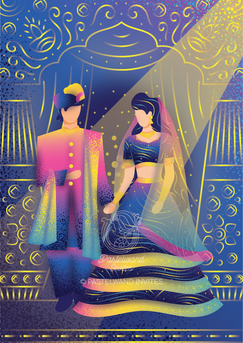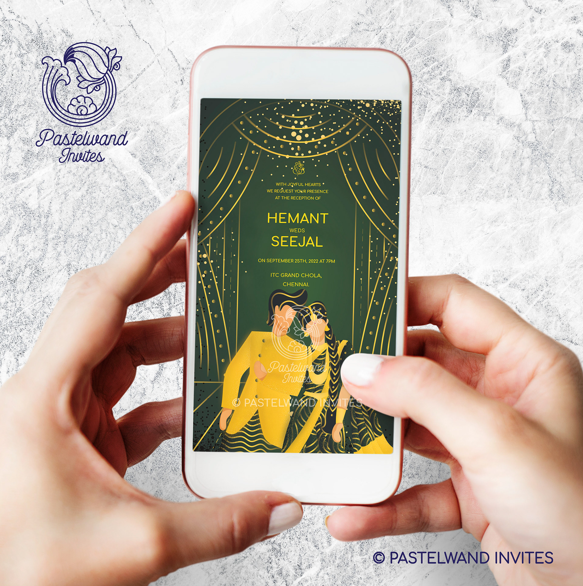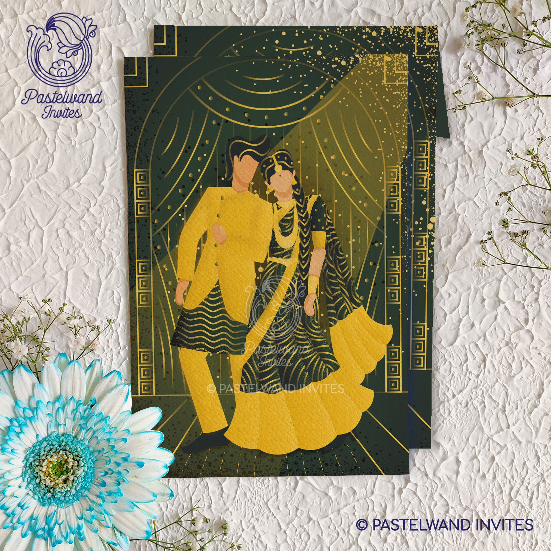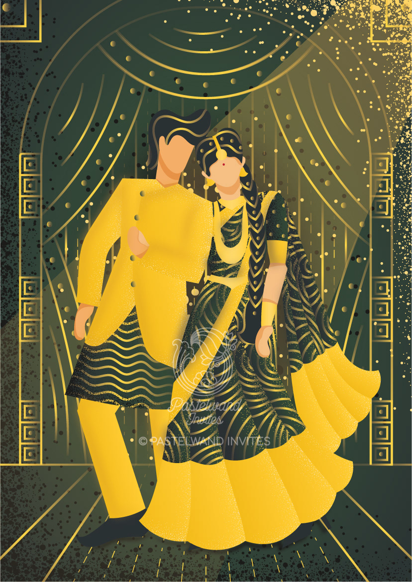 Our Classy Art Deco Wedding Invite Suite includes invites for the main wedding, along with other events such as Engagement, Haldi, Mehendi, Sangeet and the Reception!