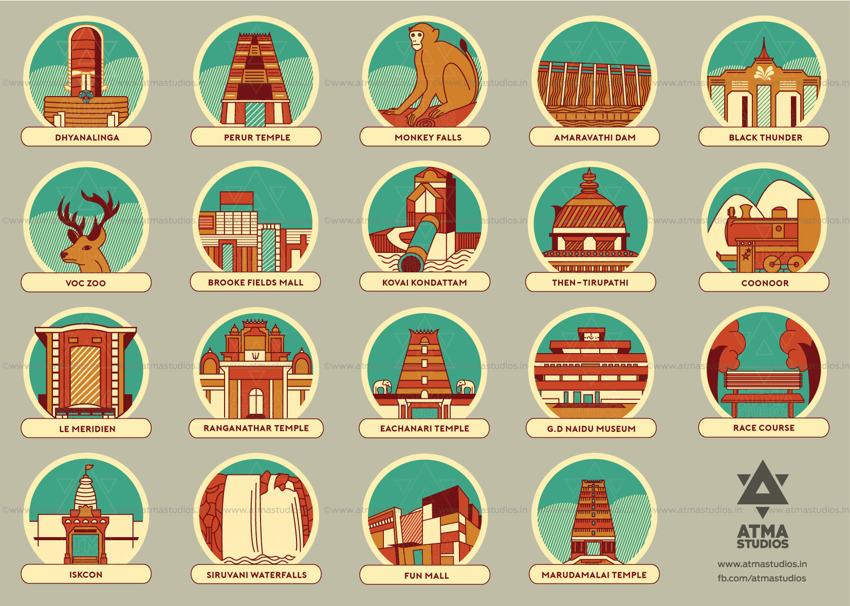 Coimbatore Tourist Places Icon Design by Atma Studios.