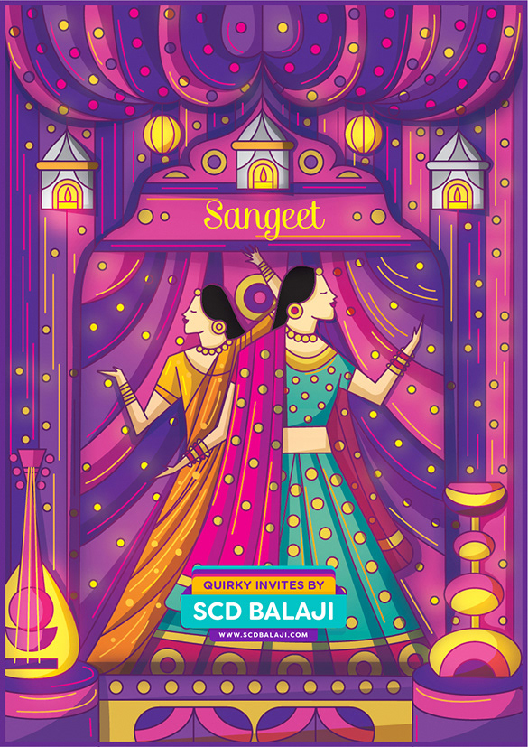 Sangeet Invitation Illustration (Back Side of the Card) Option 2