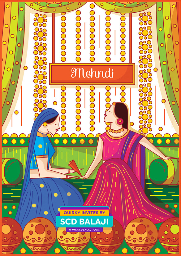 Mehendi Invitation Illustration (Back Side of the Card) Option 2