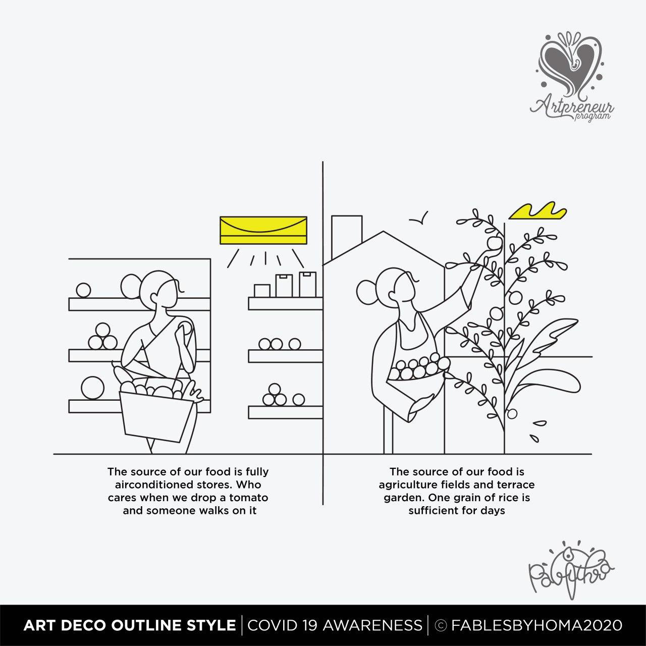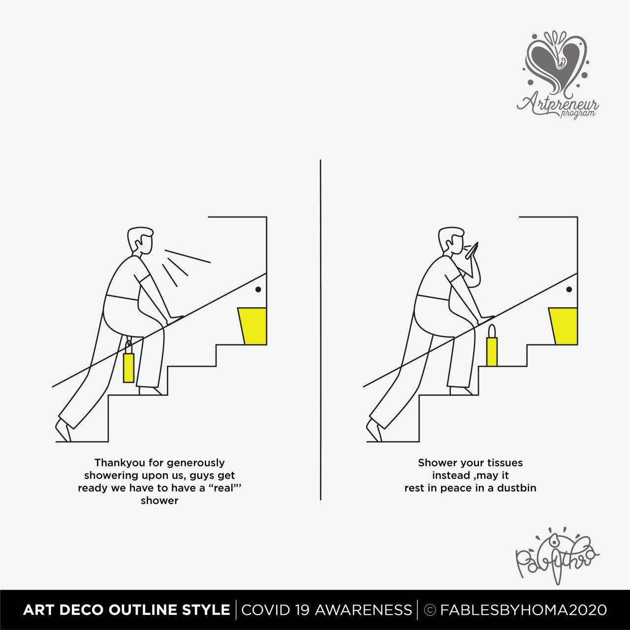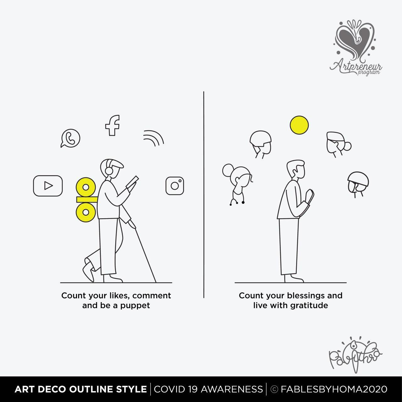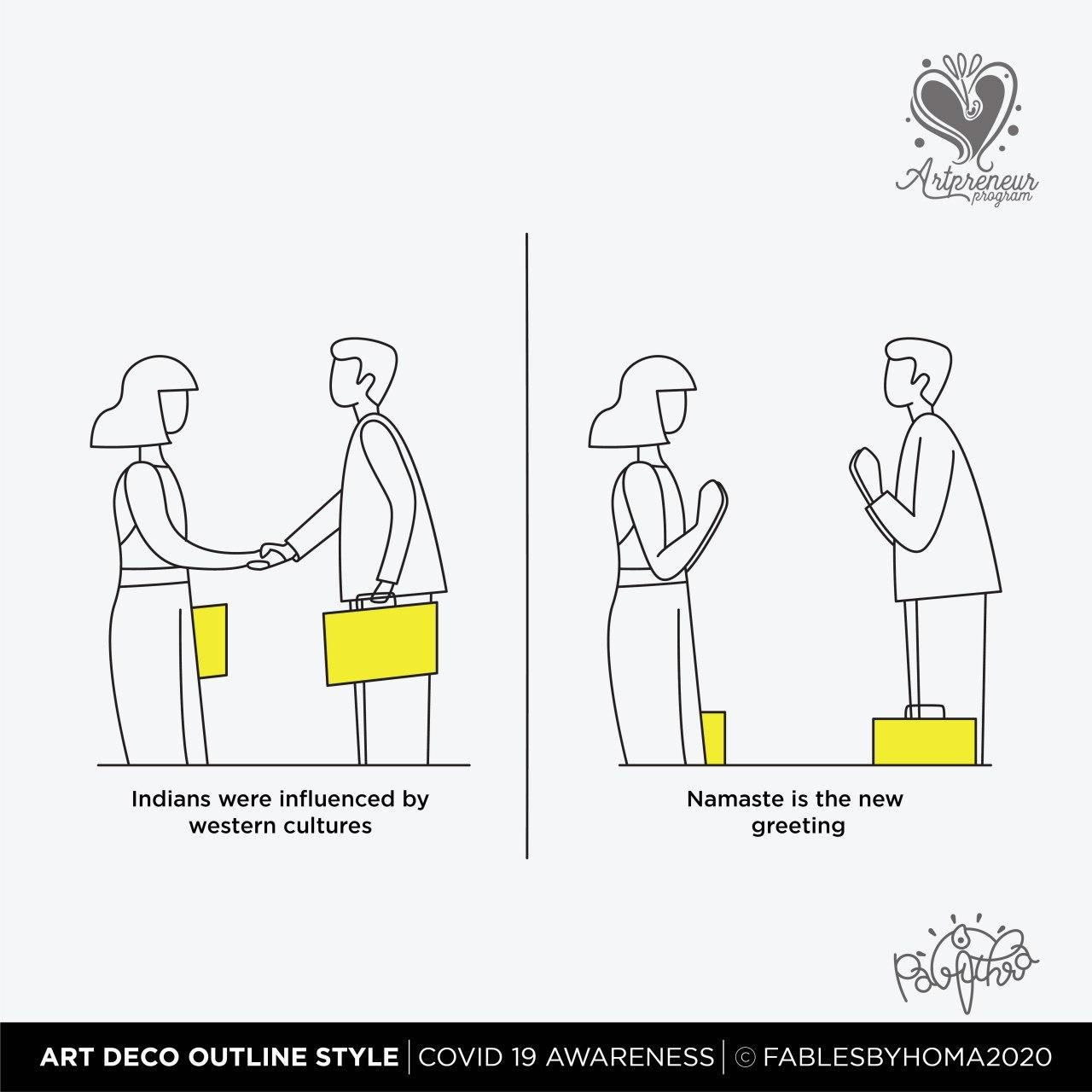 COVID 19 Awareness Illustrations in Art Deco Outline Illustration Style by Pavithra | Explore and learn new Art styles with Artpreneur Program - Interactive Live Online Program! Artpreneurs are learning and experimenting with a new style of illustrations called "Art Deco - Outline. Here is the output of just 2 hours of a hands-on session held by our educator SCD Balaji on Art deco Outline illustrations.