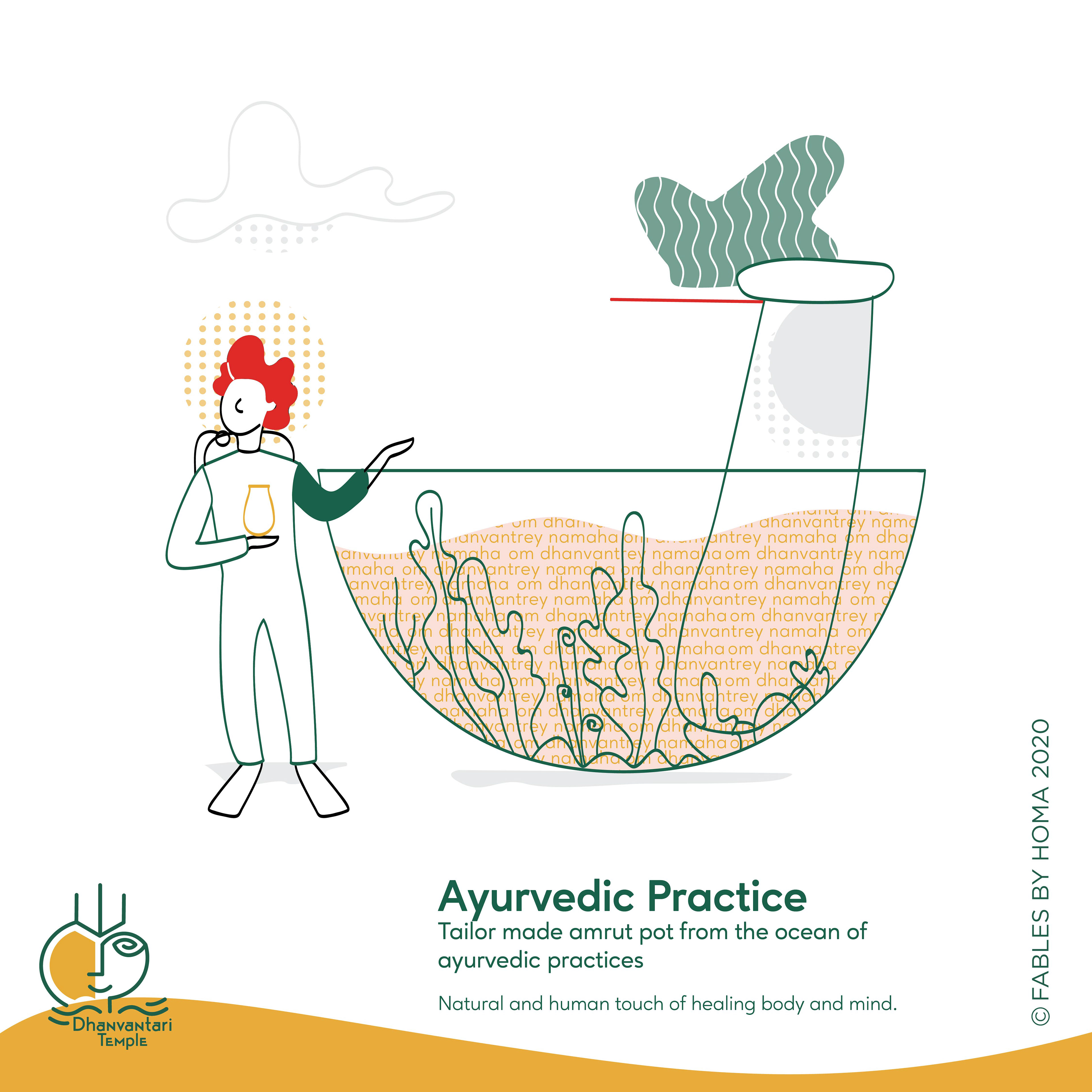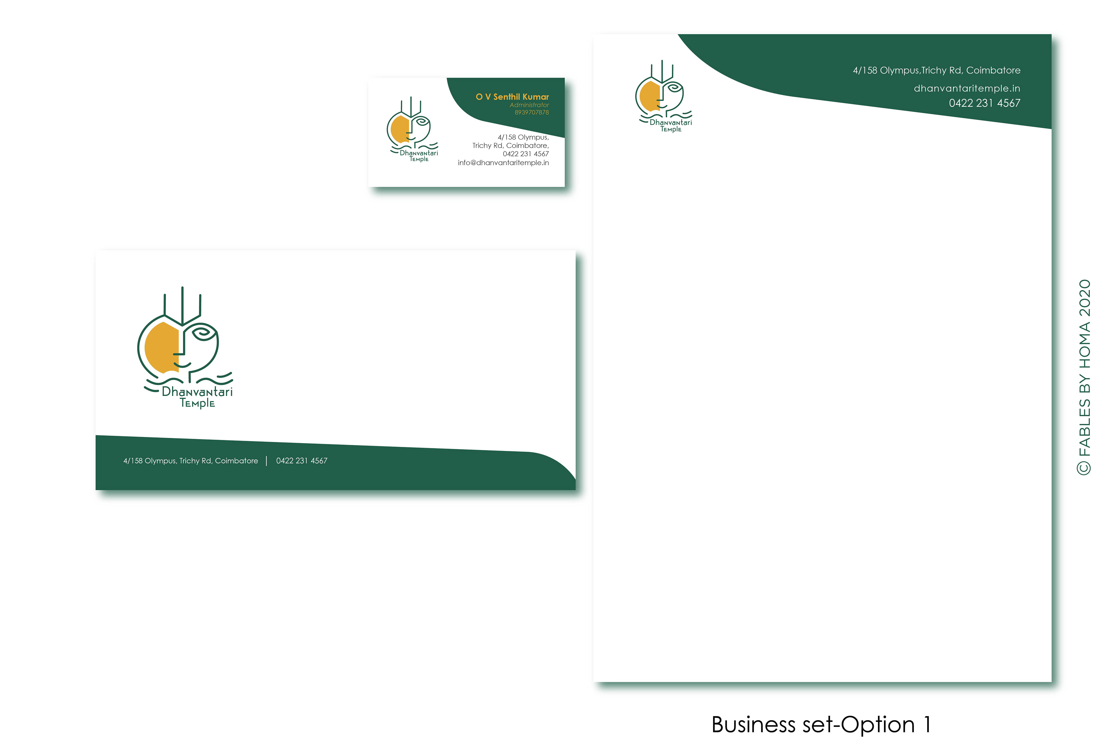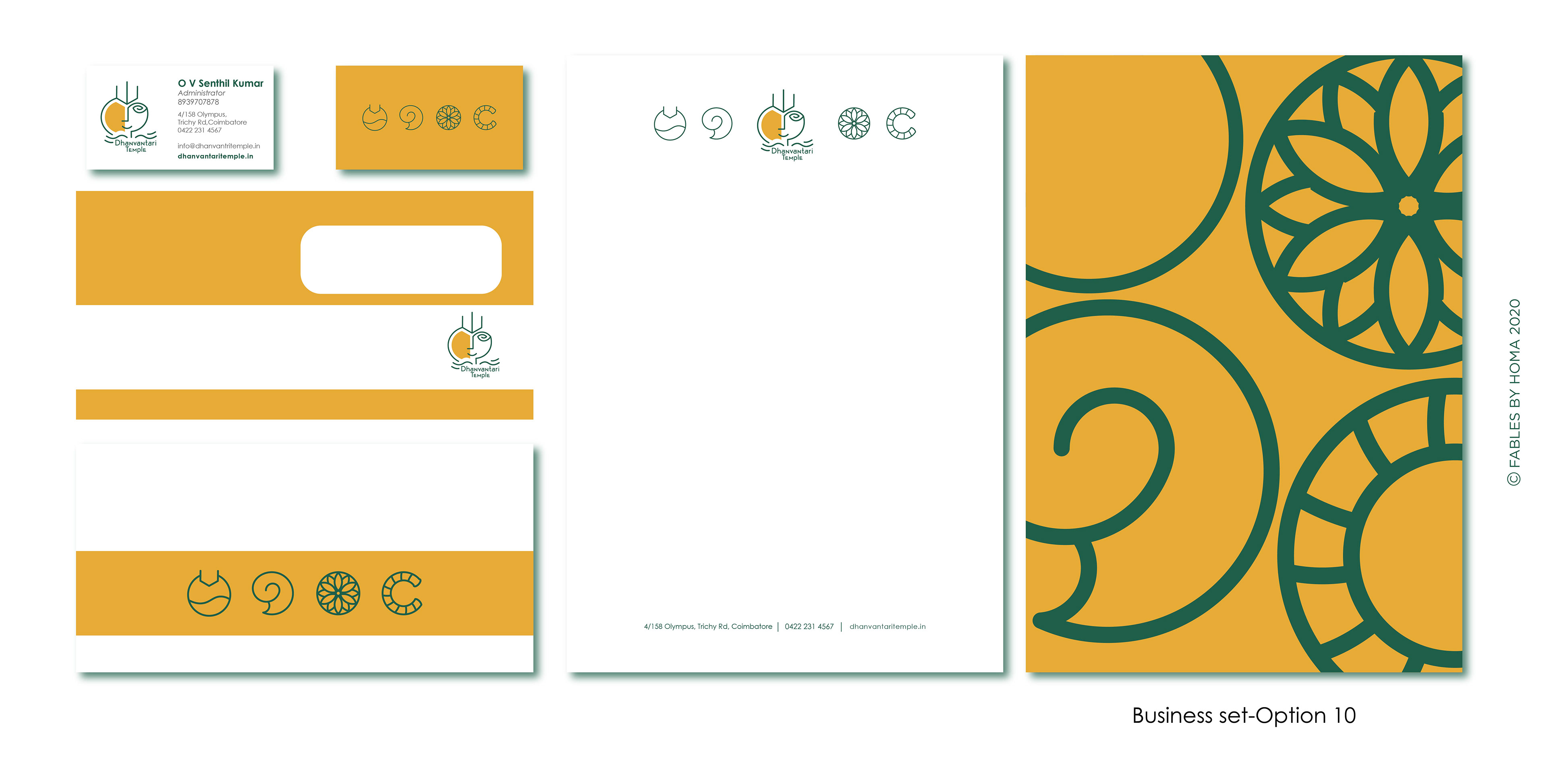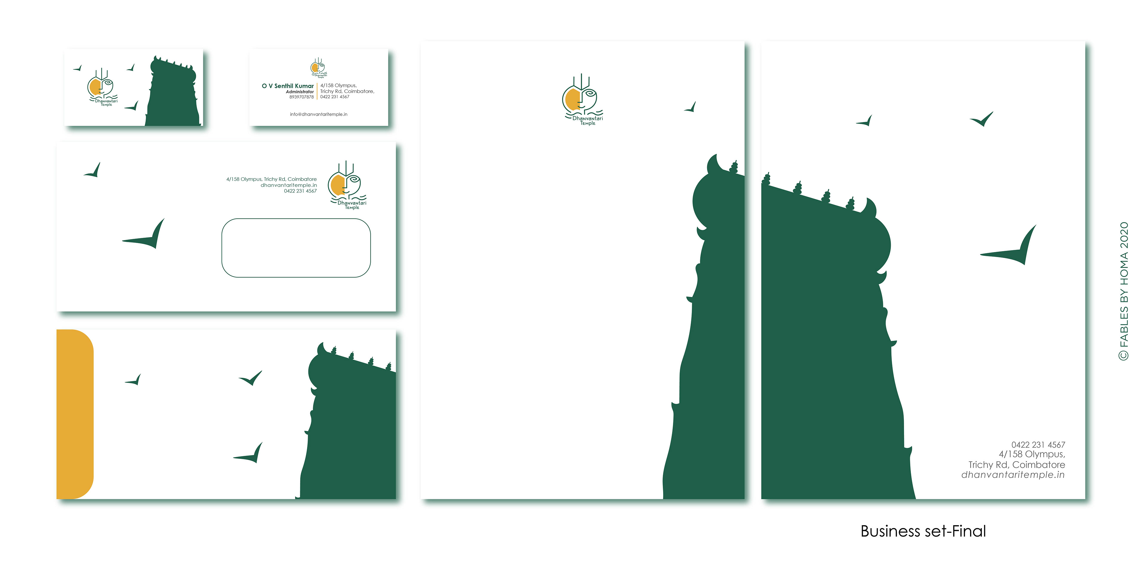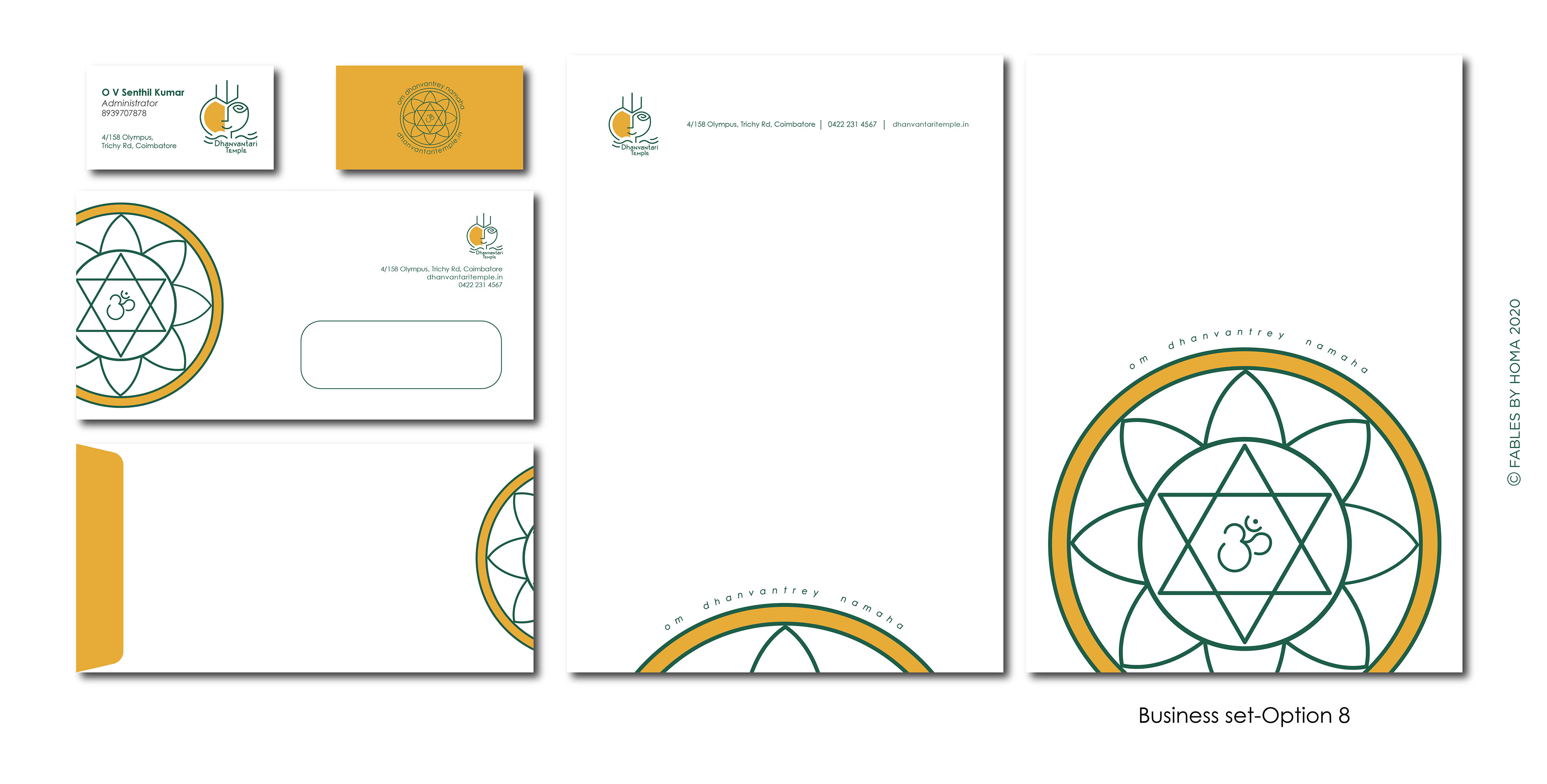 Dhanvantari Temple is all about Dhanvantari, he is a Hindu god of medicine, god of ayurveda (life science)as mentioned in puranas. He during Samudramanthan arose from the ocean of milk with nectar of immortality.He is an avatar of Lord Vishnu. We thoroughly enjoyed the process of bringing a corporate feeling in a Temple branding. Branding of Dhanvantari Temple is one of its kind involving Logo, Brand elements, Business sets, a Brand deck ( benefits offered by the Dhanvantari Temple) and Brand illustrations.