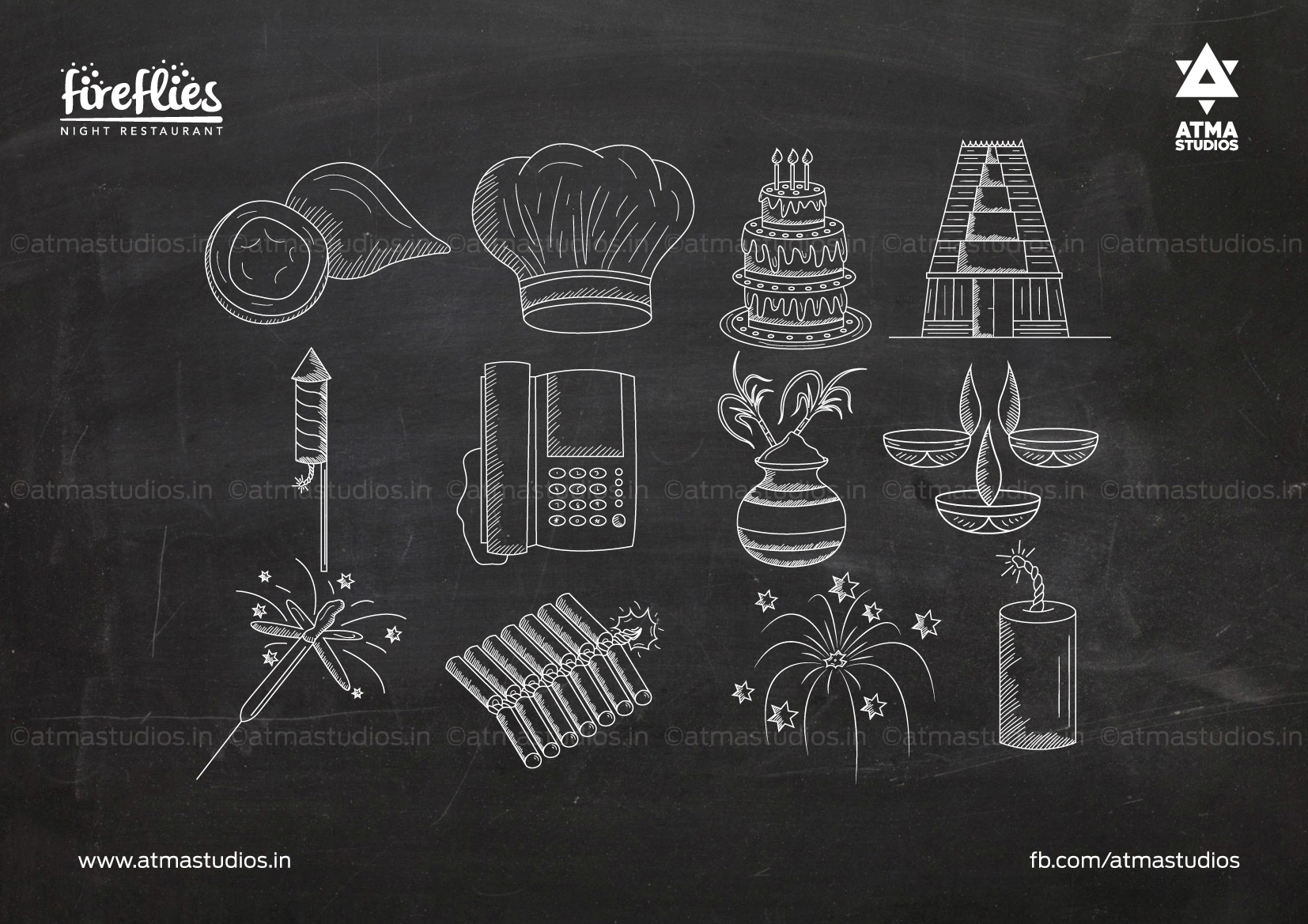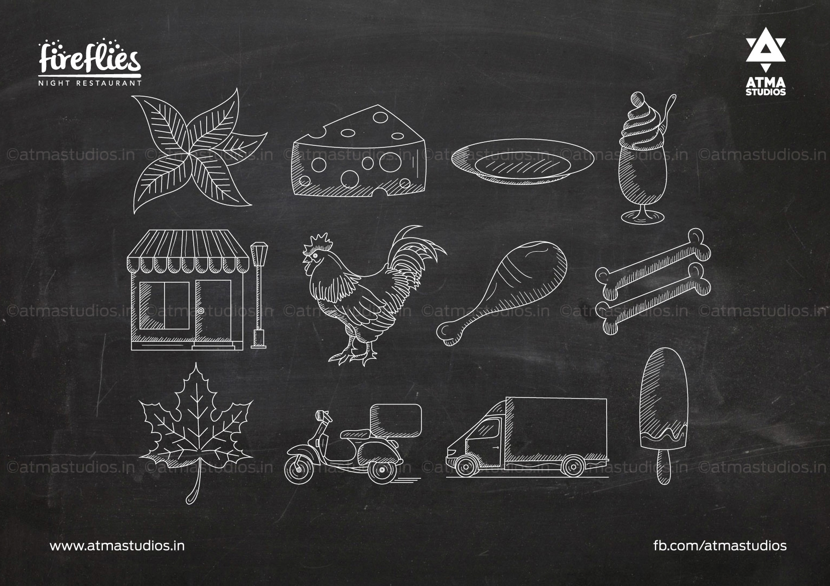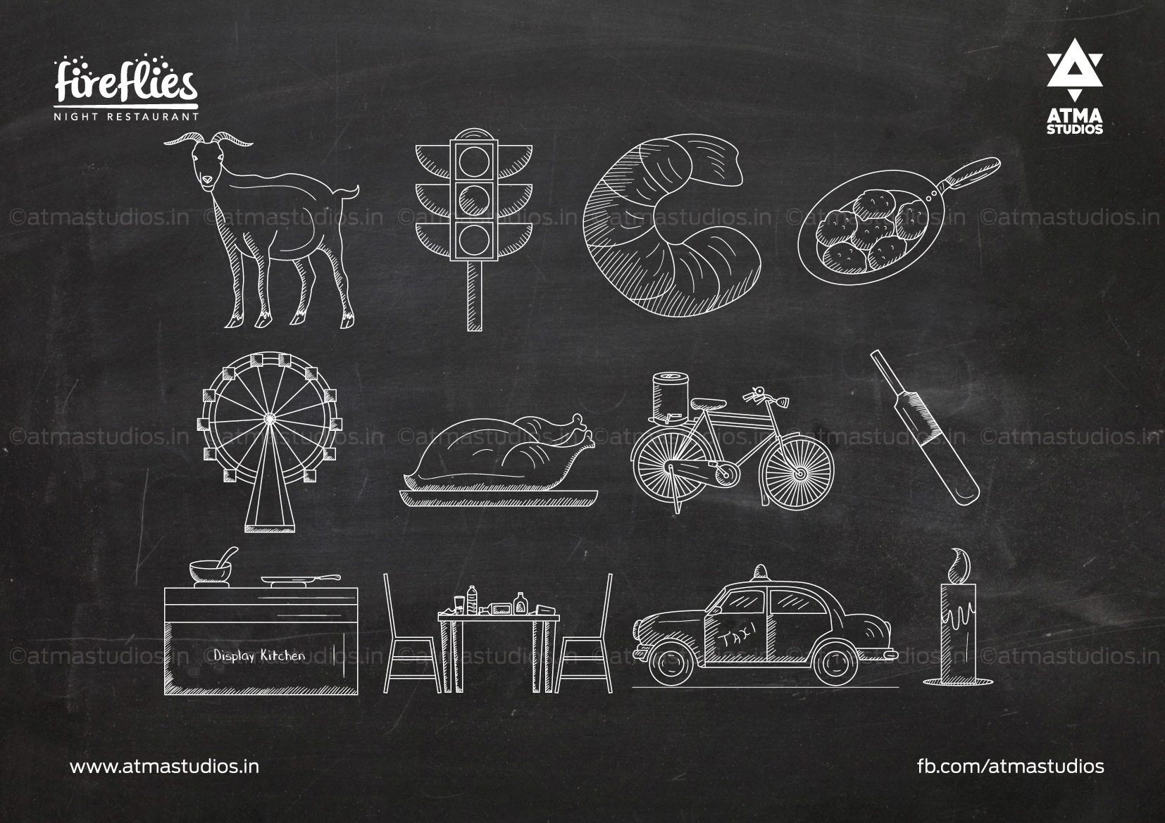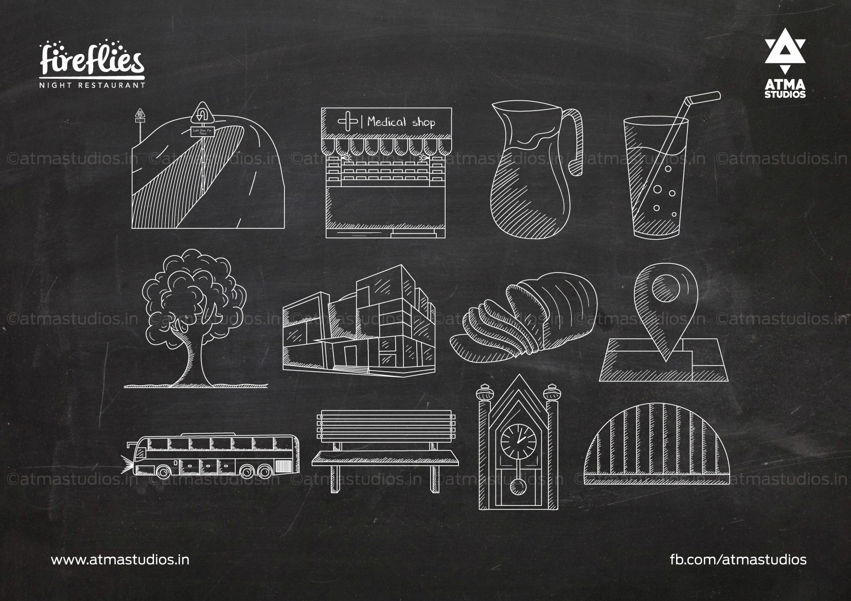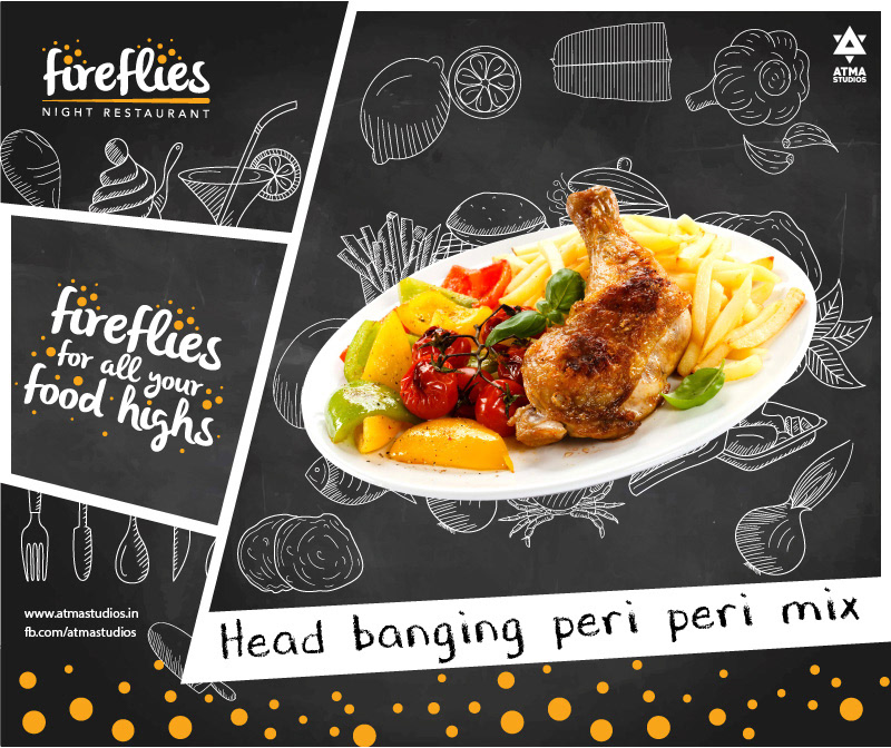 Brand Name As the name Fireflies goes with light in the dark, so as we light your life at night. It is a new way introduction to the Night life, first time ever in Coimbatore. Brand Colors Black color indicates darkness, when actually the business starts. Yellow indicates new fresh ideas like the blooming of Night Restaurant, first of its kind in Coimbatore. White specifies the purity in service. Brand Element The bubbles moving upwards show the rising of new efforts to heights and also indicate that such businesses that help people at night are yet to come.