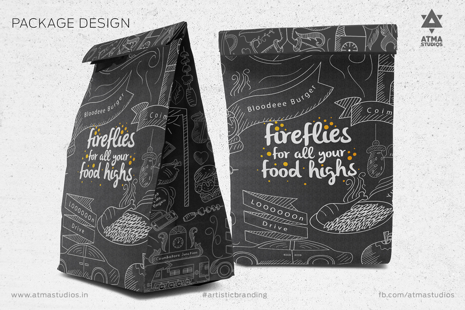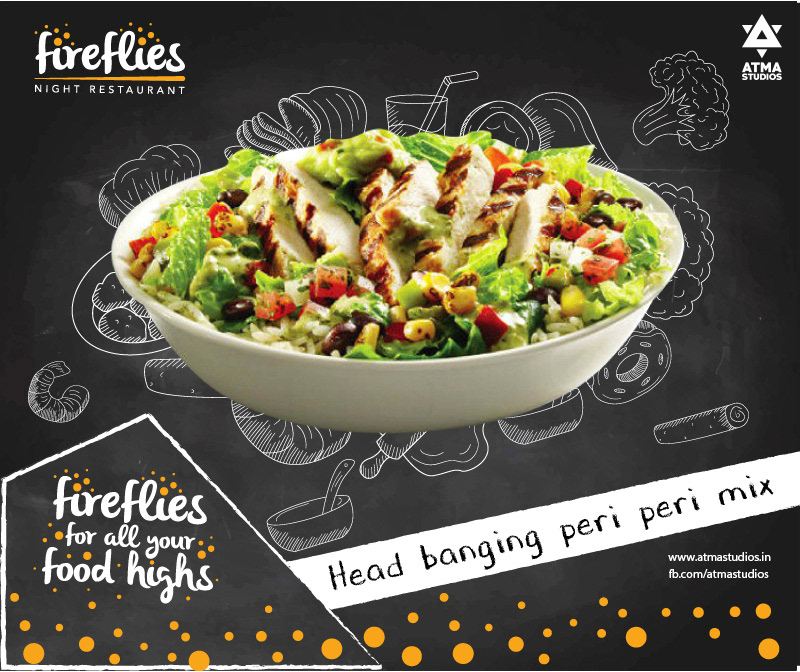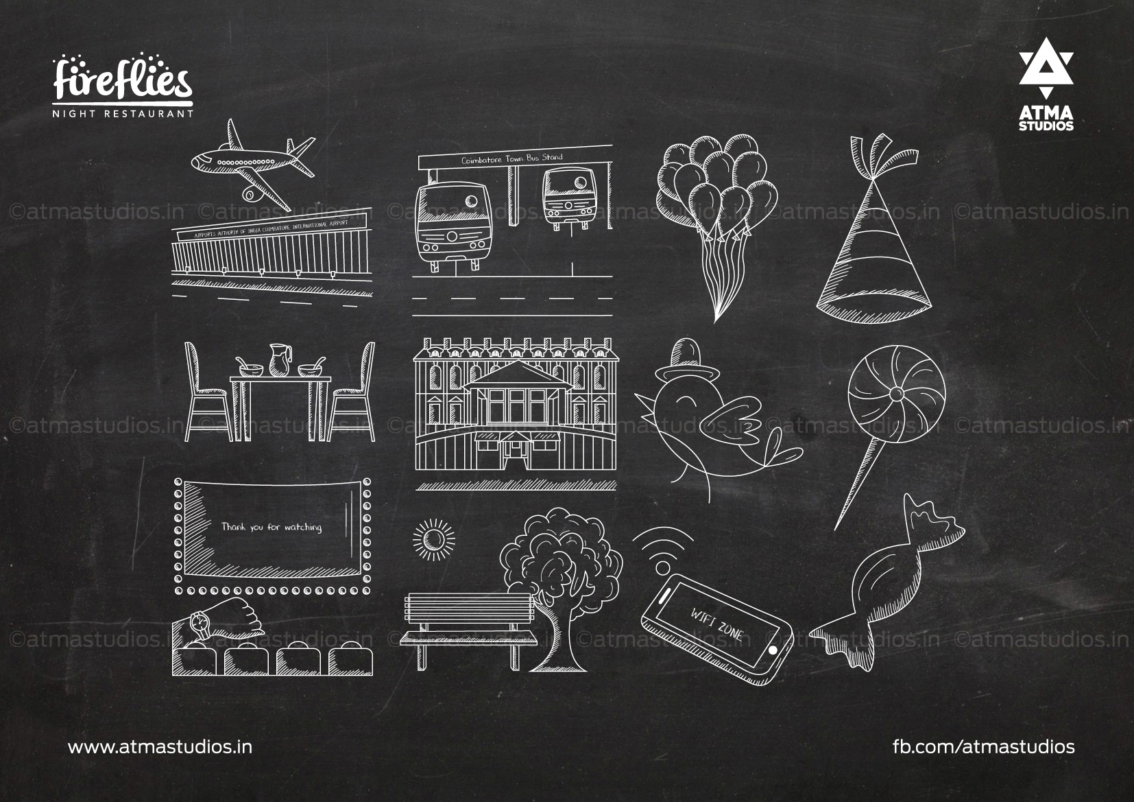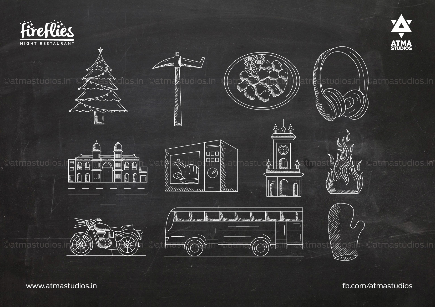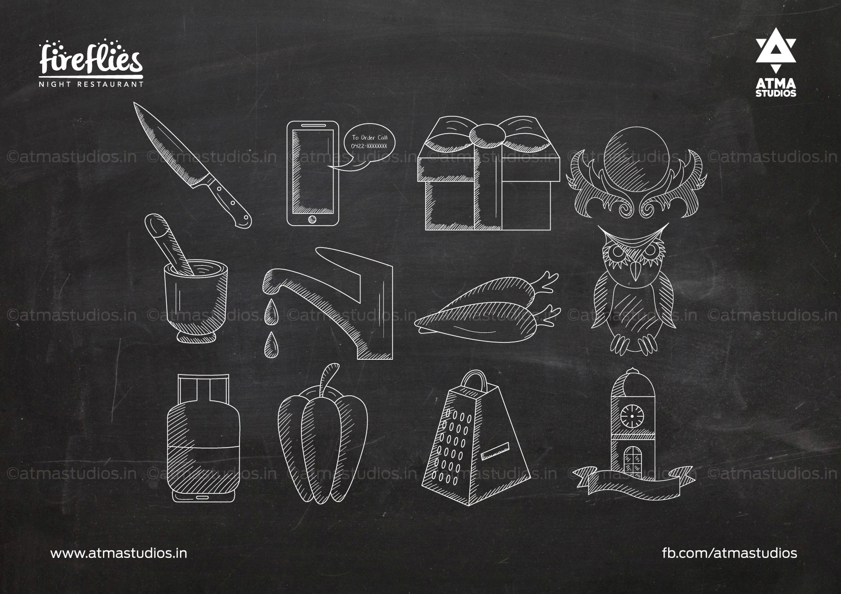 Brand Name As the name Fireflies goes with light in the dark, so as we light your life at night. It is a new way introduction to the Night life, first time ever in Coimbatore. Brand Colors Black color indicates darkness, when actually the business starts. Yellow indicates new fresh ideas like the blooming of Night Restaurant, first of its kind in Coimbatore. White specifies the purity in service. Brand Element The bubbles moving upwards show the rising of new efforts to heights and also indicate that such businesses that help people at night are yet to come.
