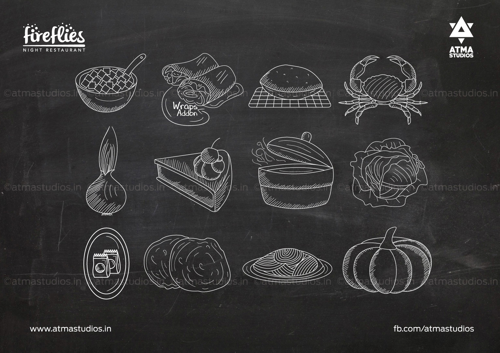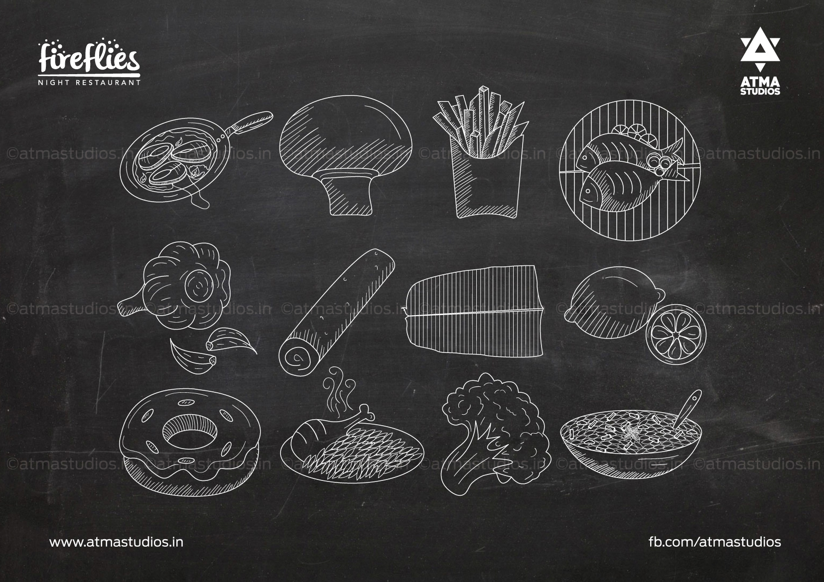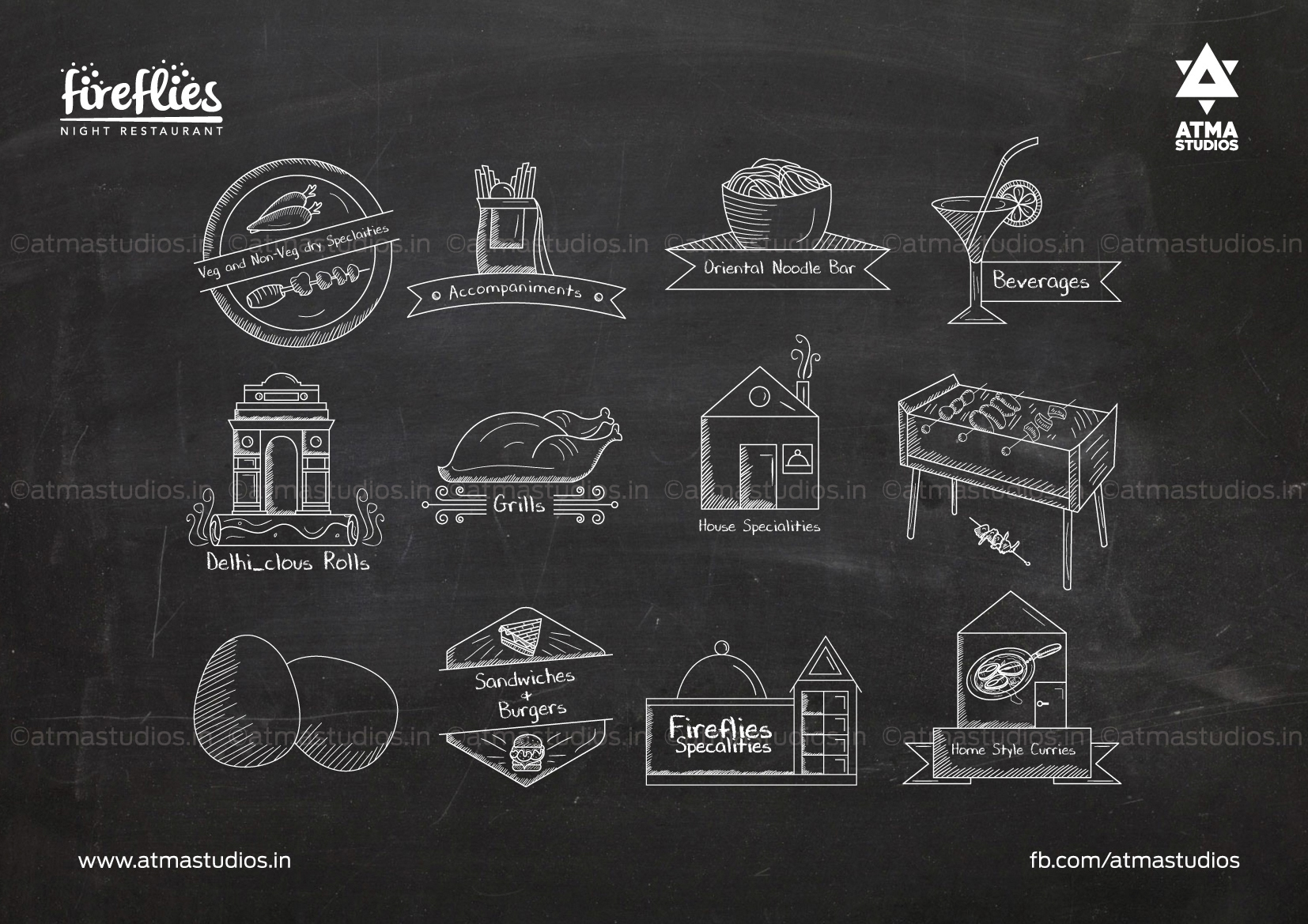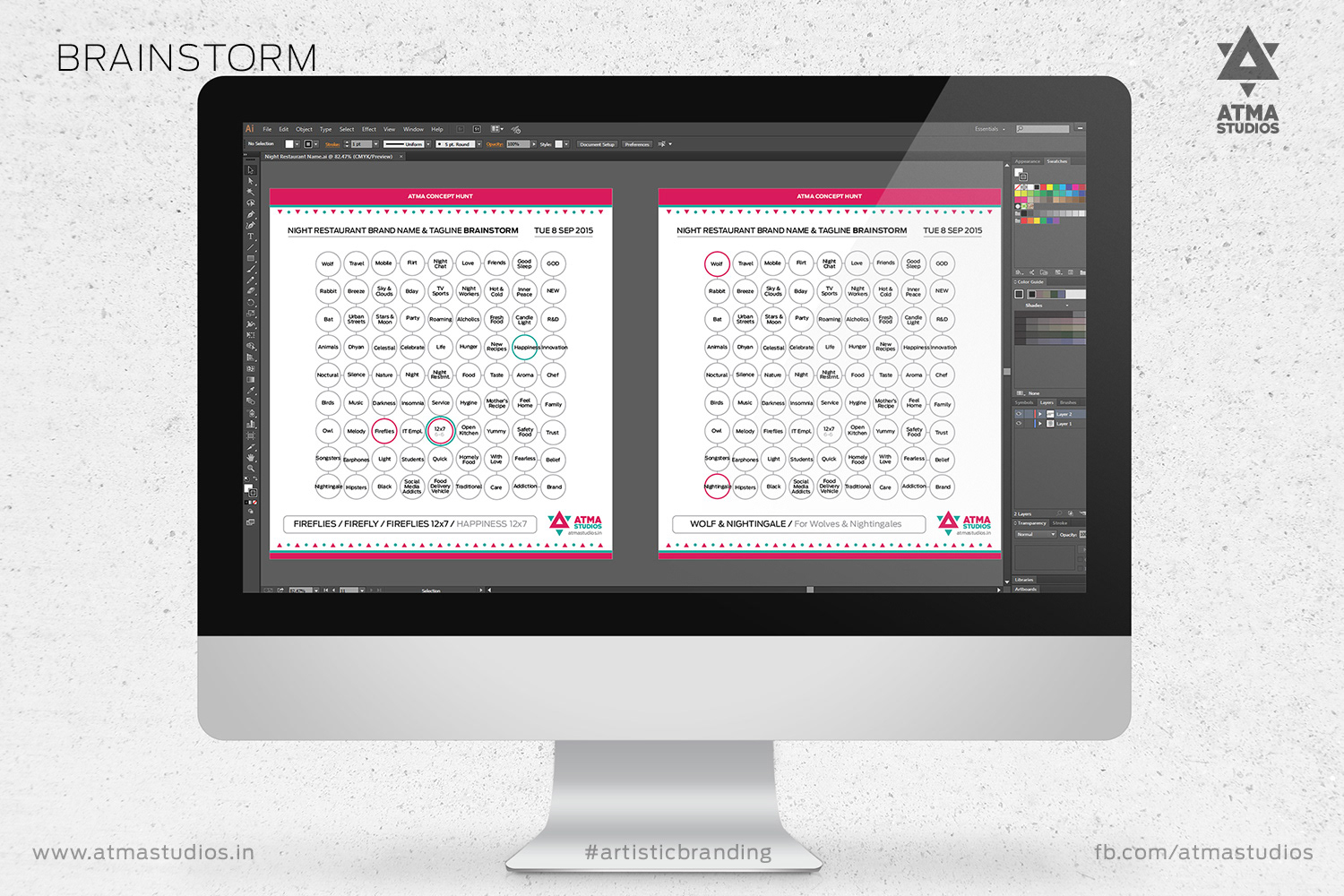 Brand Name As the name Fireflies goes with light in the dark, so as we light your life at night. It is a new way introduction to the Night life, first time ever in Coimbatore. Brand Colors Black color indicates darkness, when actually the business starts. Yellow indicates new fresh ideas like the blooming of Night Restaurant, first of its kind in Coimbatore. White specifies the purity in service. Brand Element The bubbles moving upwards show the rising of new efforts to heights and also indicate that such businesses that help people at night are yet to come.