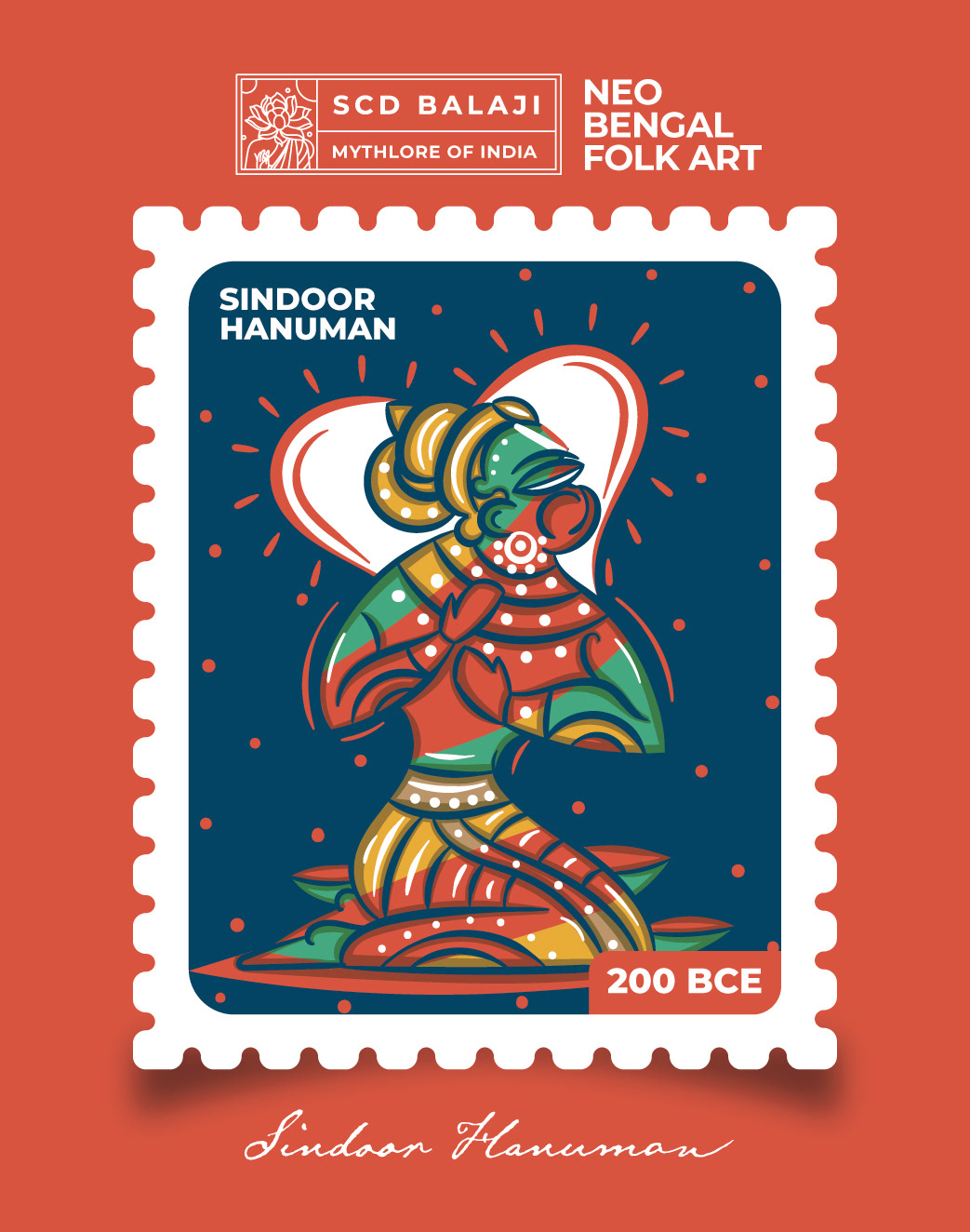 Sindoor is a vermilion red or orange-red powder from India traditionally worn by married women along their hairline. Hanuman asked Sita about the sindoor mark on her forehead, which she explained was a sign of love for Ram. Hanuman wondered how much sindoor he would need to show his love for Ram. He decided to color his entire body with sindoor, leading to the vermilion red coloration of Hanuman images in temples, and called as Sindoor Hanuman.