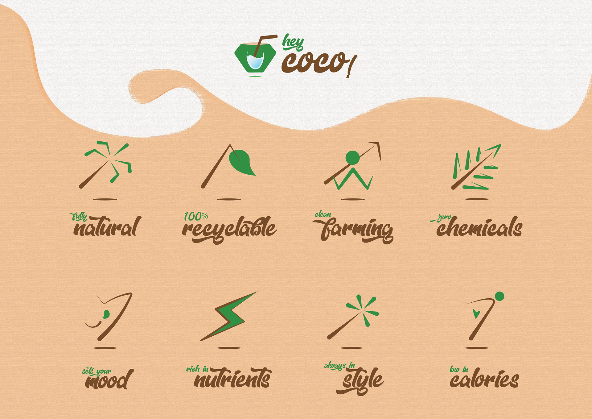 Hey CoCo, is a natural beverage brand, whose branding has be taken up by Studio Crea.
