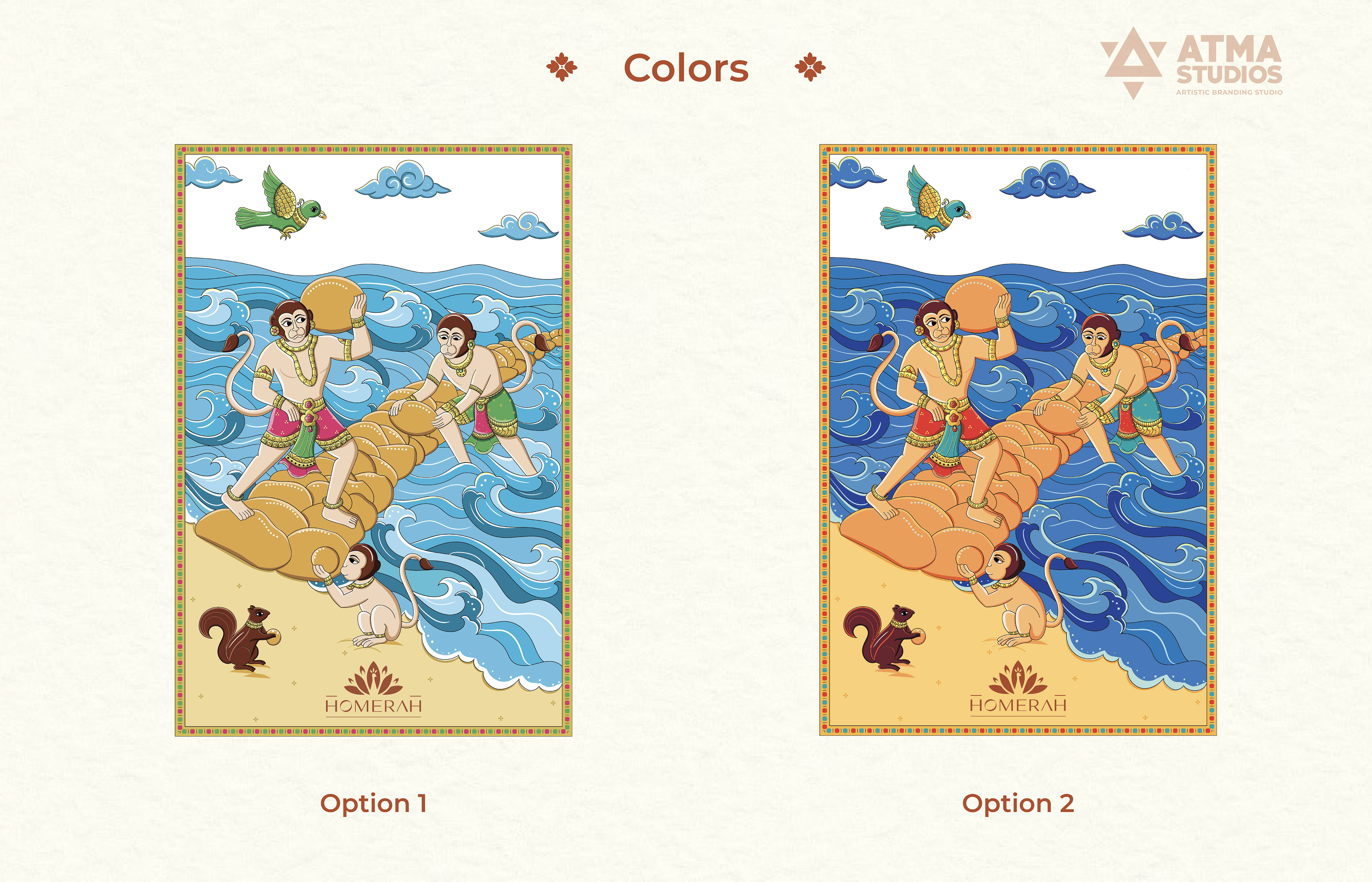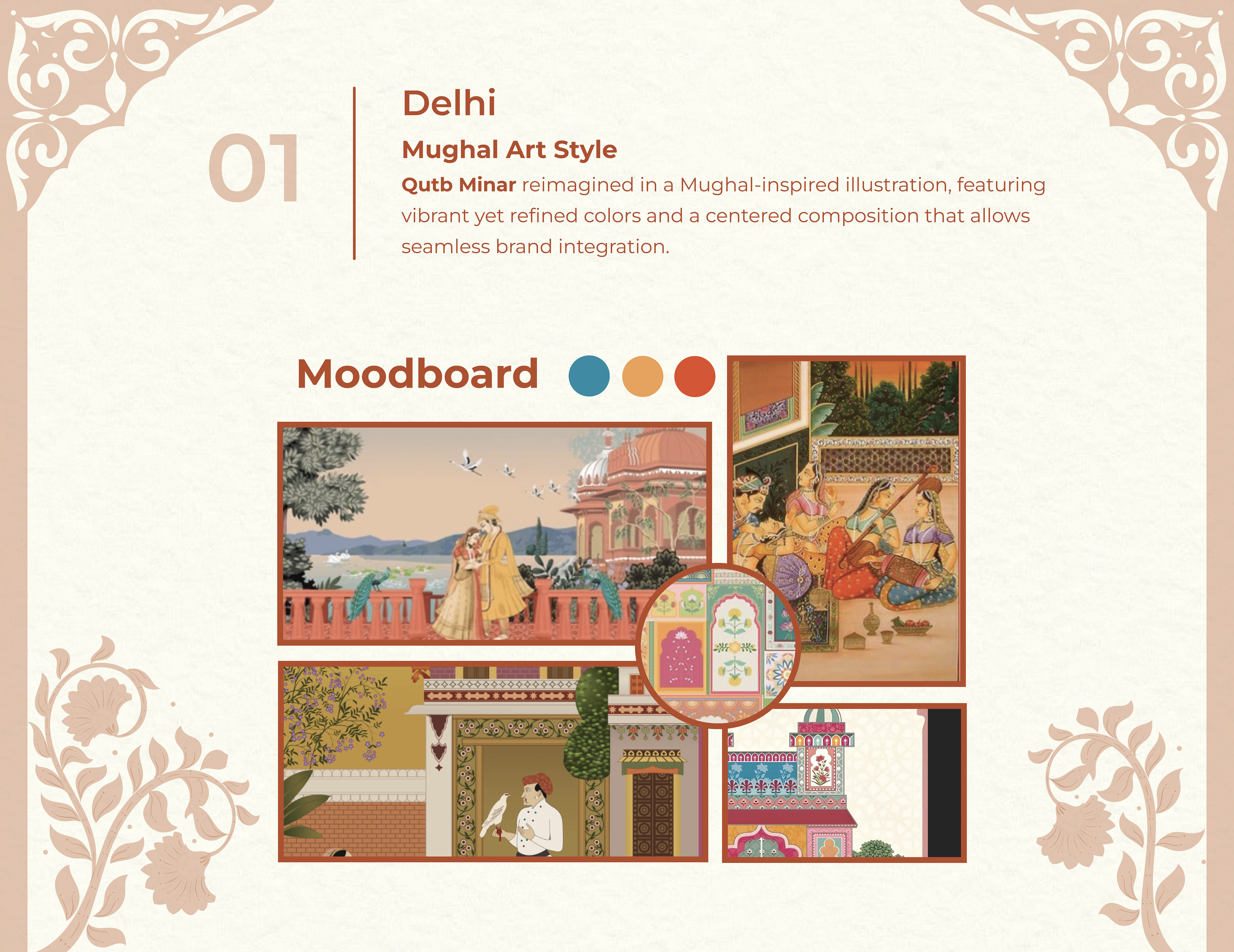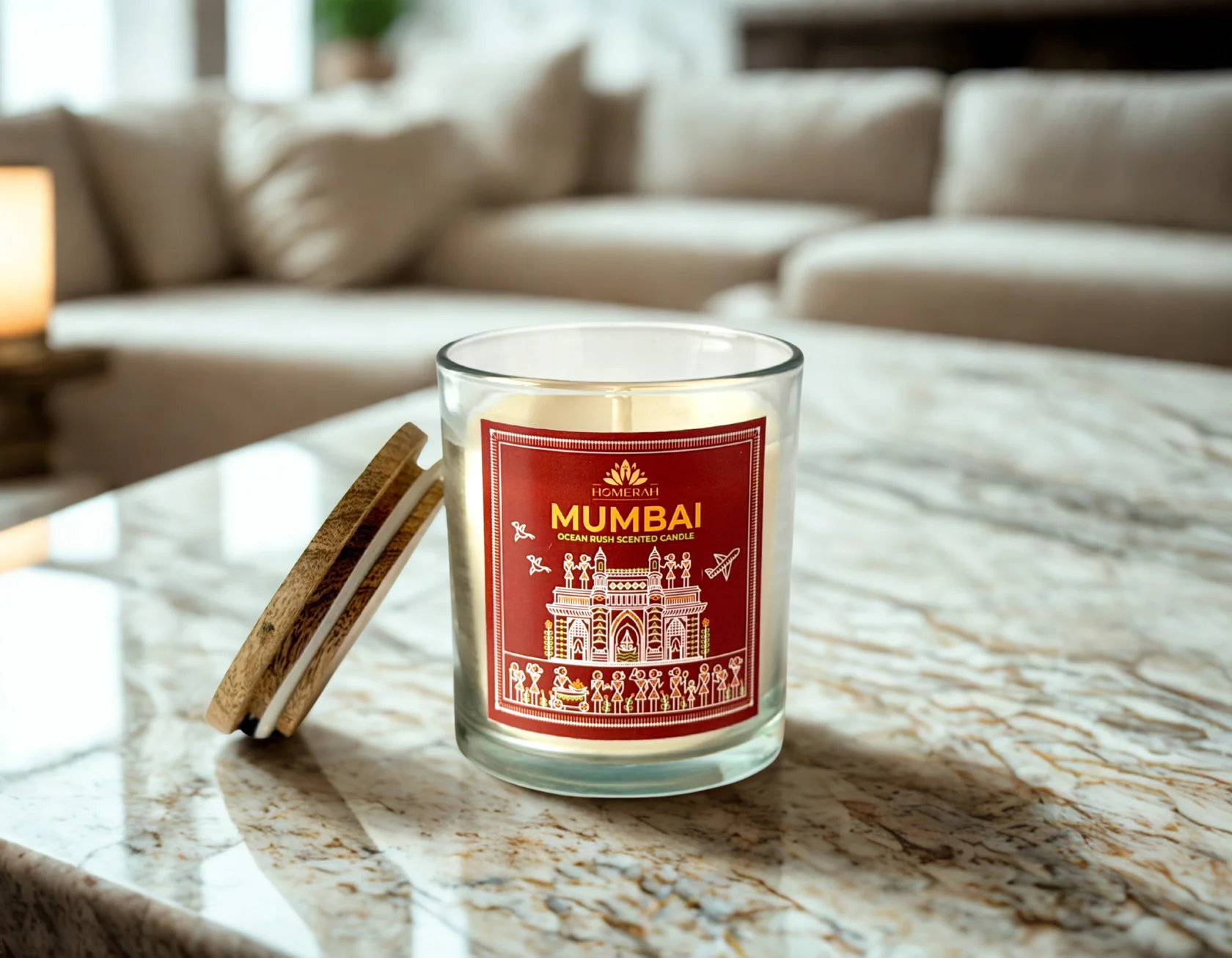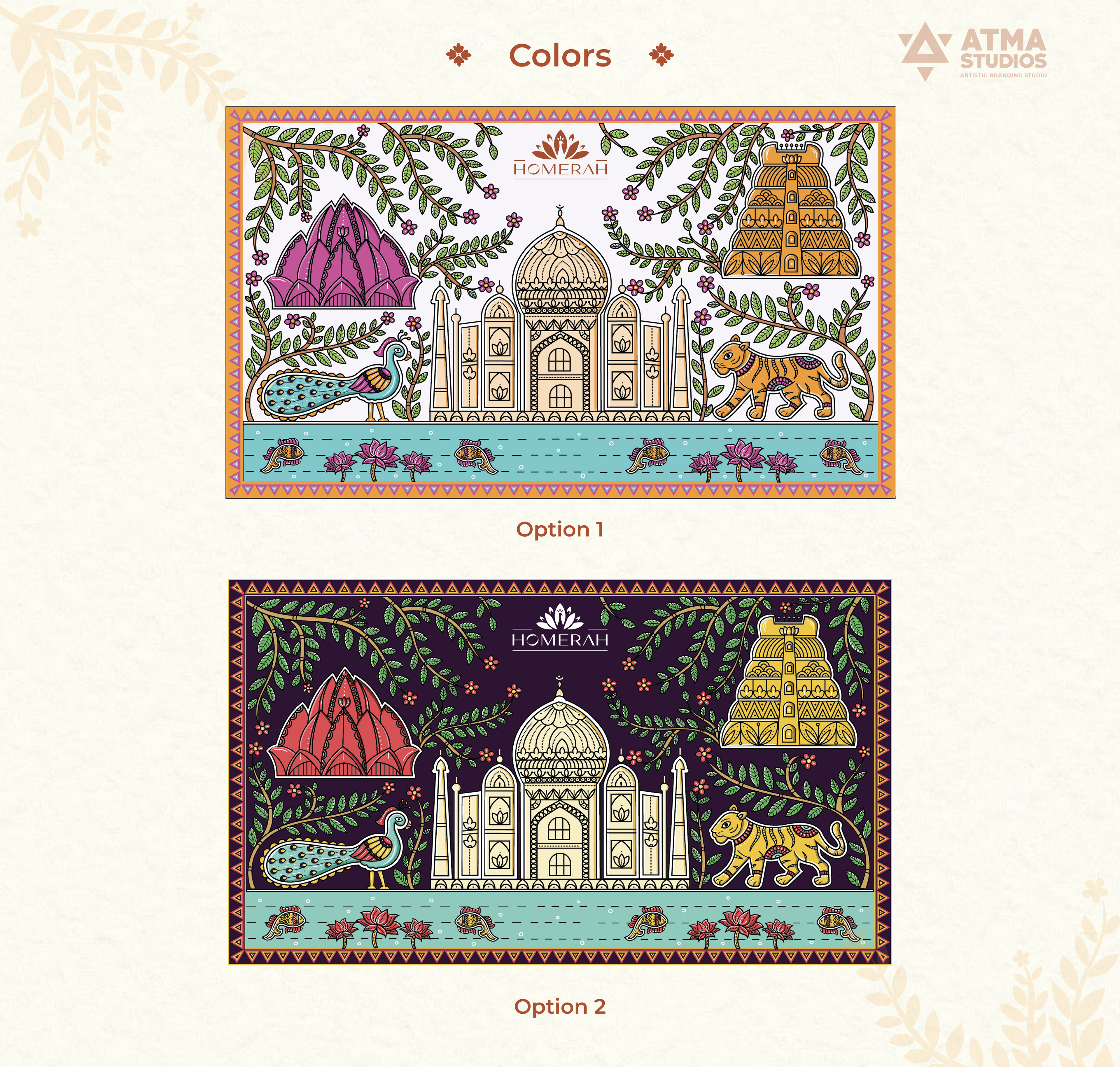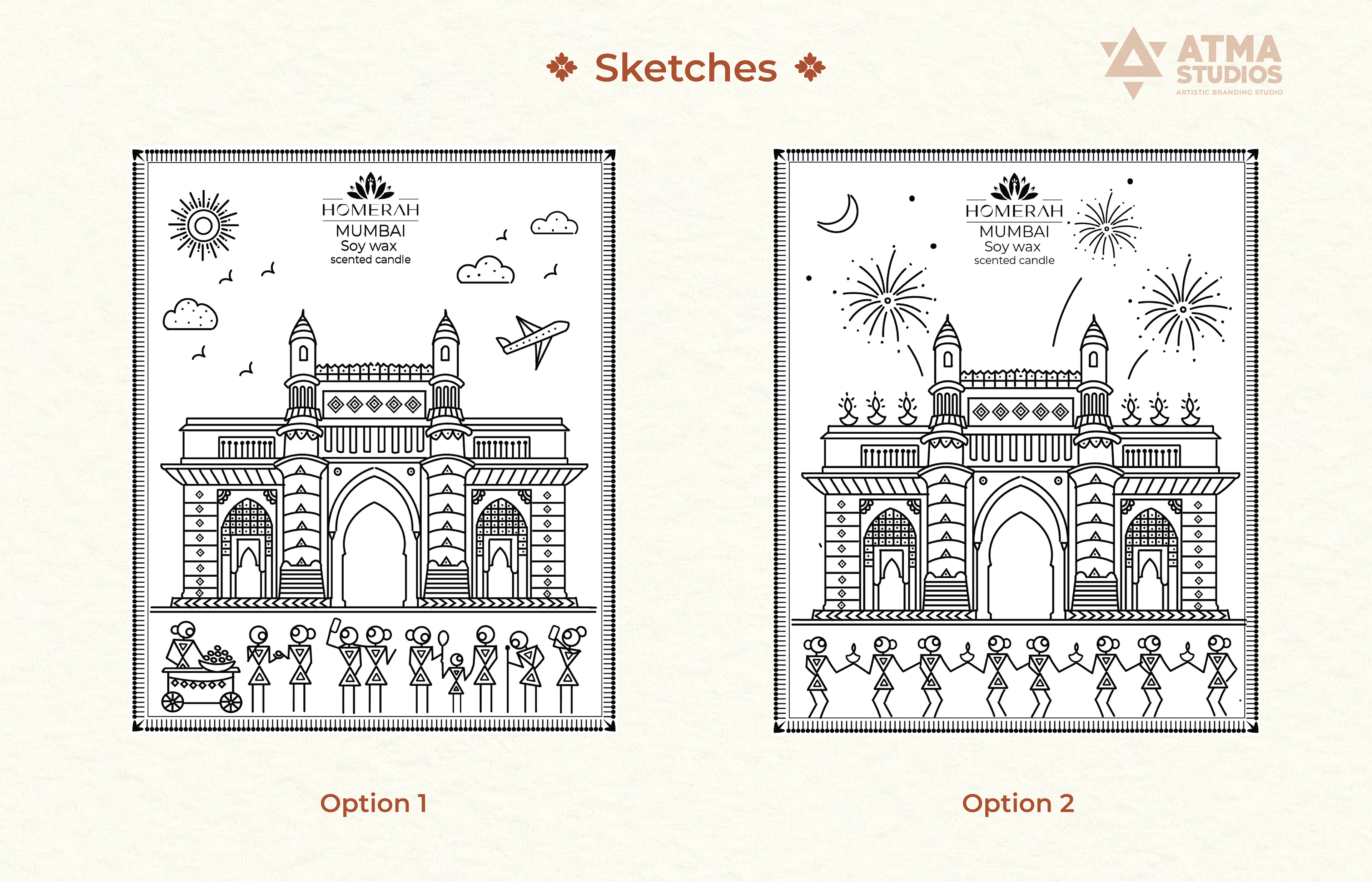 A premium incense candle and gift box design project for Homerah, inspired by India’s rich cultural heritage. Completely visualised and designed by Atma Studios. Each label and package artwork translates iconic cities, traditional art forms and heritage narratives into contemporary illustrations, creating a cohesive, luxurious visual identity across the product range.