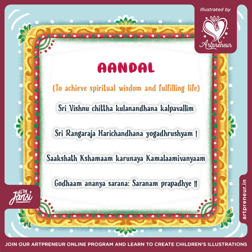 Goddess Aandal, the only female Alwar saint known for leading a life marked by purity & unwavering devotion towards Lord Vishnu