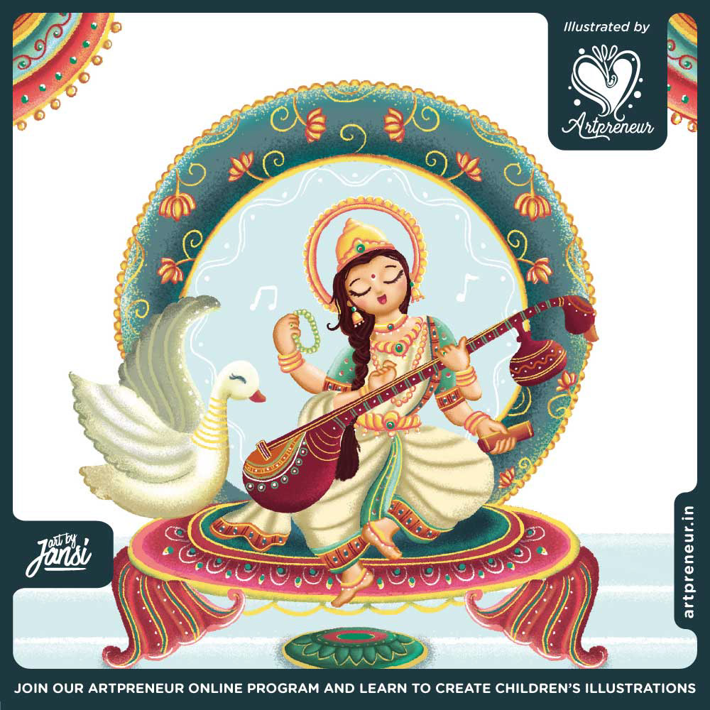 Goddess Saraswathi, a bestower of Wisdom & Artistic talents
