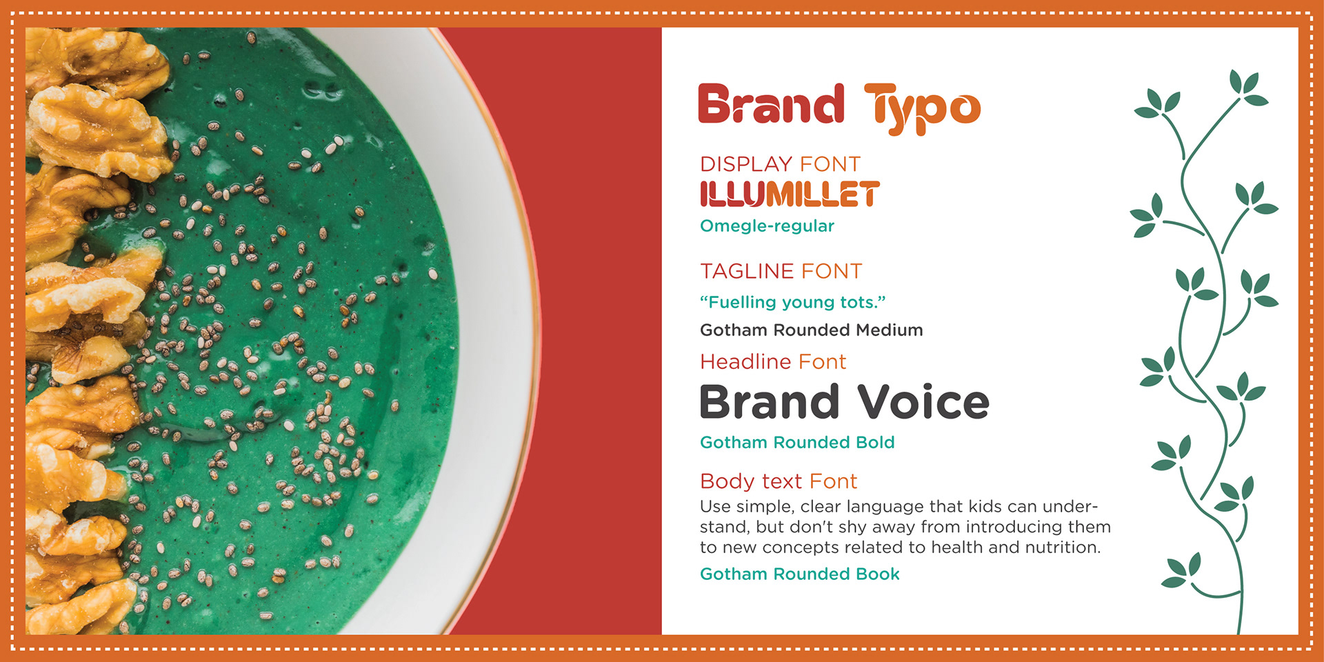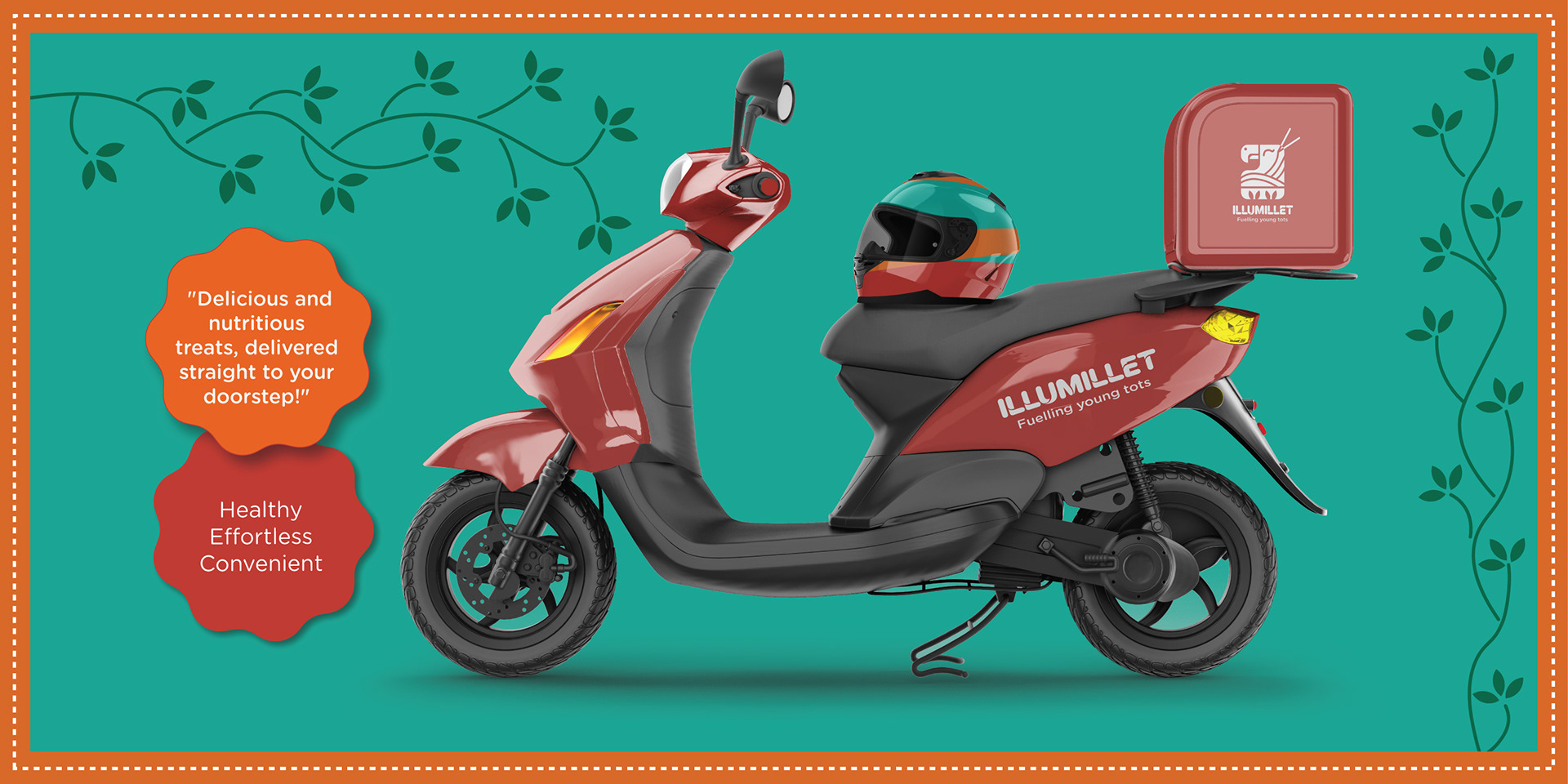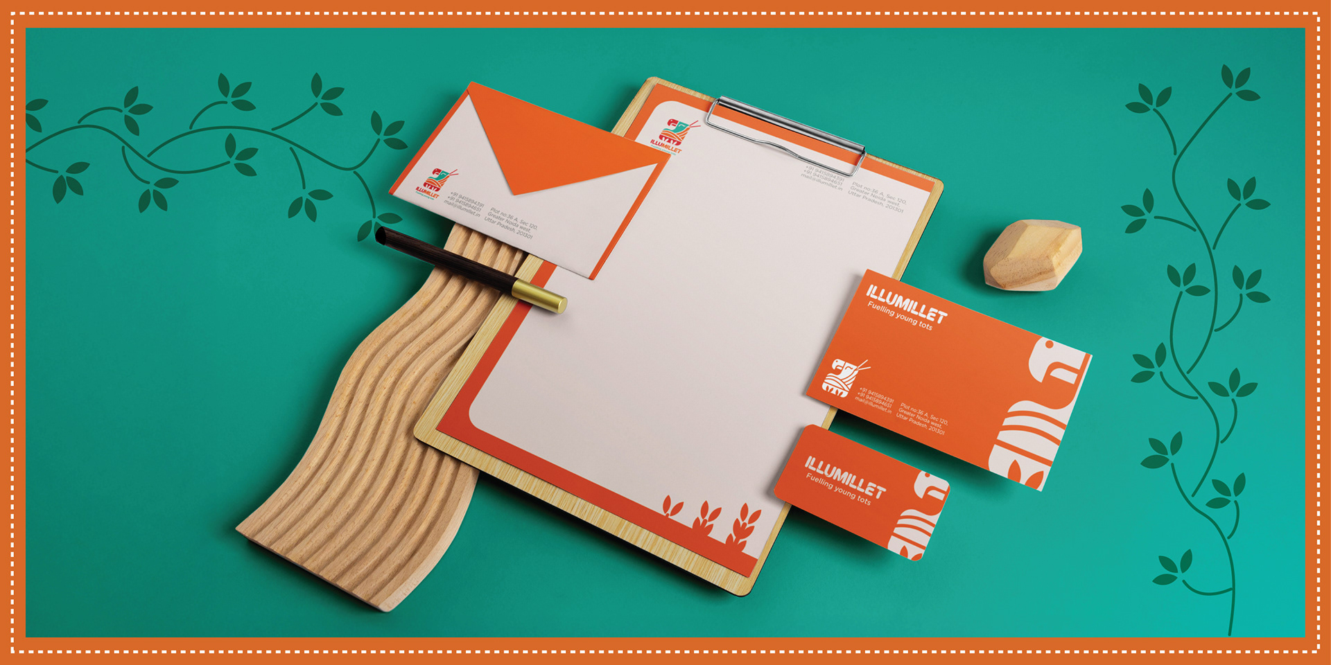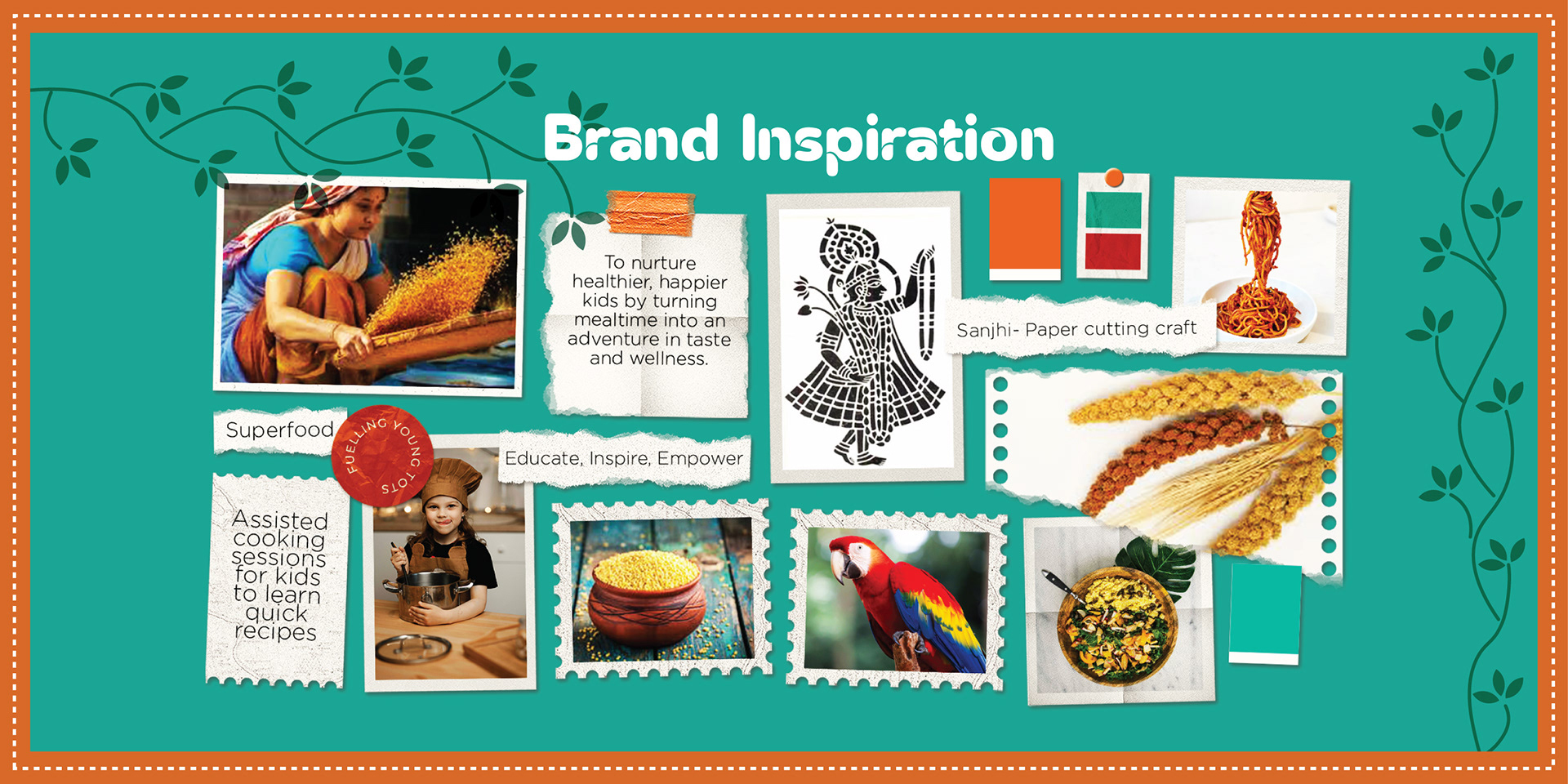 Illumillet is a vibrant kids' café that blends traditional Indian ingredients with modern tastes, promoting healthy eating habits through millet-based snacks in a fun, culturally rich environment. The brand is designed to be warm, friendly, with a touch of playfulness to engage the young audience.