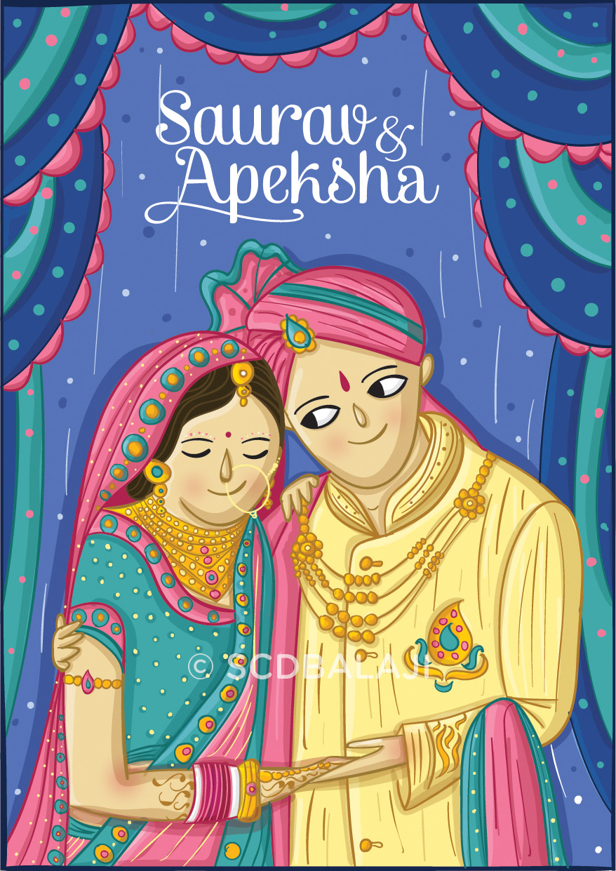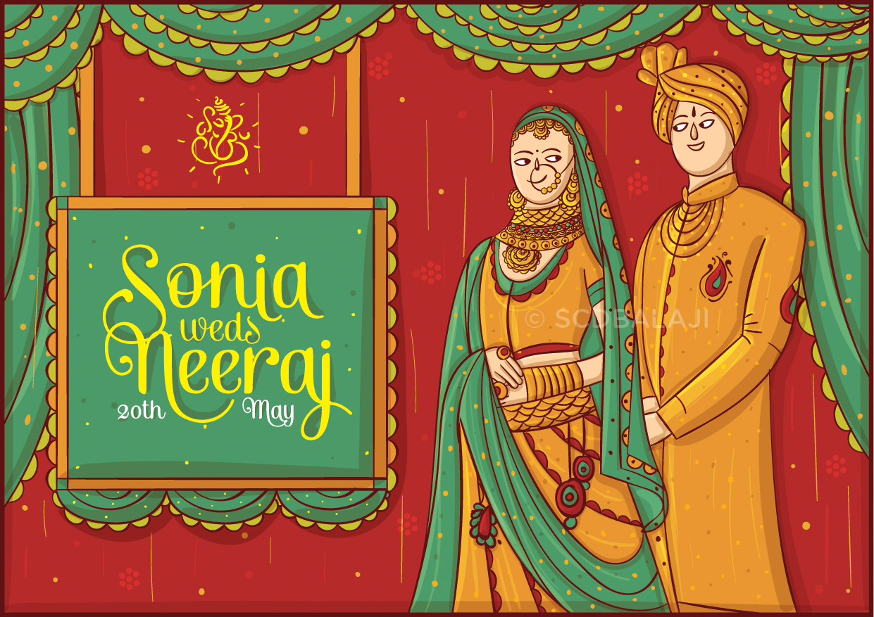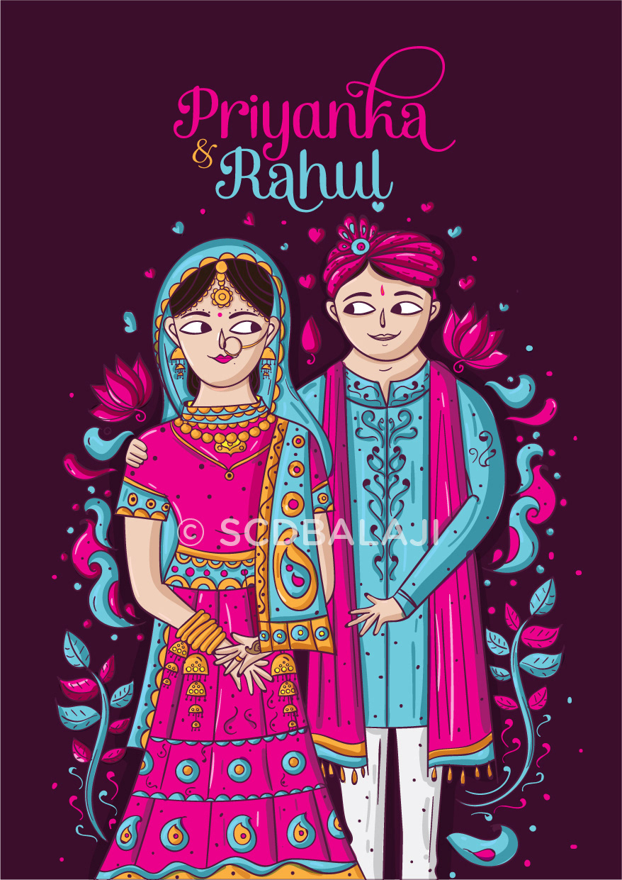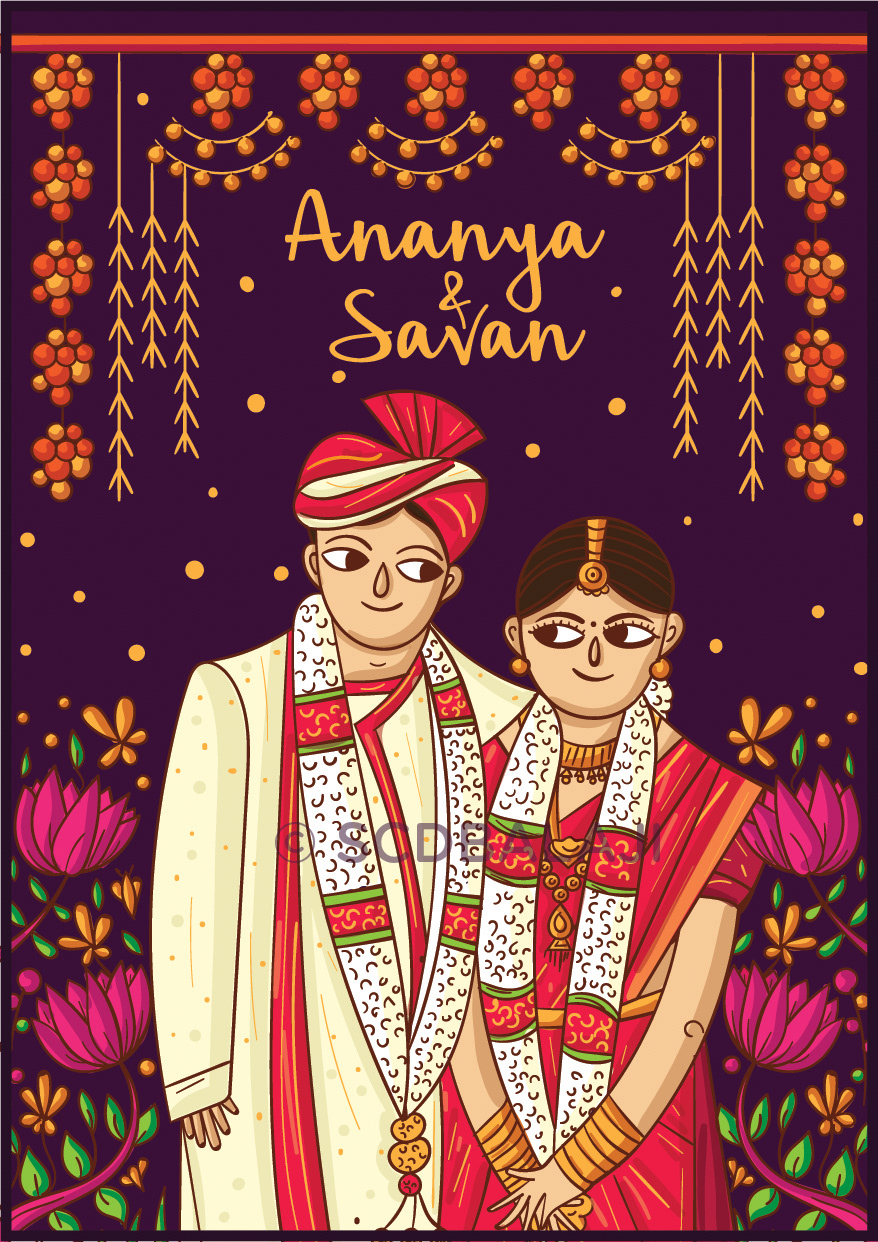 Our Bride and Groom illustrations in wedding invite is a one of a kind initiative to pay a tribute to the diverse wedding attires of our country. Every wedding attire has closely knit ties with their community, religion and place and has grandeur written all over it.