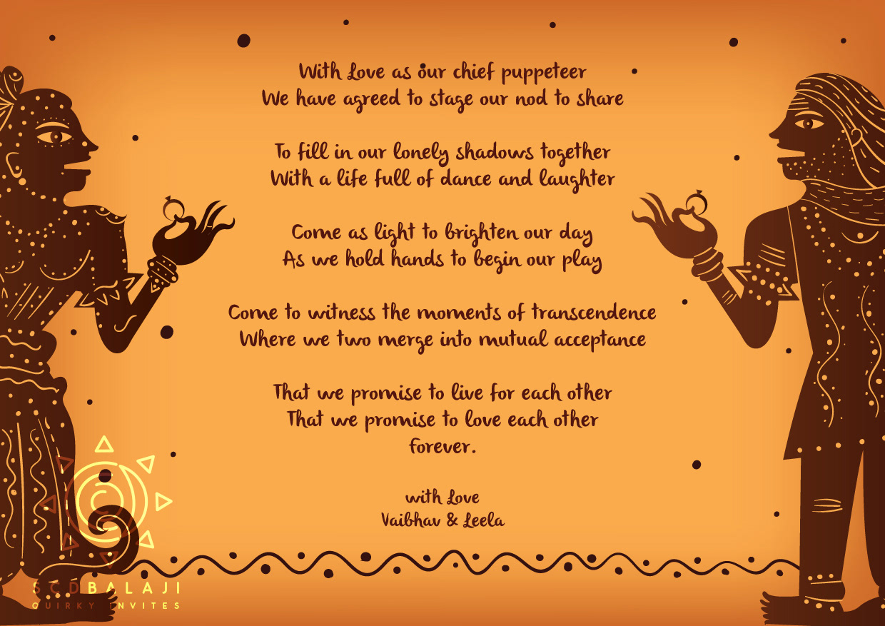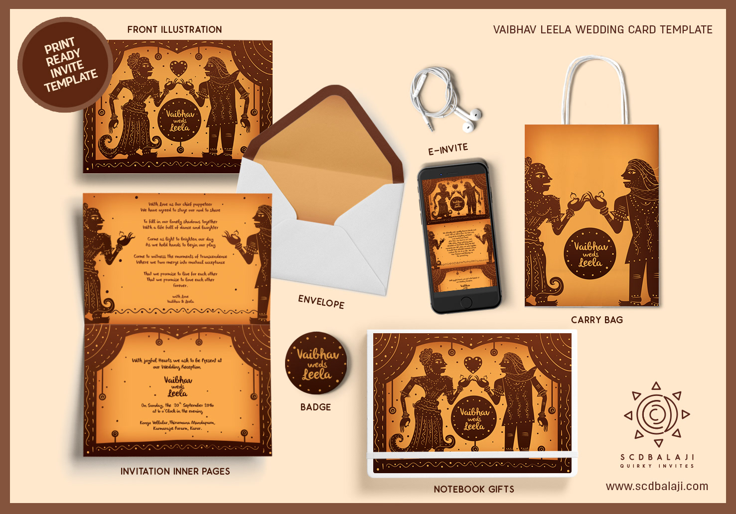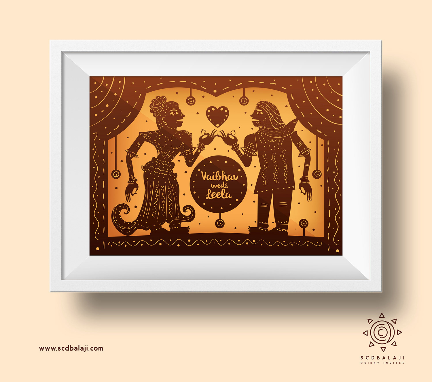 Quirky Indian Wedding Invite Inspired by Shadow Puppet Style (Yampattaka Indian Folk Art)