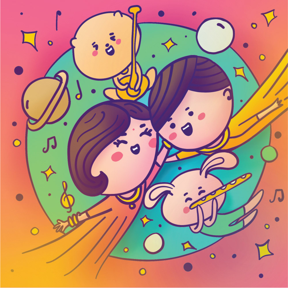 Sangeet: Music is captivating. This invite indicates the most captivating moment of your big day, the Sangeet. The floating characters indicate how music can transport you to a different plane.