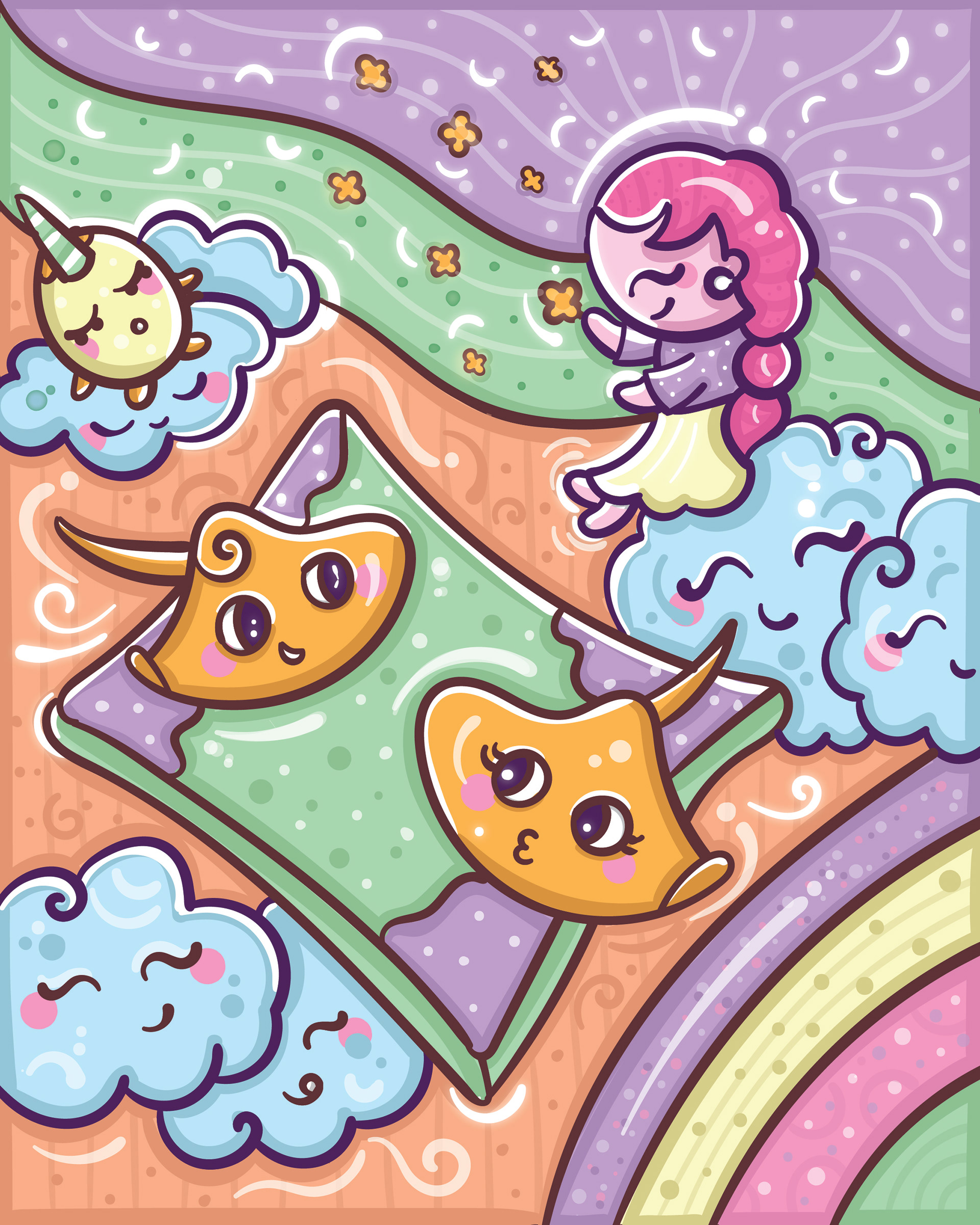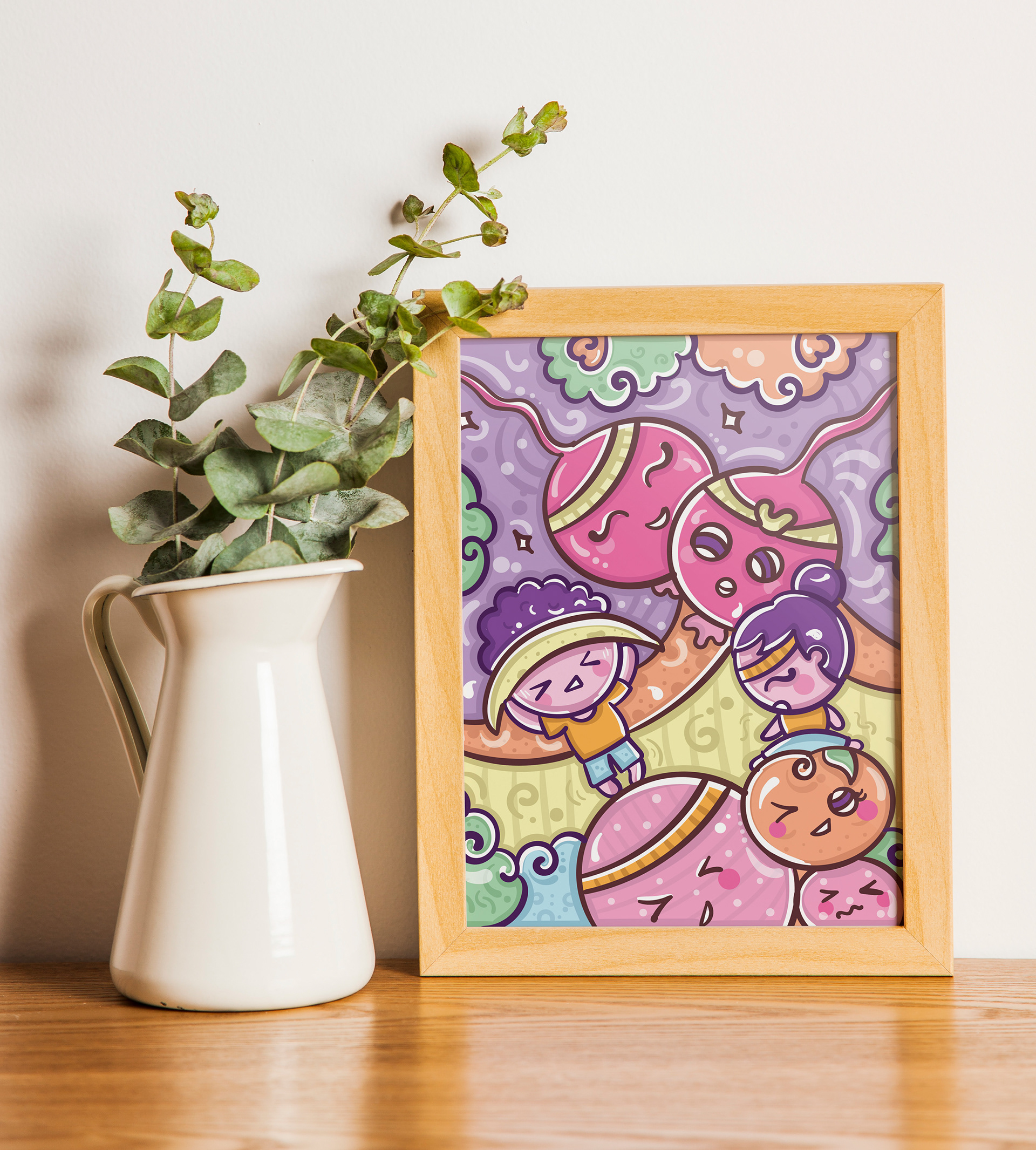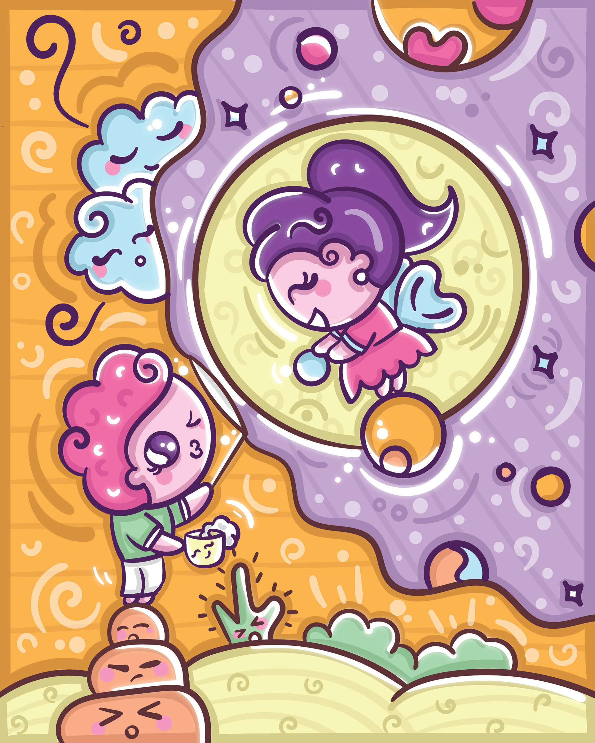 This series of illustration is done in Japanese kawaii art style. Kawaii is one of the most popular and cutest art form. This artform can literally give life to day to day objects in the cutest way possible. This brings out our childlike nature and helps in keeping a check to our inner child.