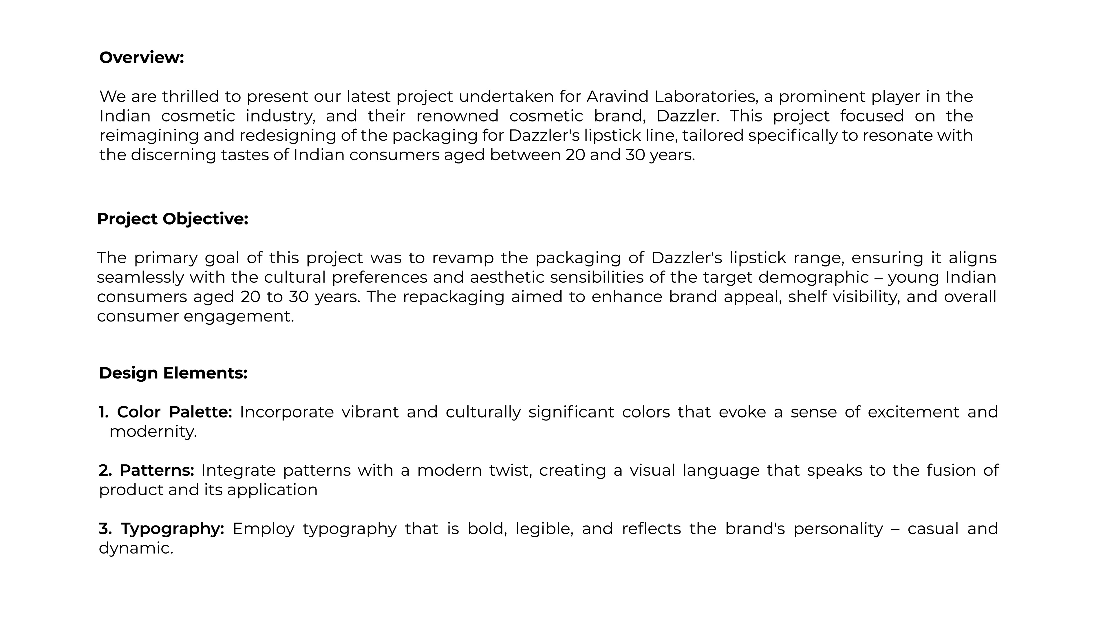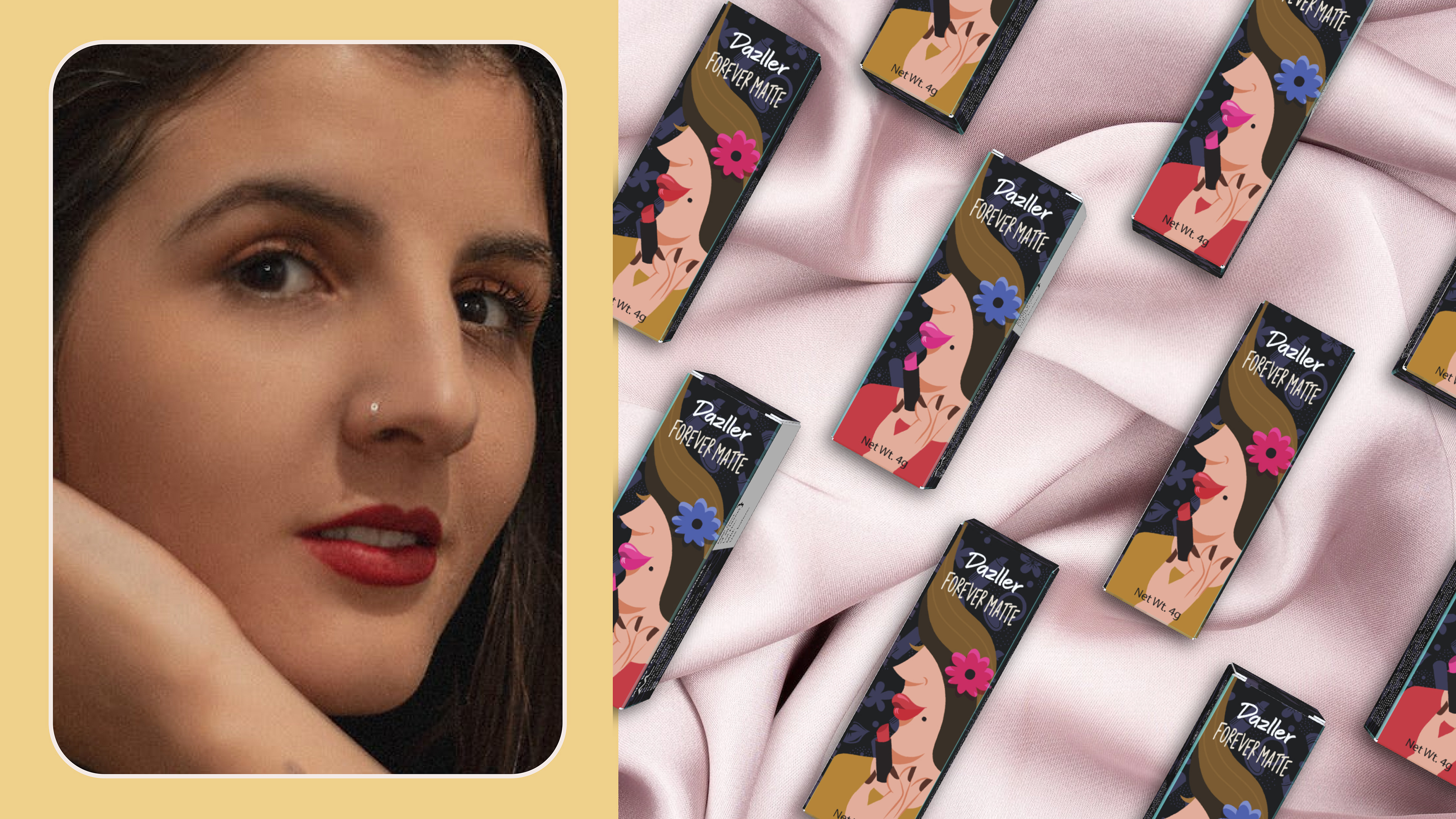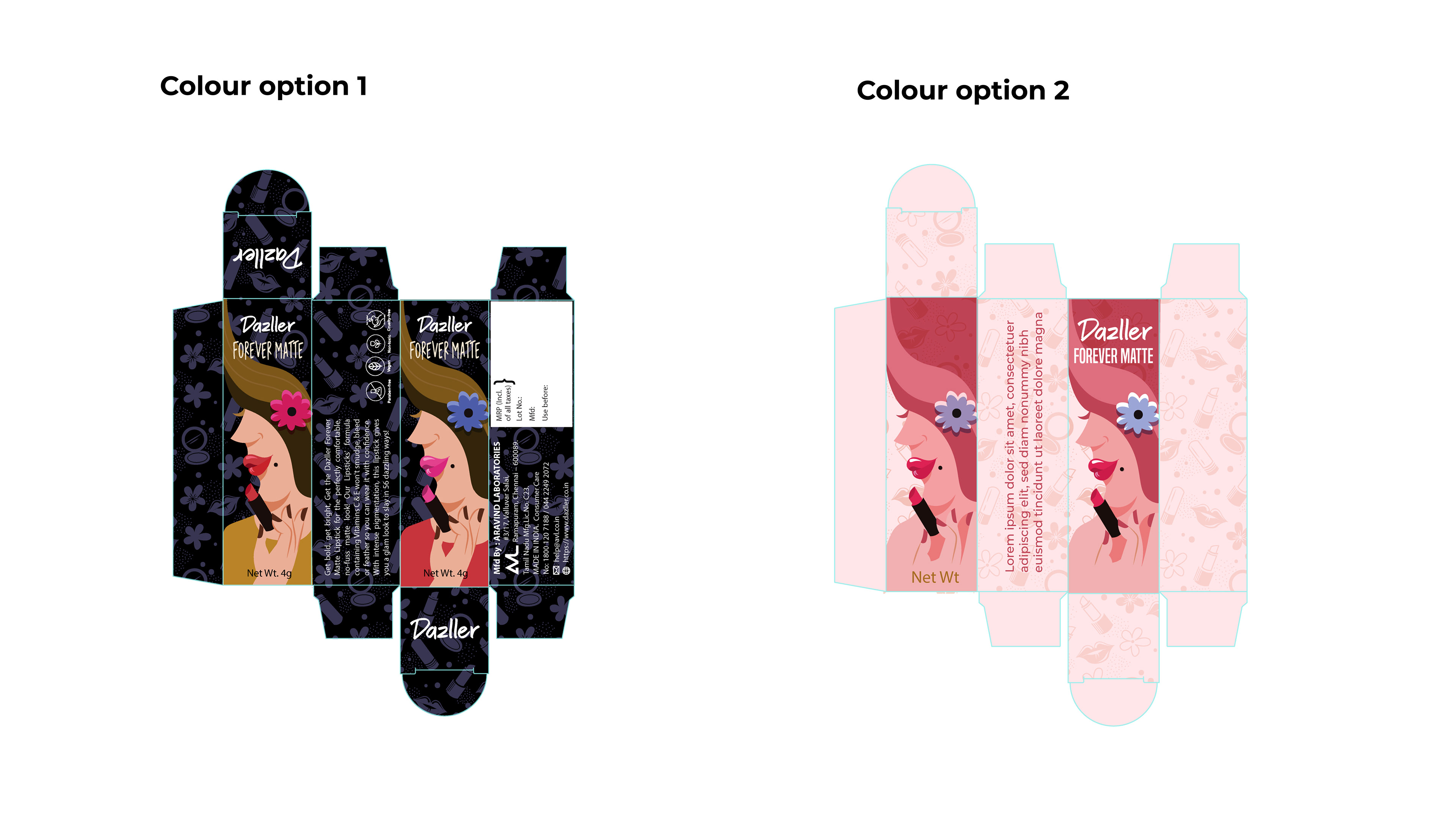 Lipstick package design project for Aravind Laboratories for their sub brand Dazzler. This project focused on the reimagining and redesigning of the packaging for Dazzler's lipstick line, tailored specifically to resonate with the discerning tastes of Indian consumers aged between 20 and 30 years.