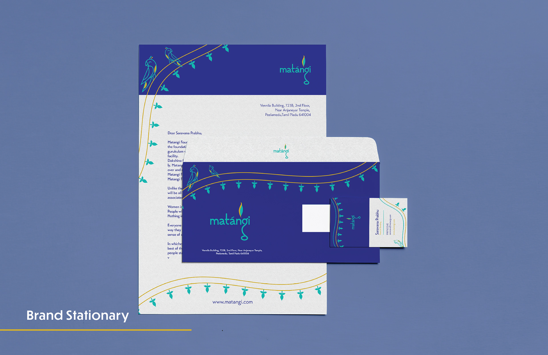 Dakshina Foundation(current) from coimbatore approached us for the Branding of Matangi Foundation(current). They gave us their logo and asked us to provide a visual representation of the branding's direction before entrusting us with the entire project. This presentation was made as a pitch to show how Matangi Foundation's branding will look.